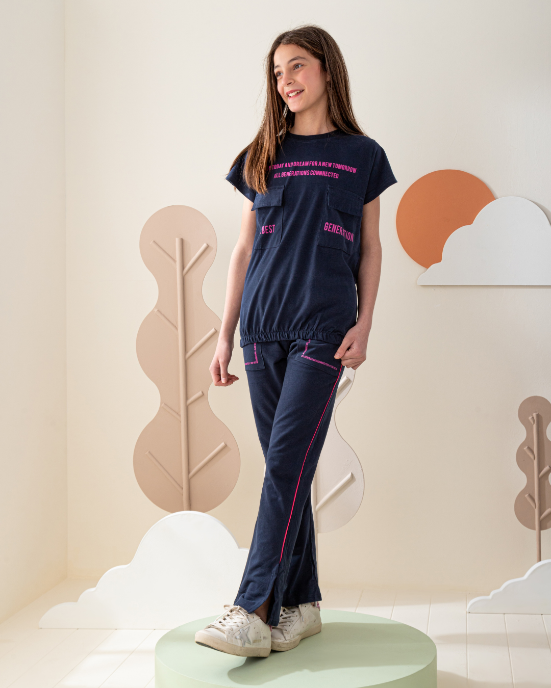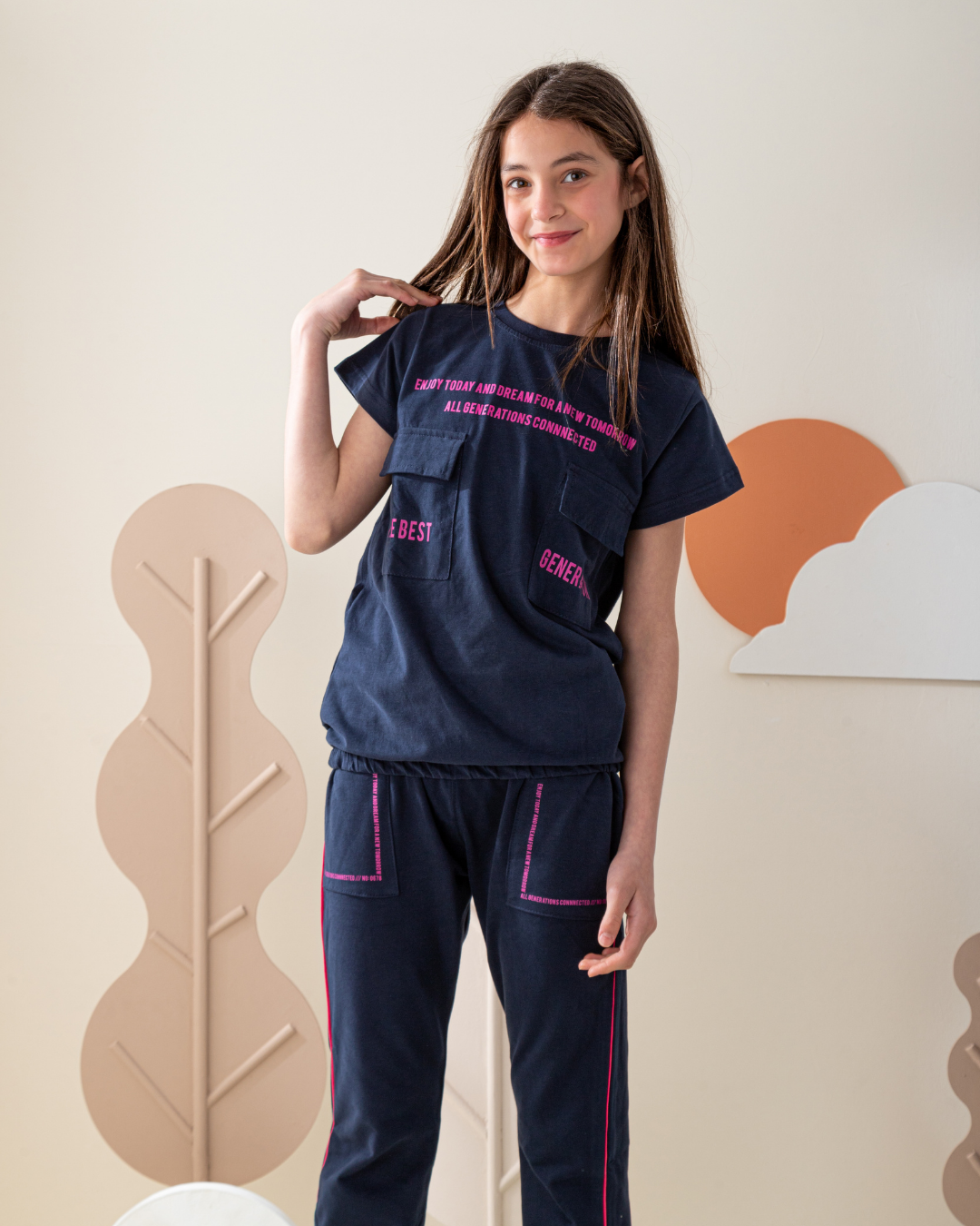 2 pocket بيجاما بناتي تيشرت و بنطلون