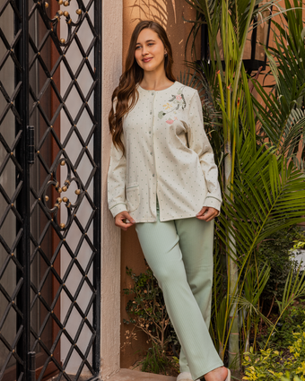 Women's Pajamas Open Button Long Sleeve Long Pants Ribbed Polka Dot Print