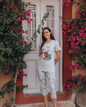 Booh women's pajamas, half-sleeved T-shirt and pantyhose