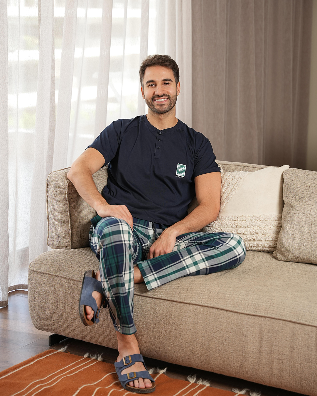 Family checkers بيجاما بناتي نص كم و بنطلون قطن