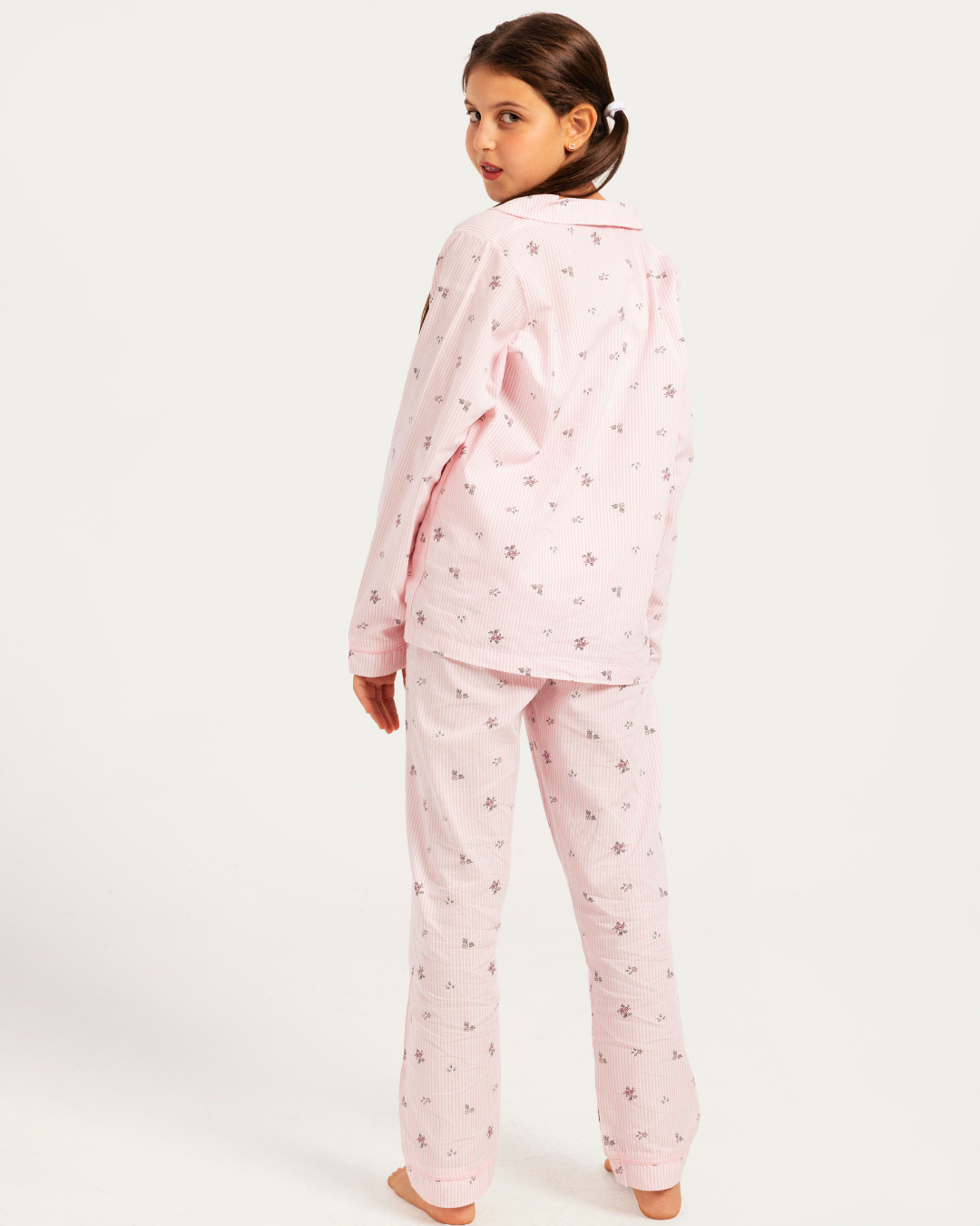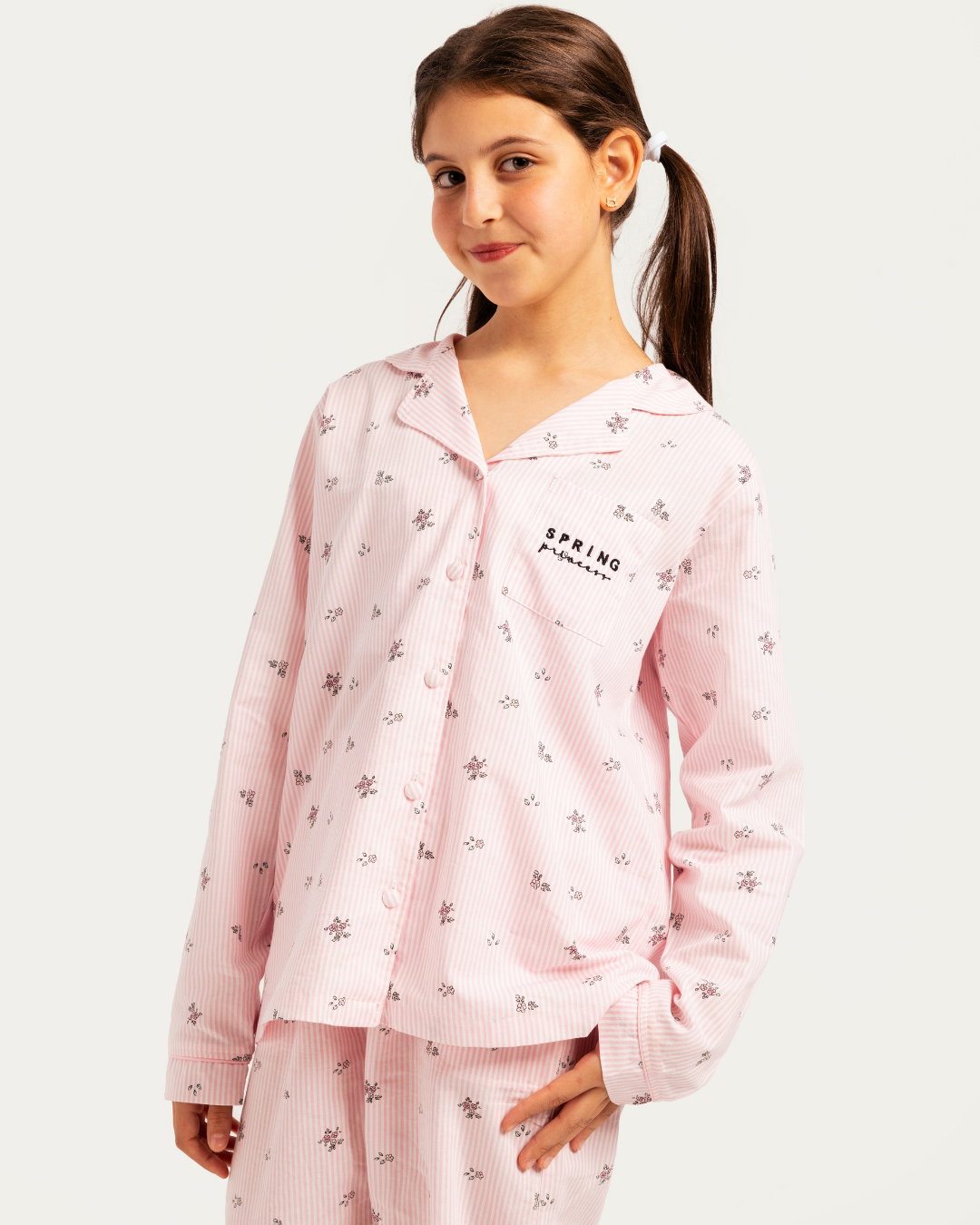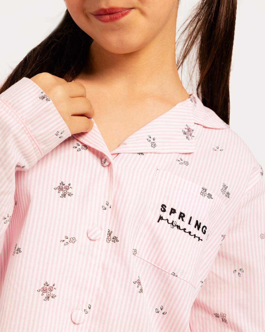 بيجاما بناتي بزراير خطوط و زهور