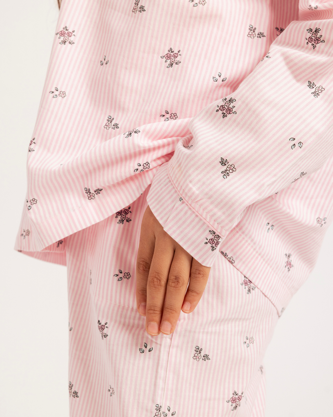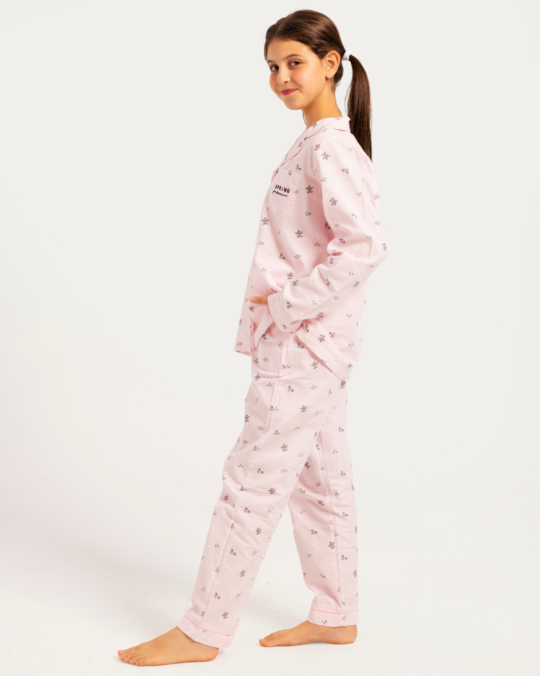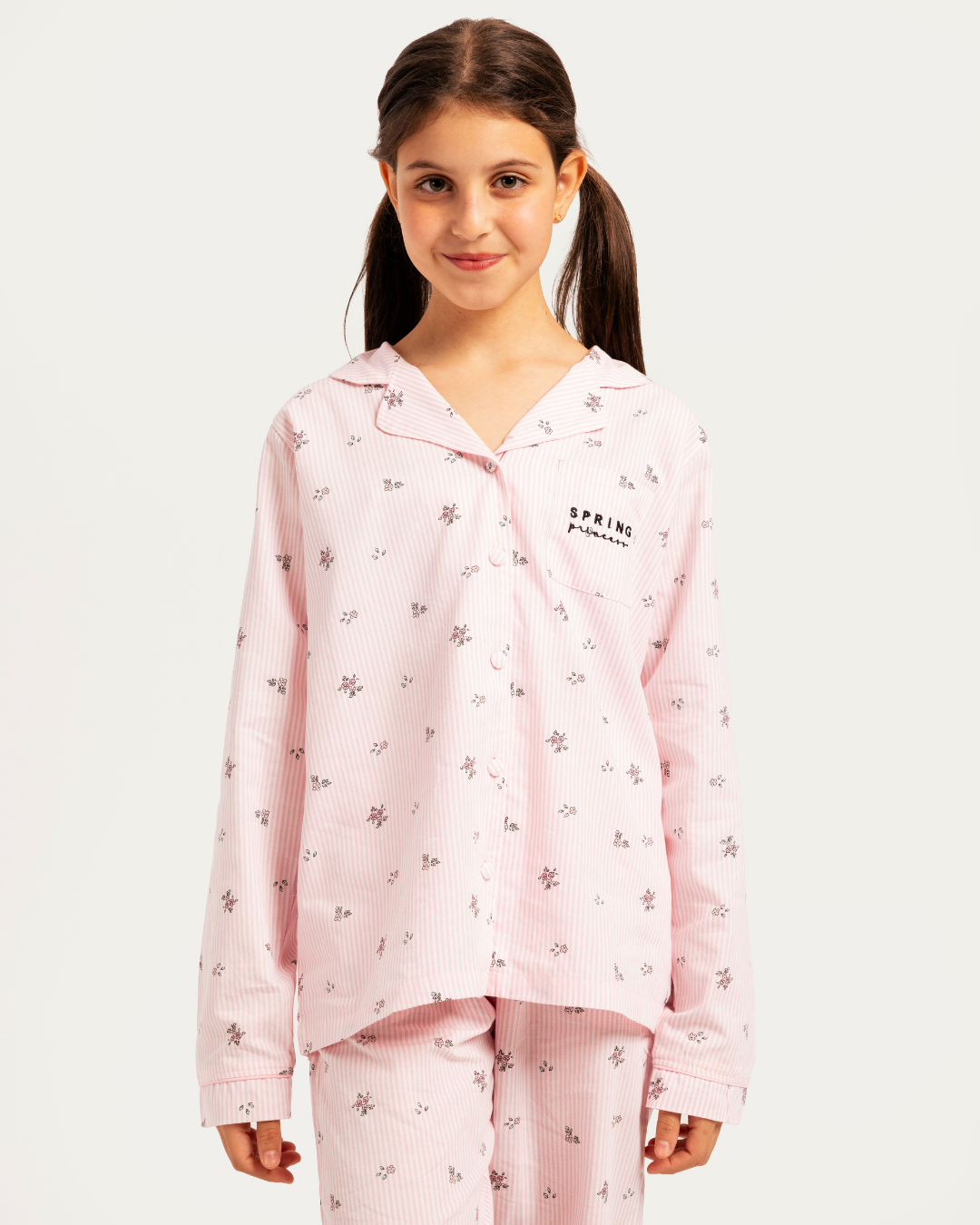 بيجاما بناتي بزراير خطوط و زهور