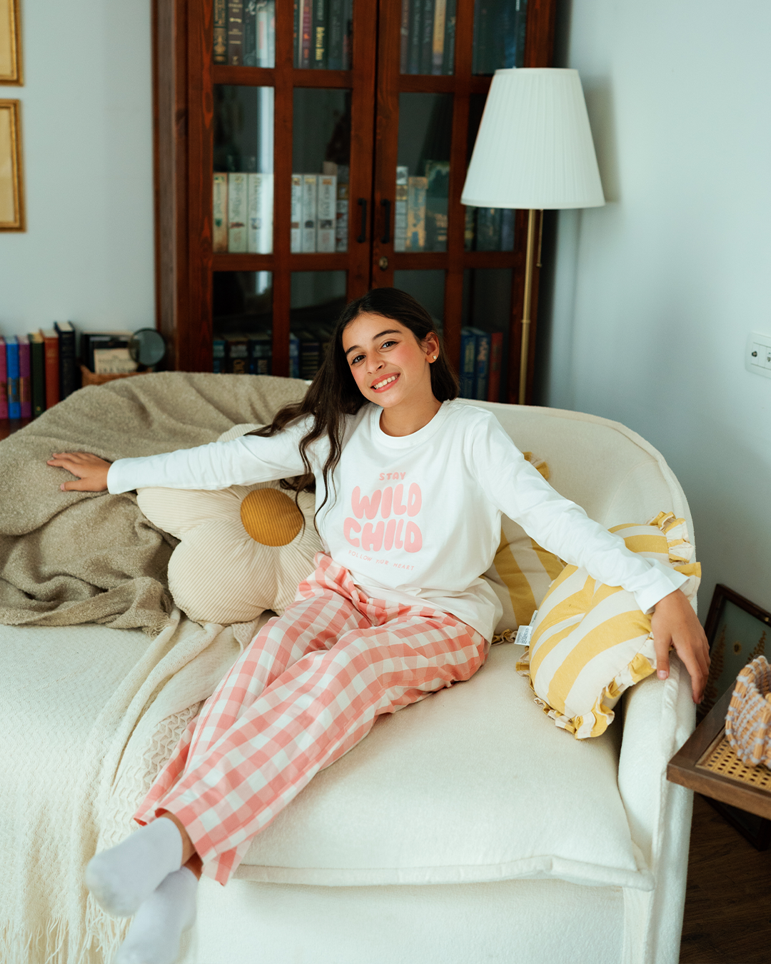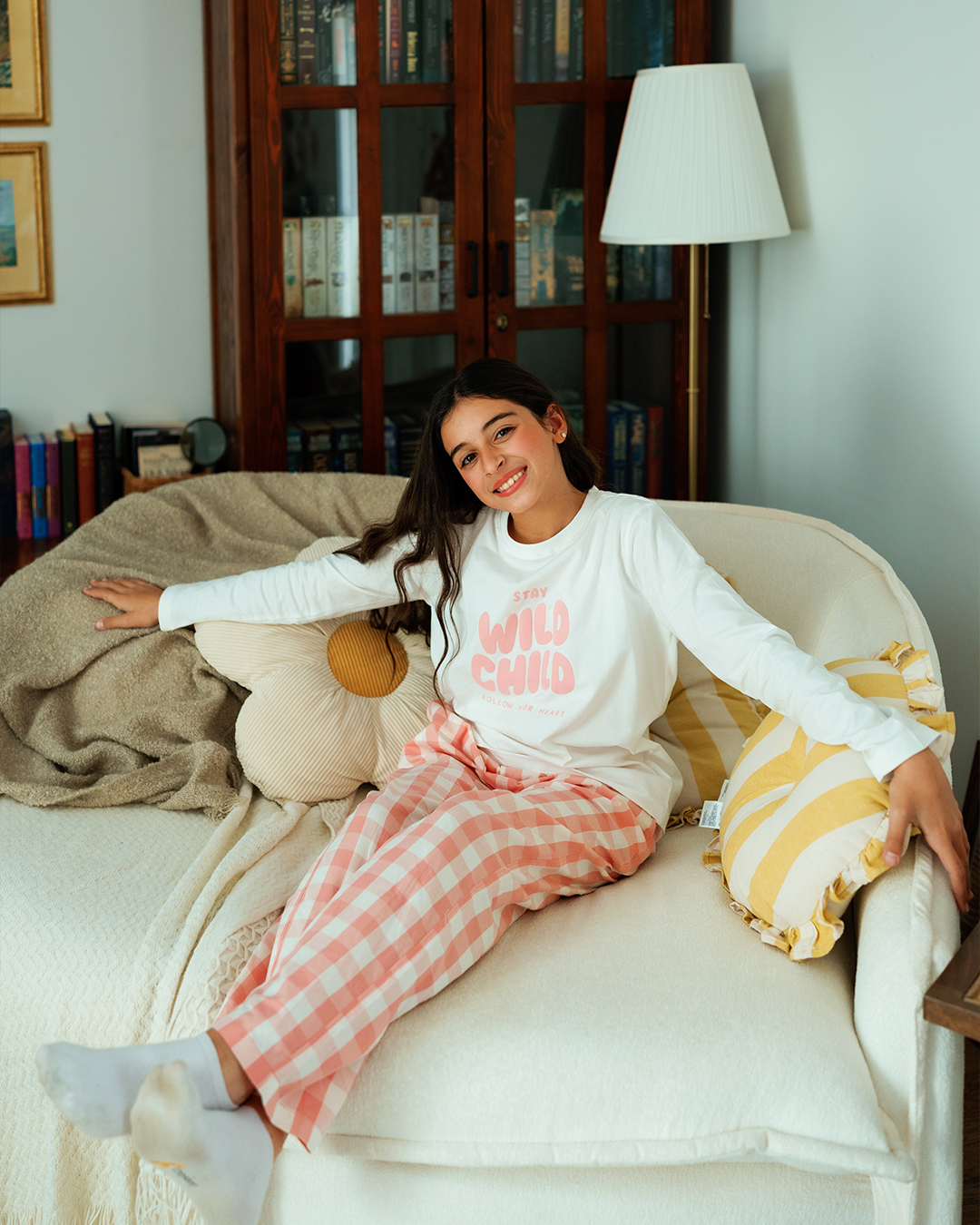 بيجاما بناتي بكُم طويل كاروهات الربيع