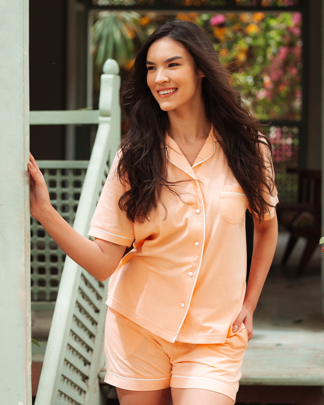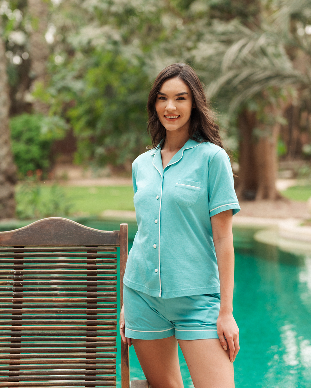 بيجاما حريمى سادة مفتوح بزراير نص كم و شورت