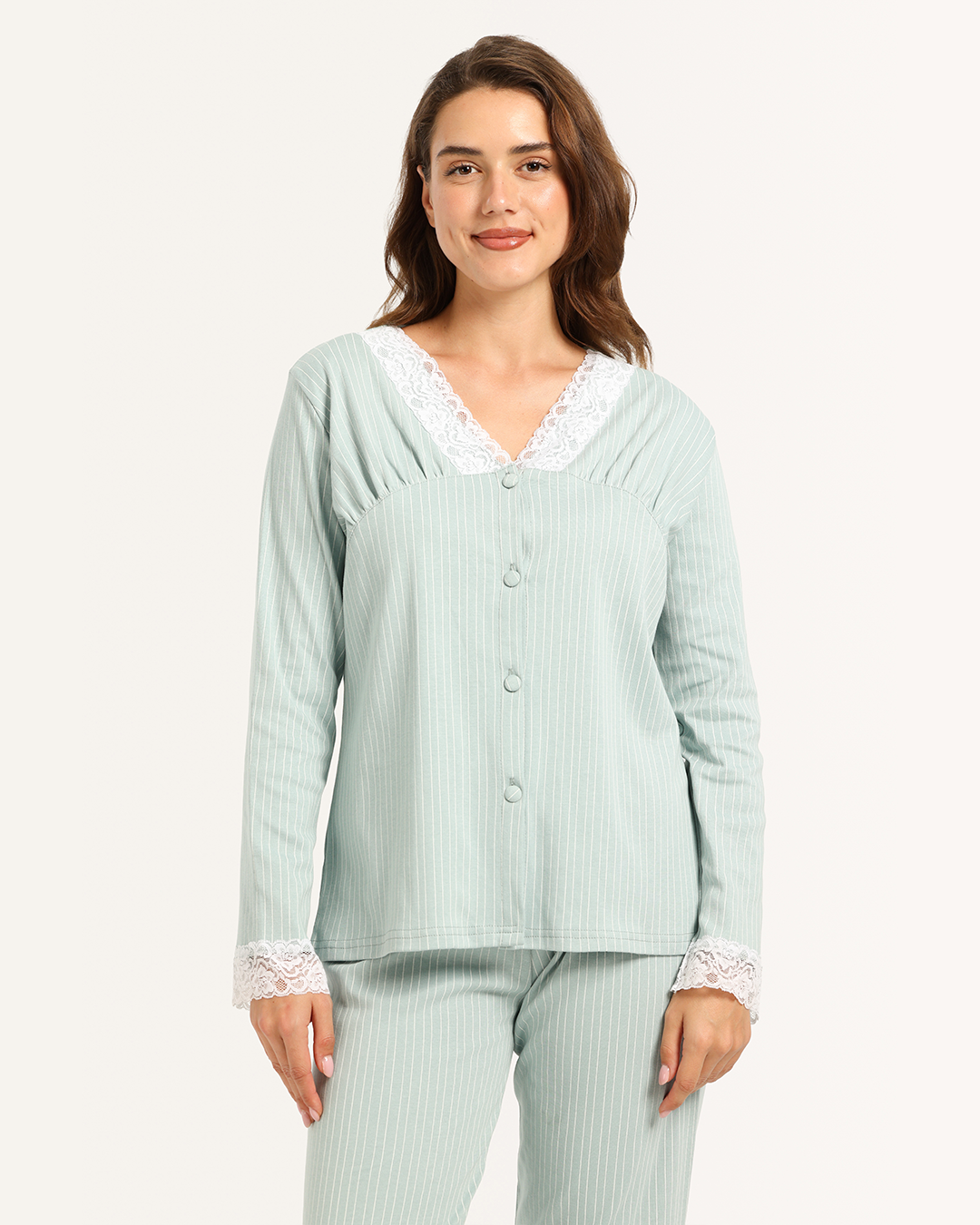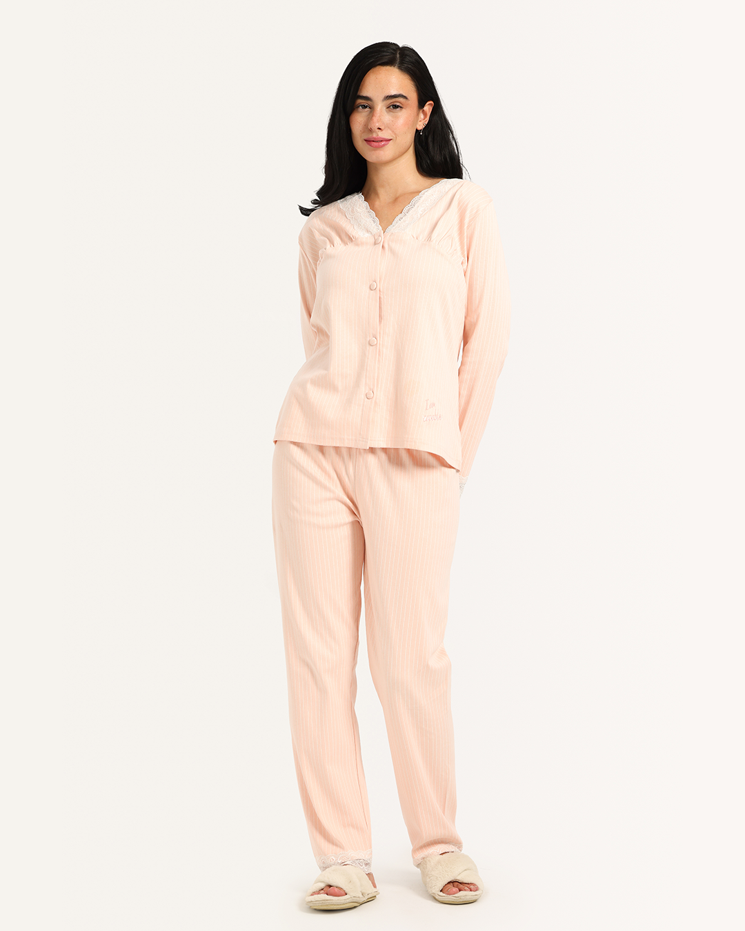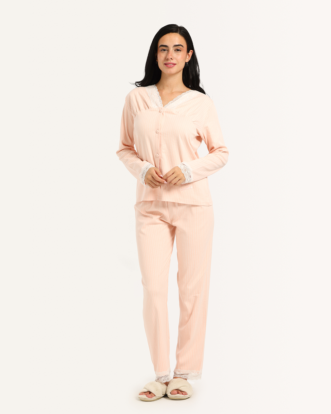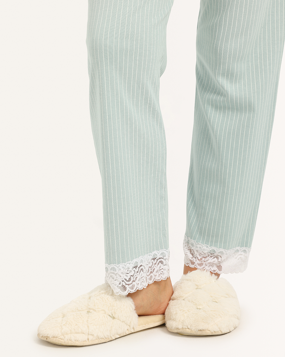 بيجاما حريمى كم بنطلون مقلم دانتيل