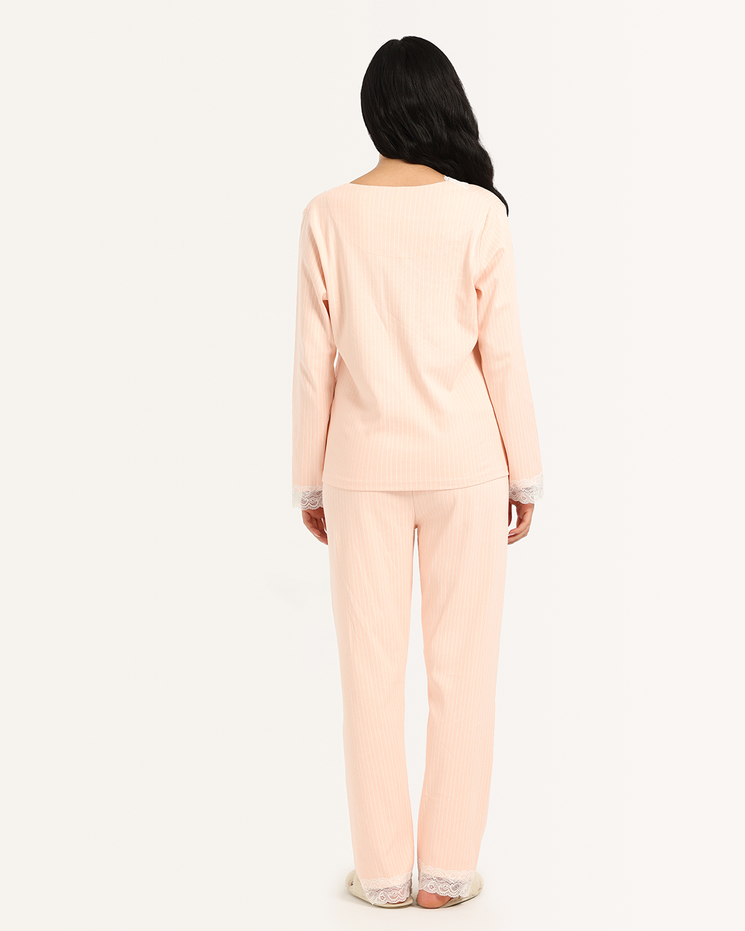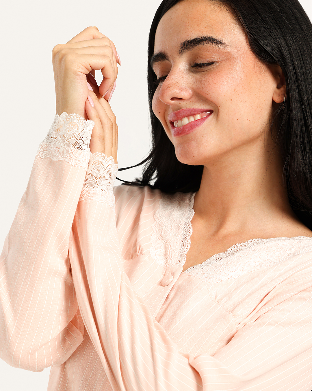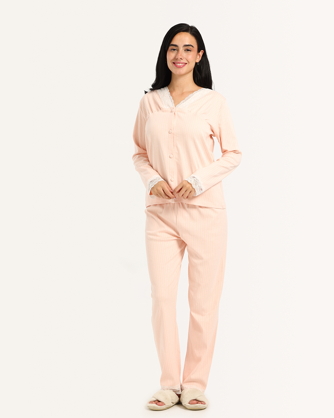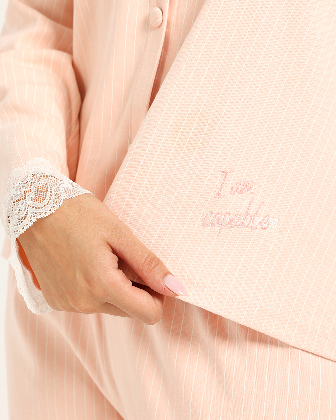 بيجاما حريمى كم بنطلون مقلم دانتيل