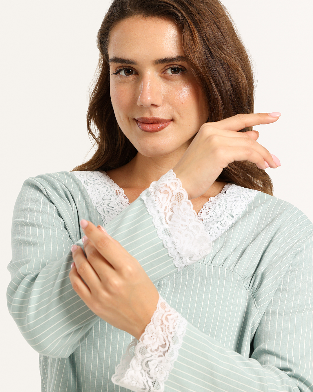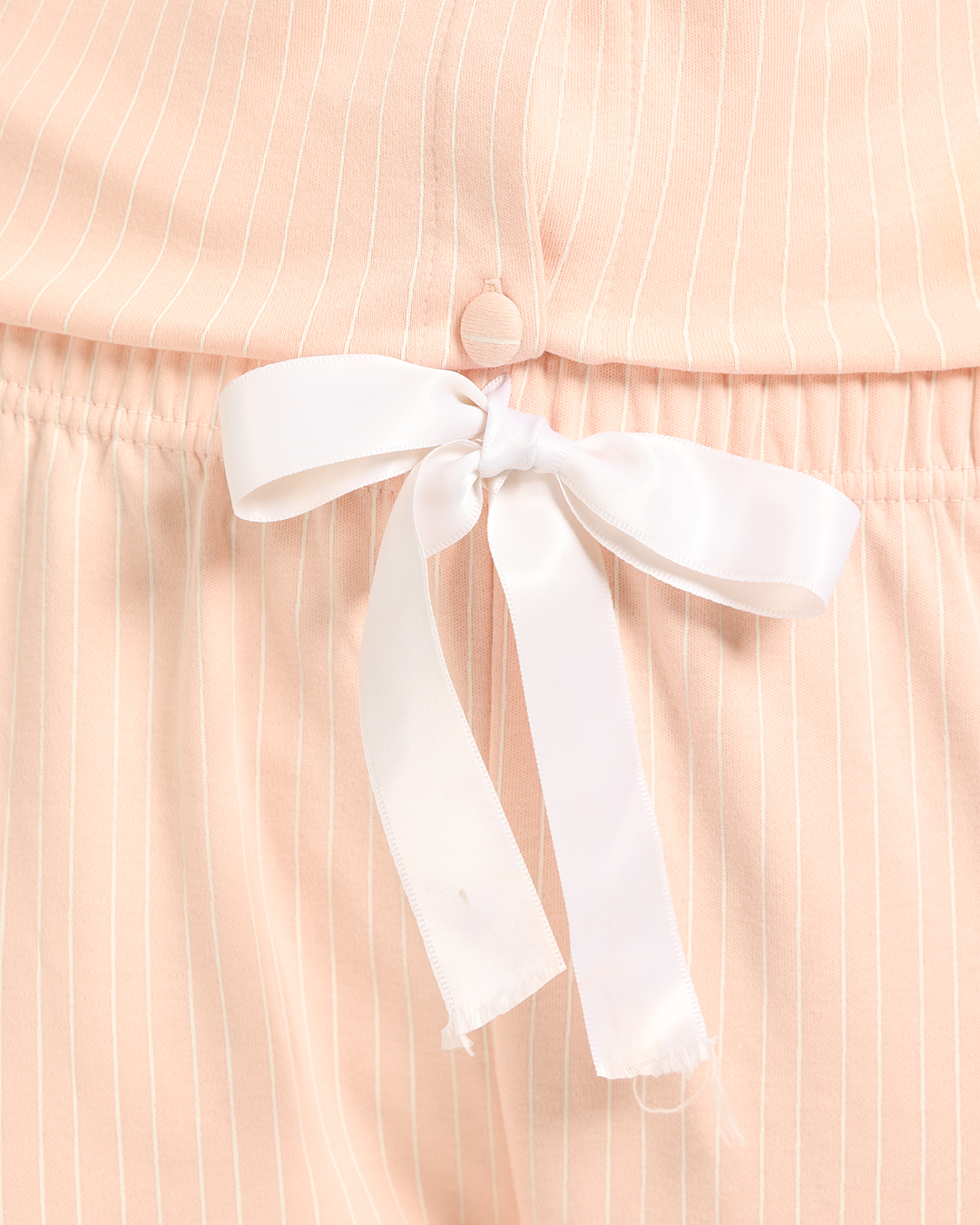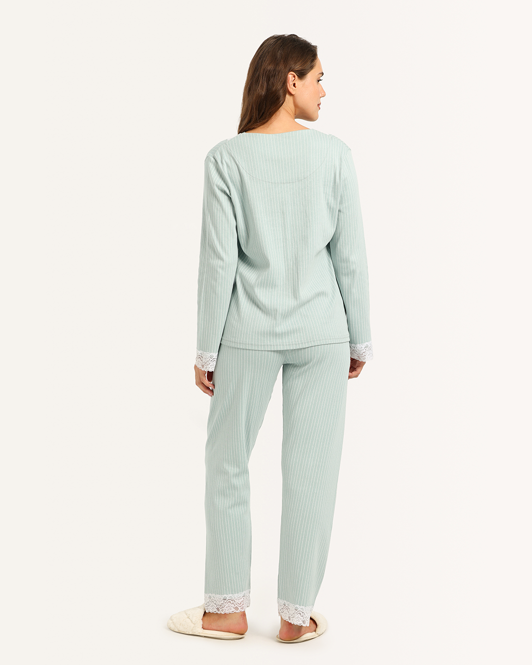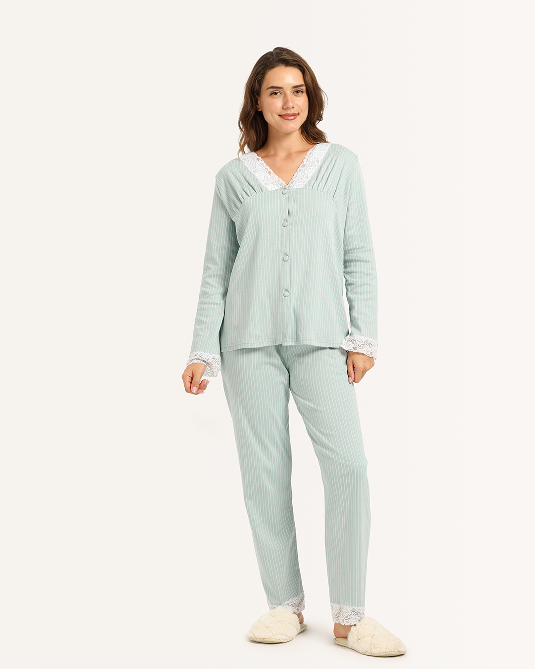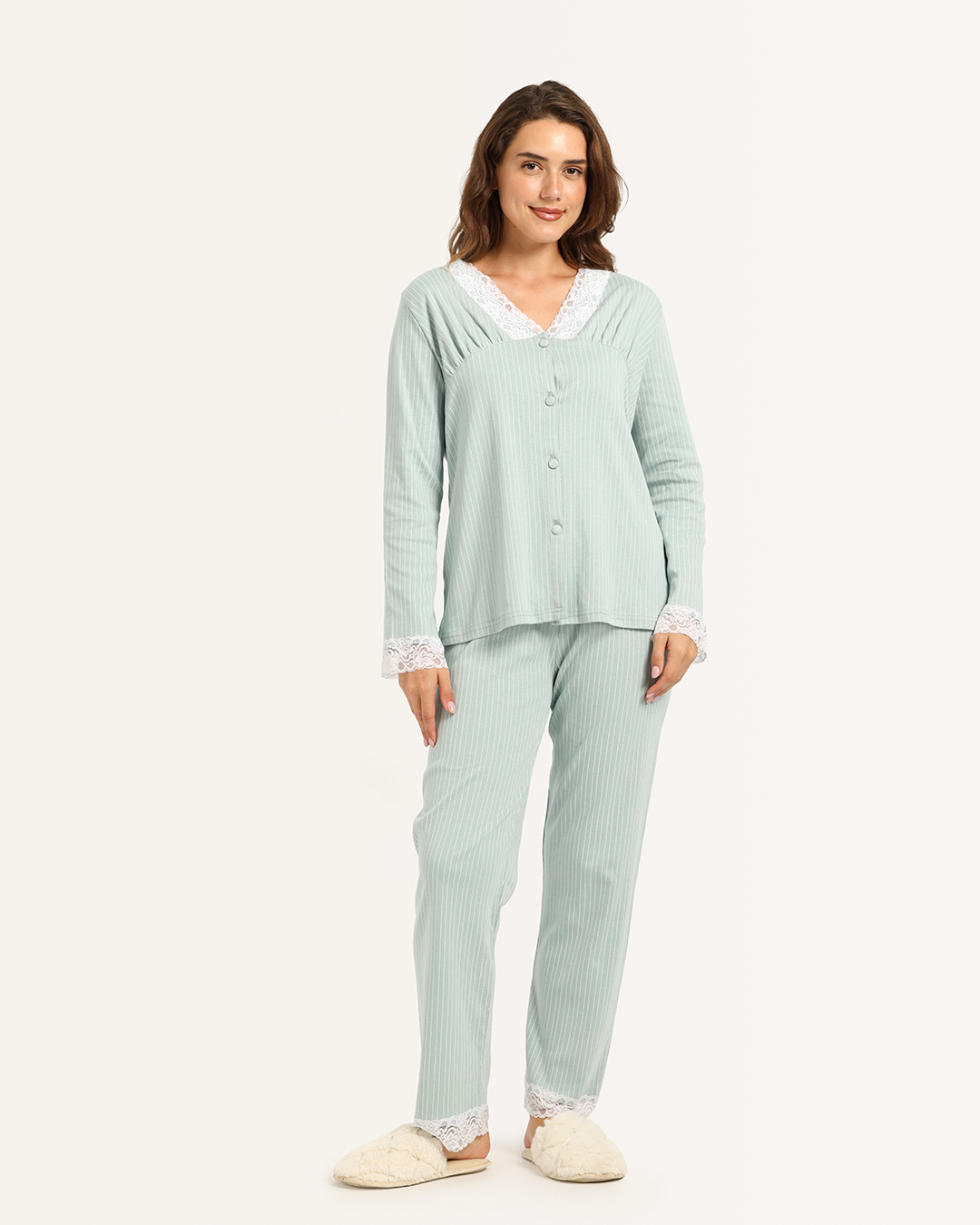 بيجاما حريمى كم بنطلون مقلم دانتيل