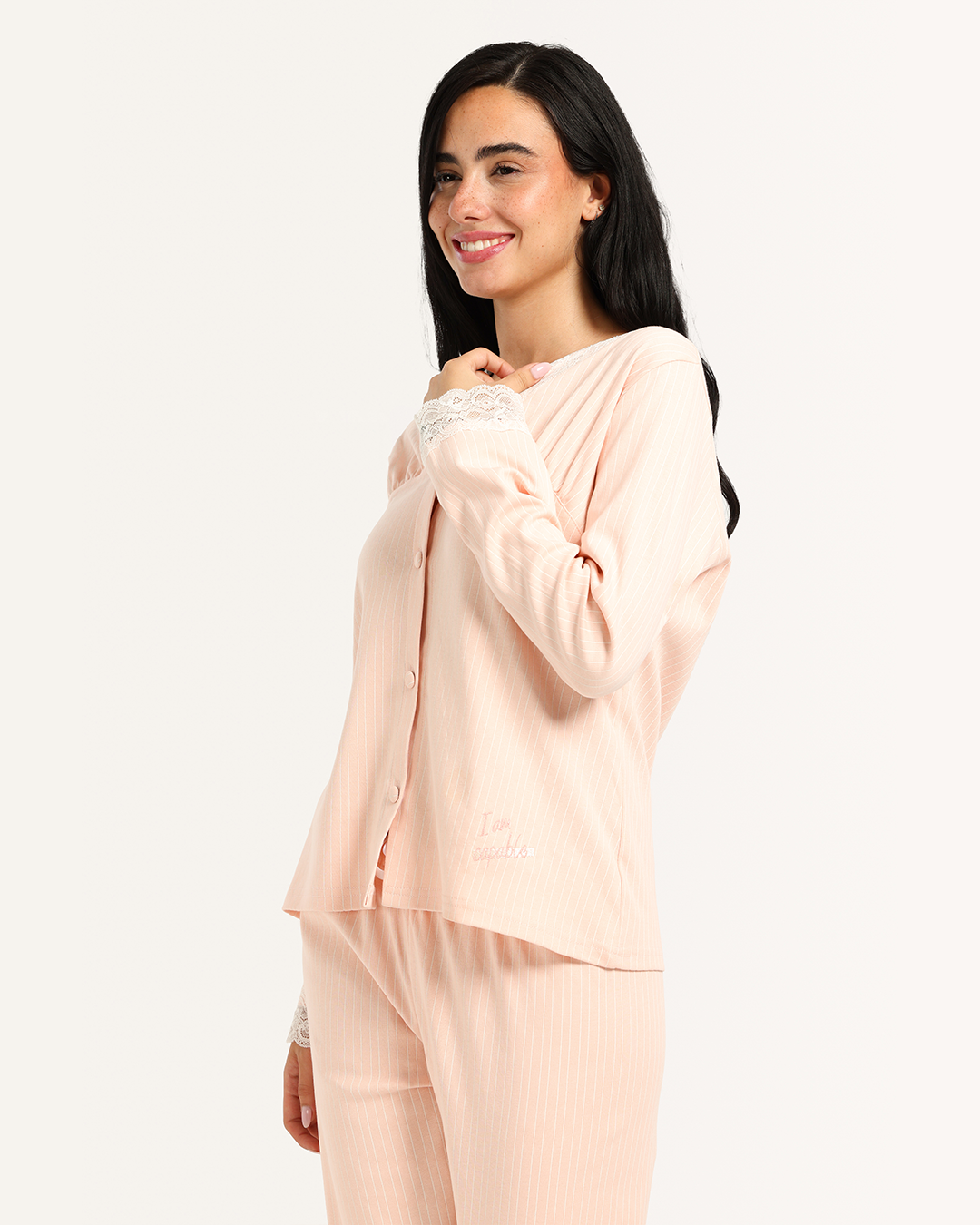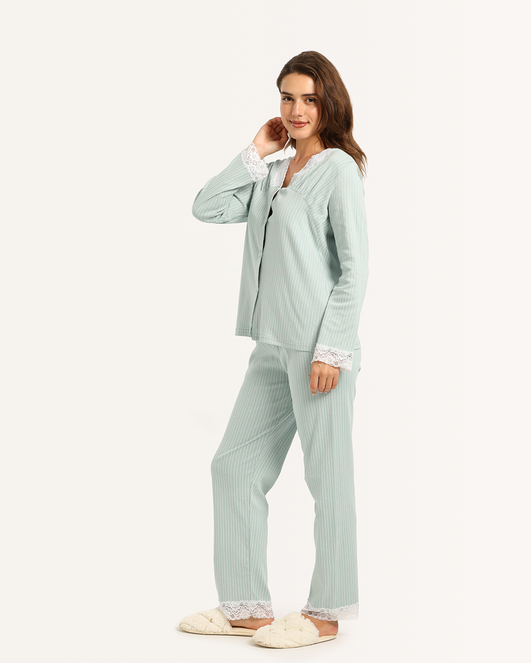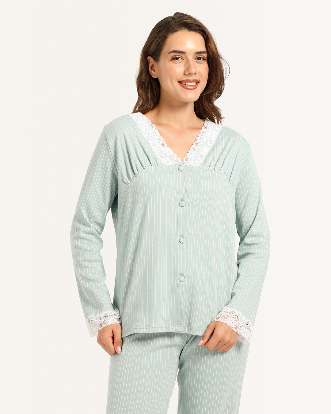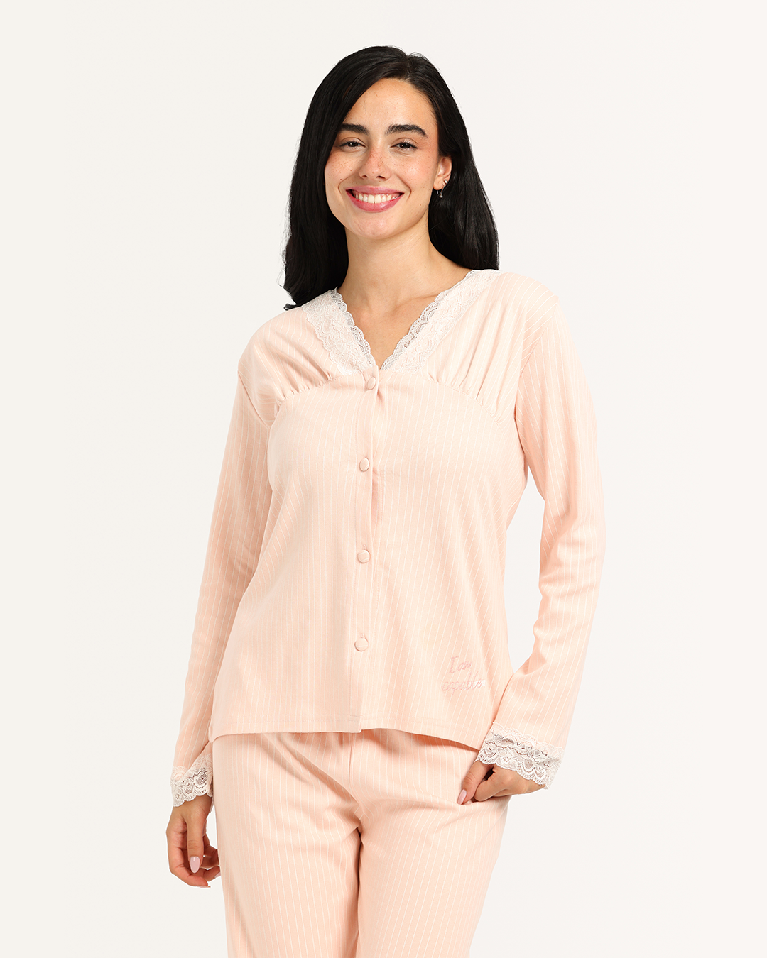 بيجاما حريمى كم بنطلون مقلم دانتيل