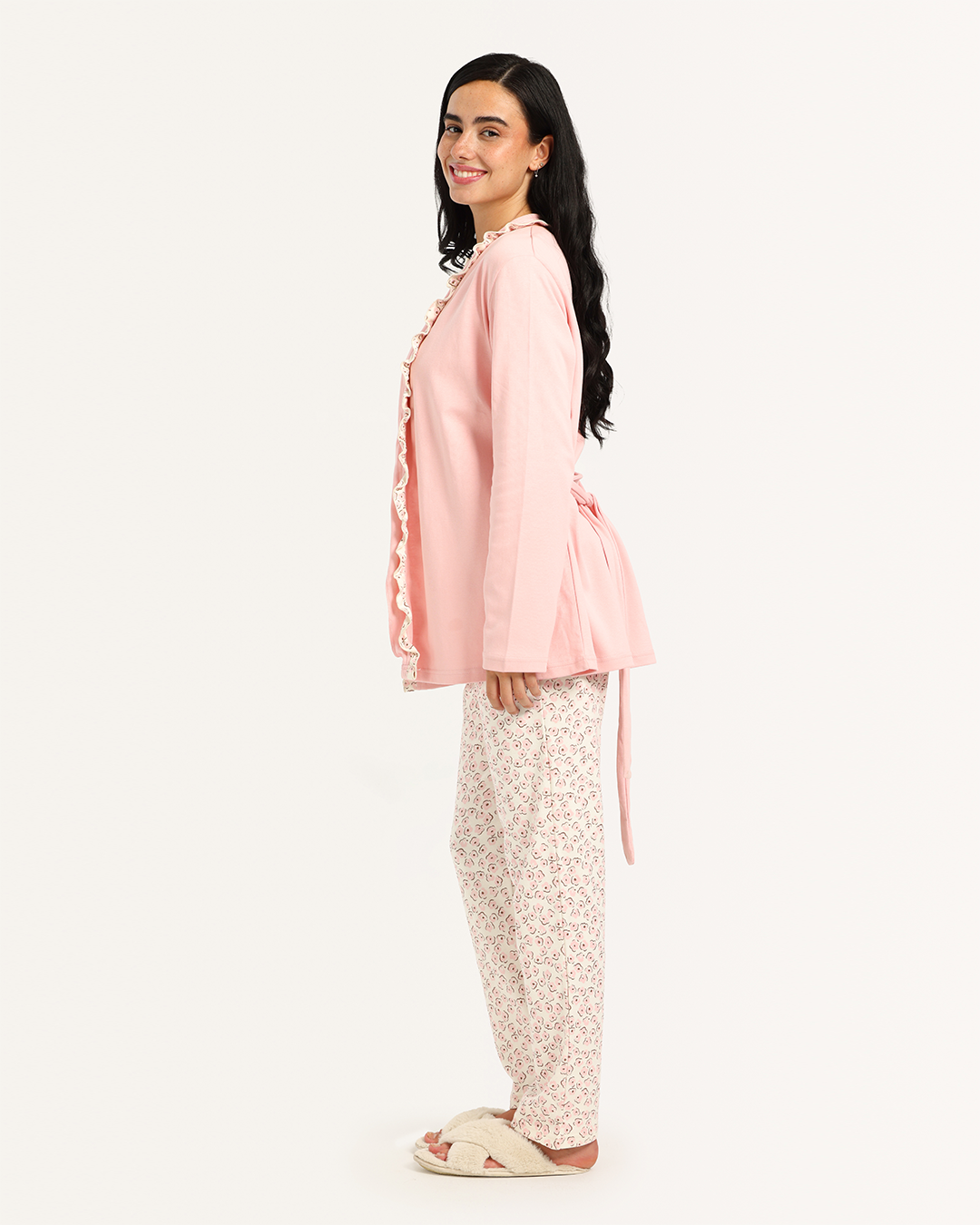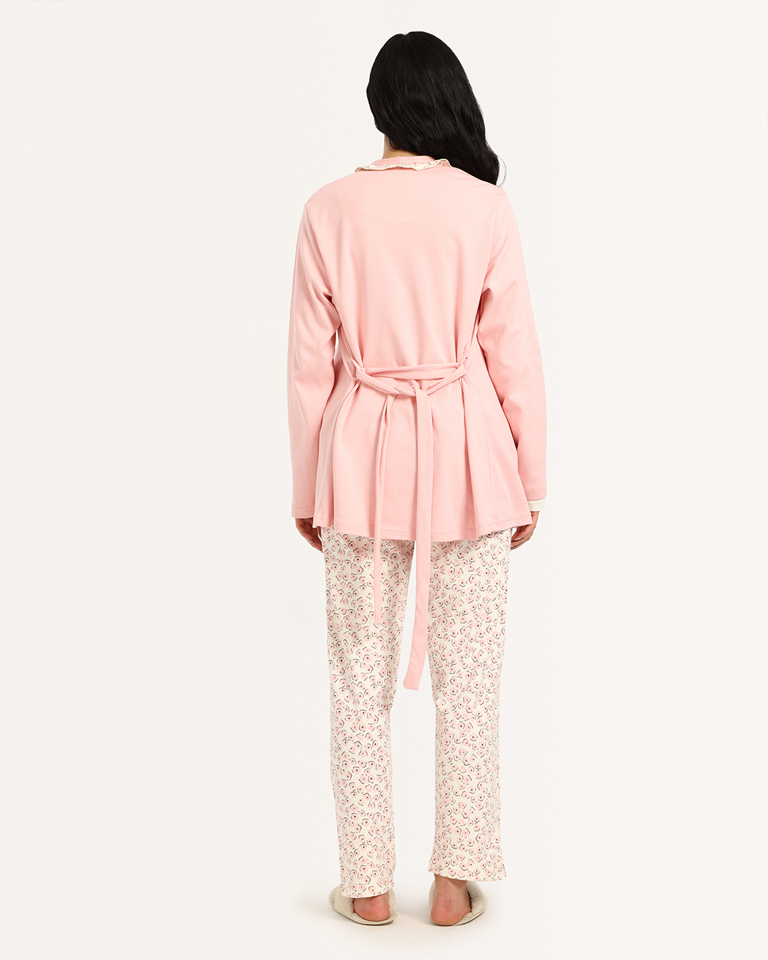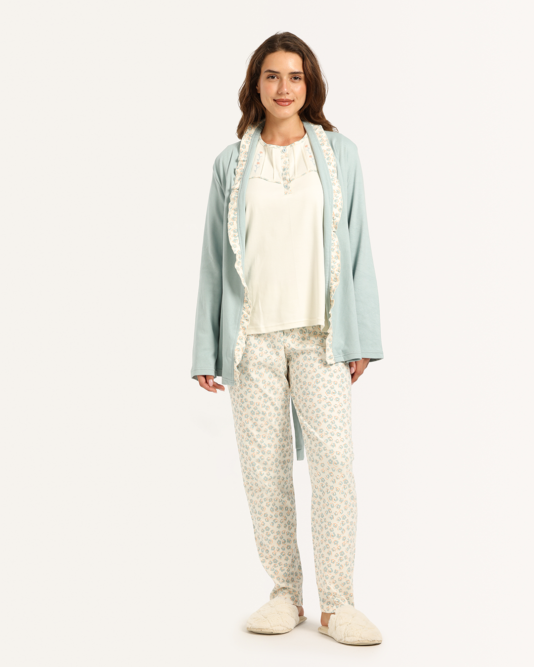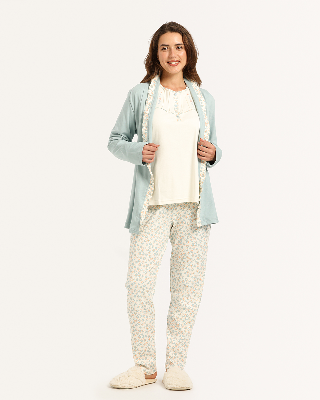 بيجاما حريمى كم 3ق بنطلون مع روب قصير ورد