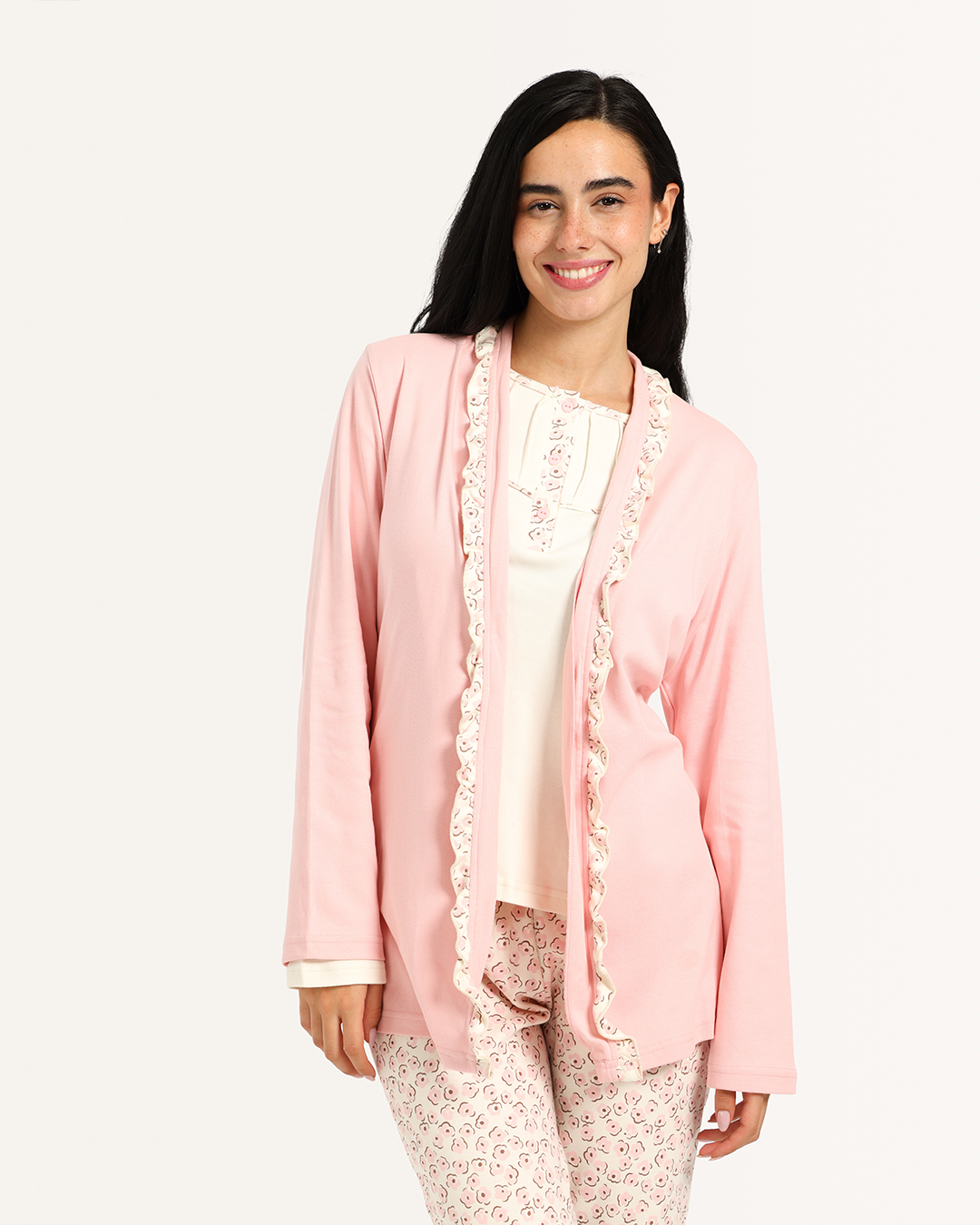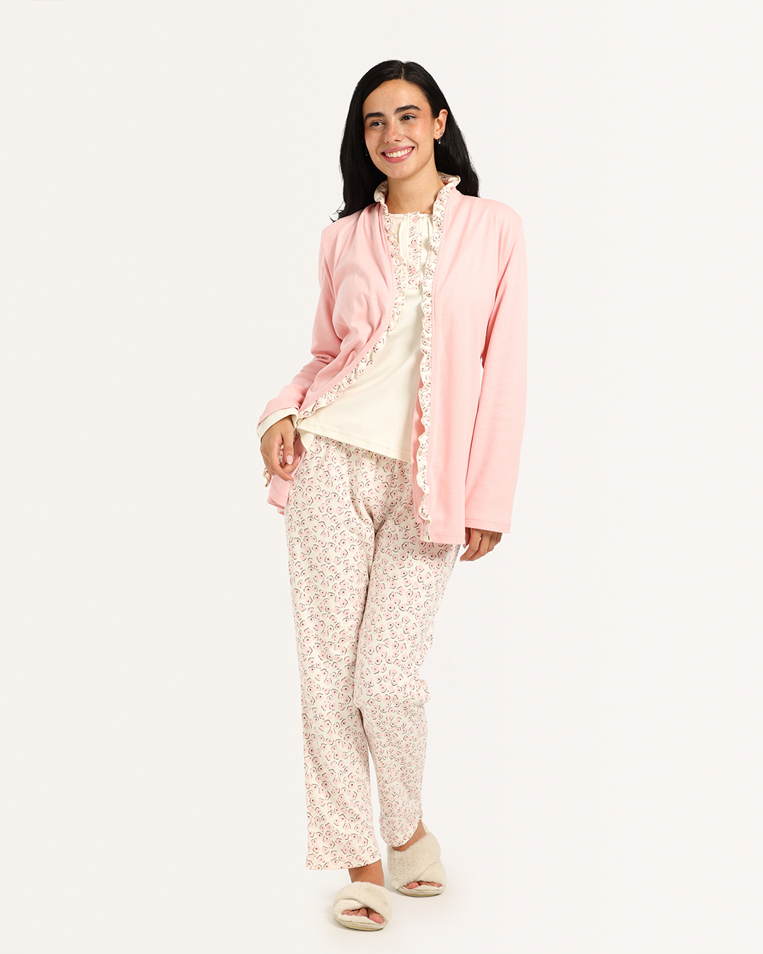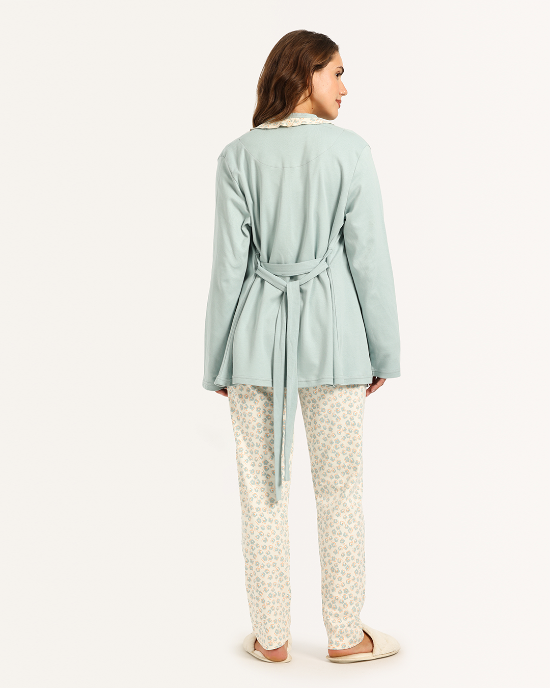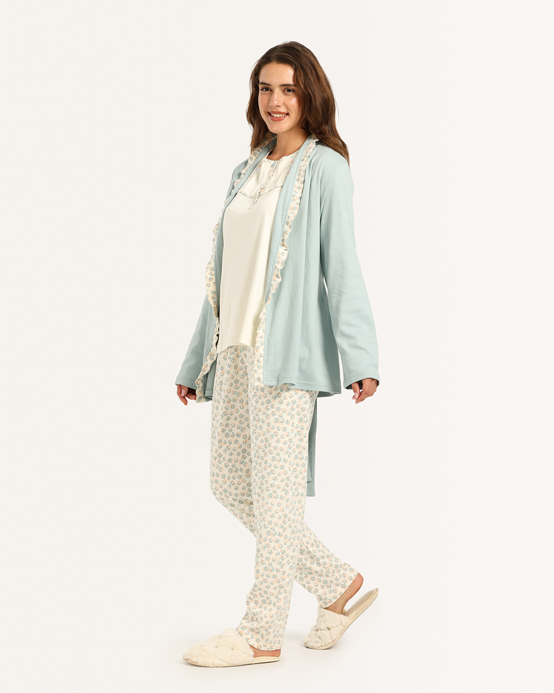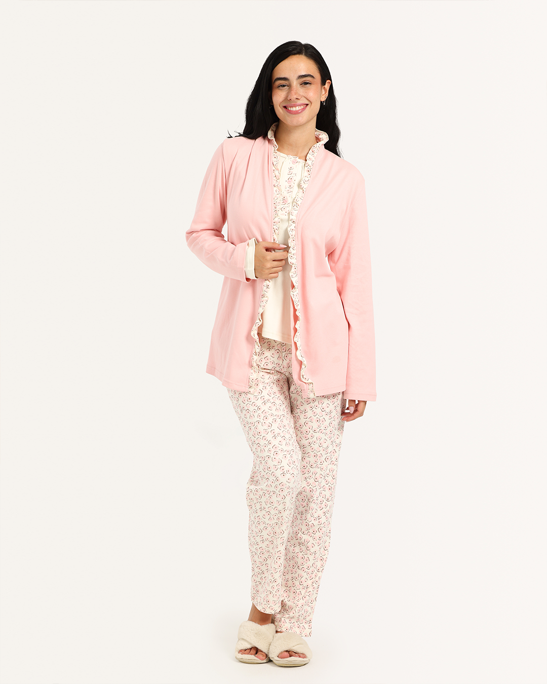 بيجاما حريمى كم 3ق بنطلون مع روب قصير ورد