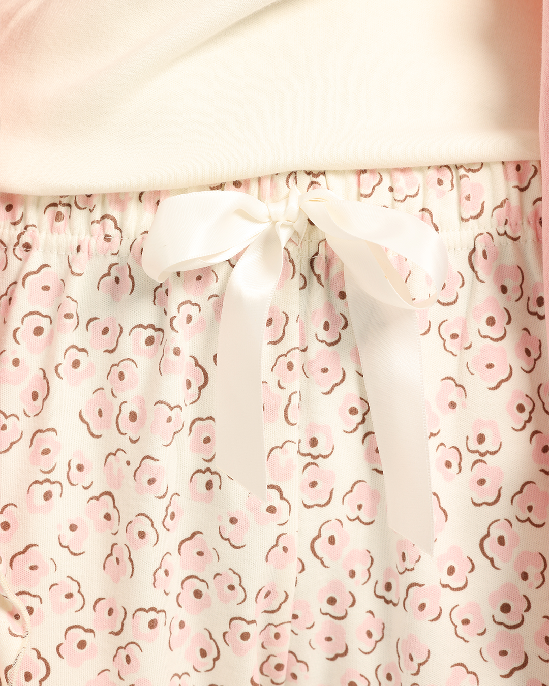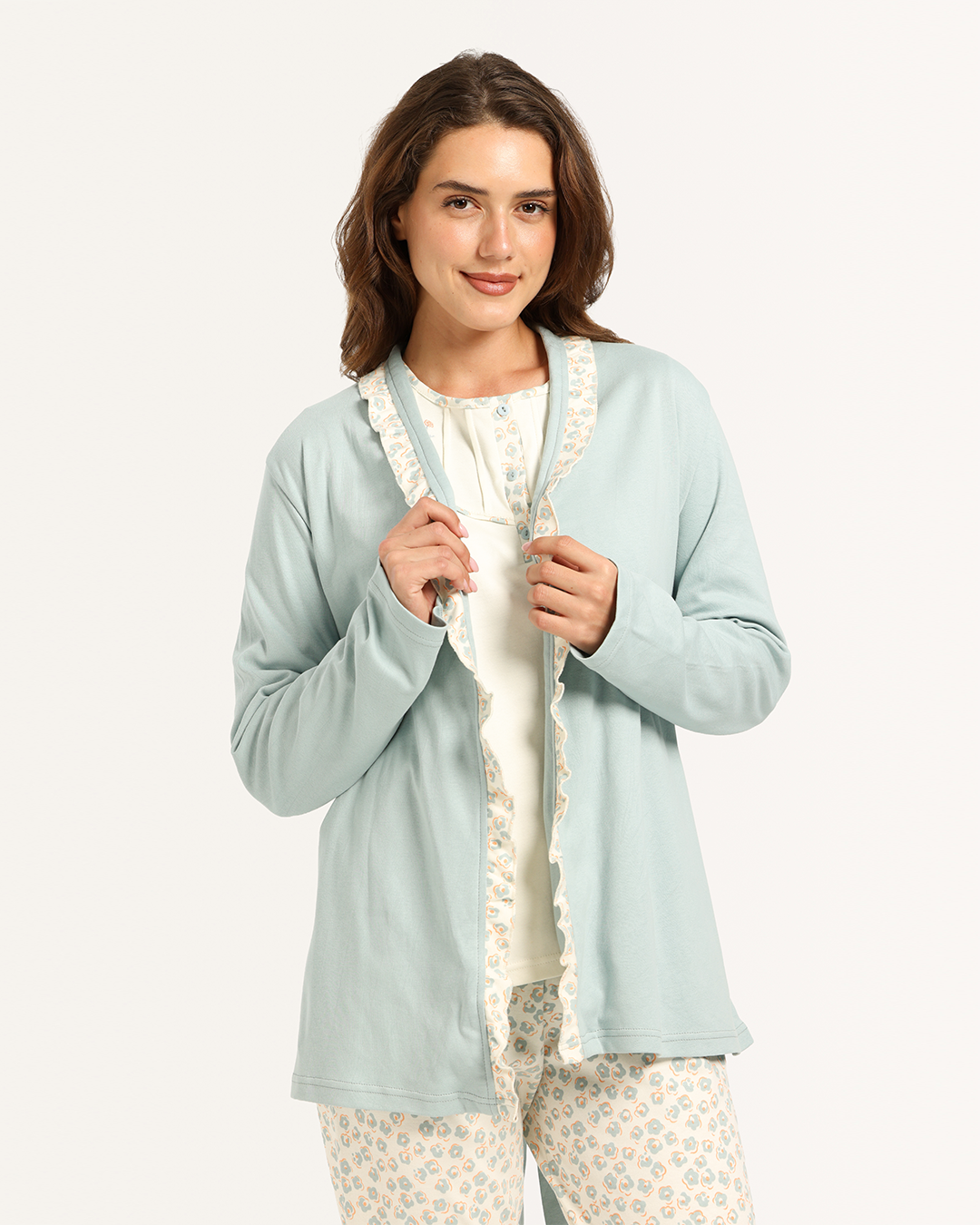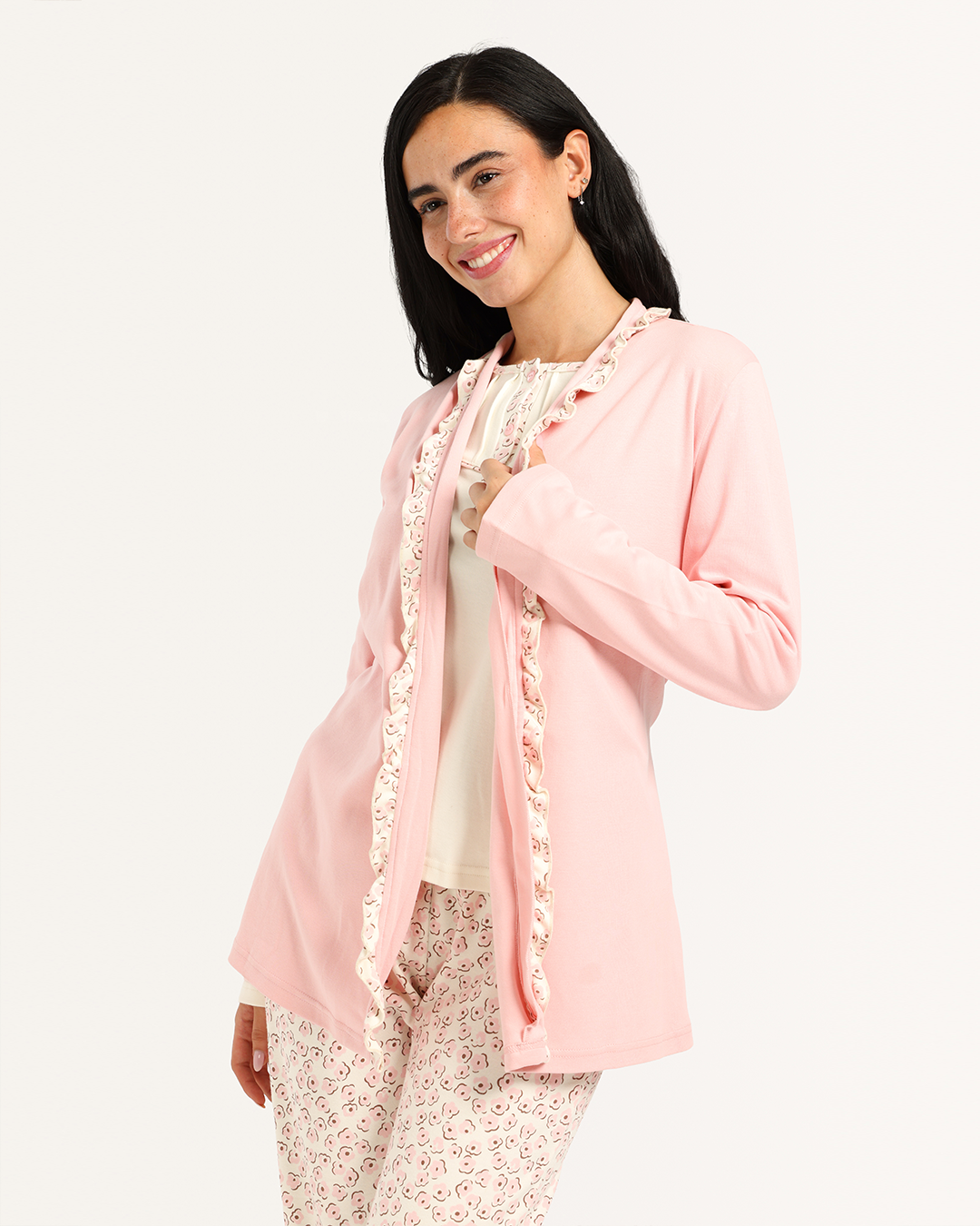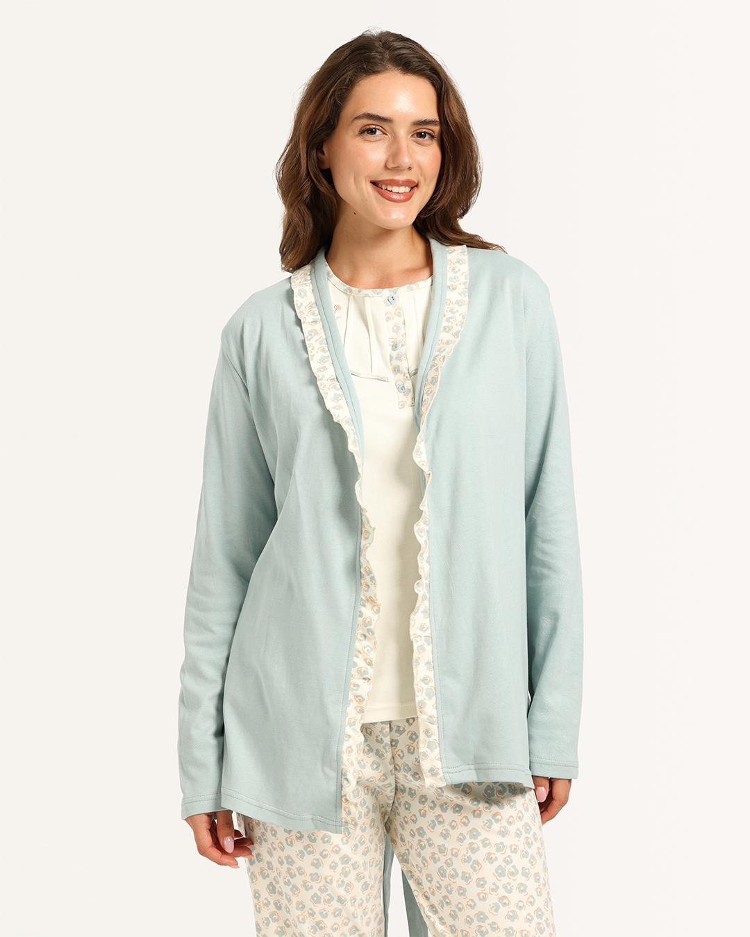 بيجاما حريمى كم 3ق بنطلون مع روب قصير ورد