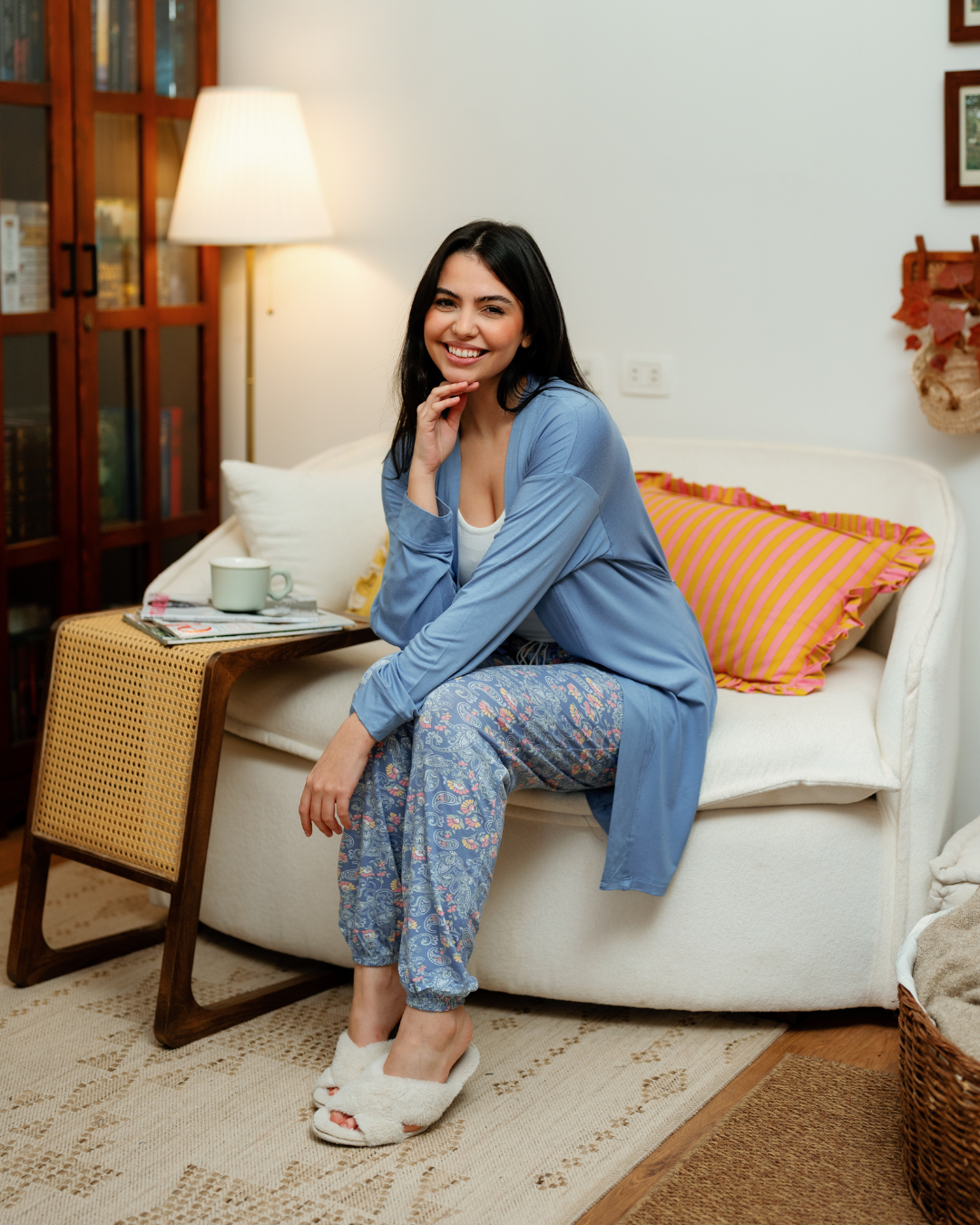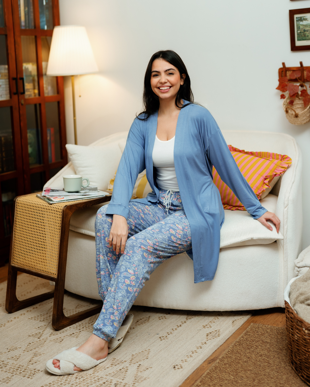 بيجاما حريمي 3 قطع اشكال هندسيه و ورود