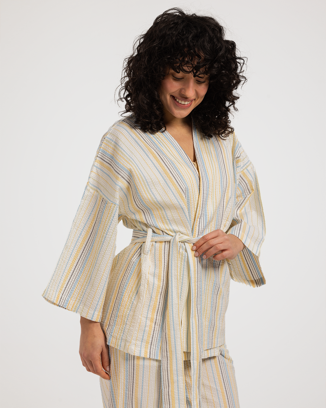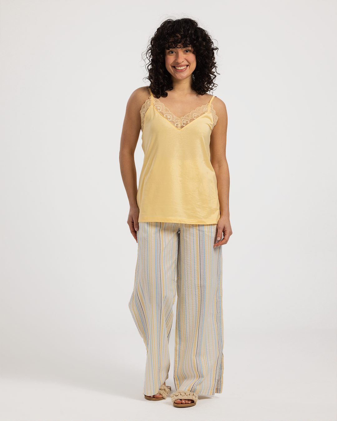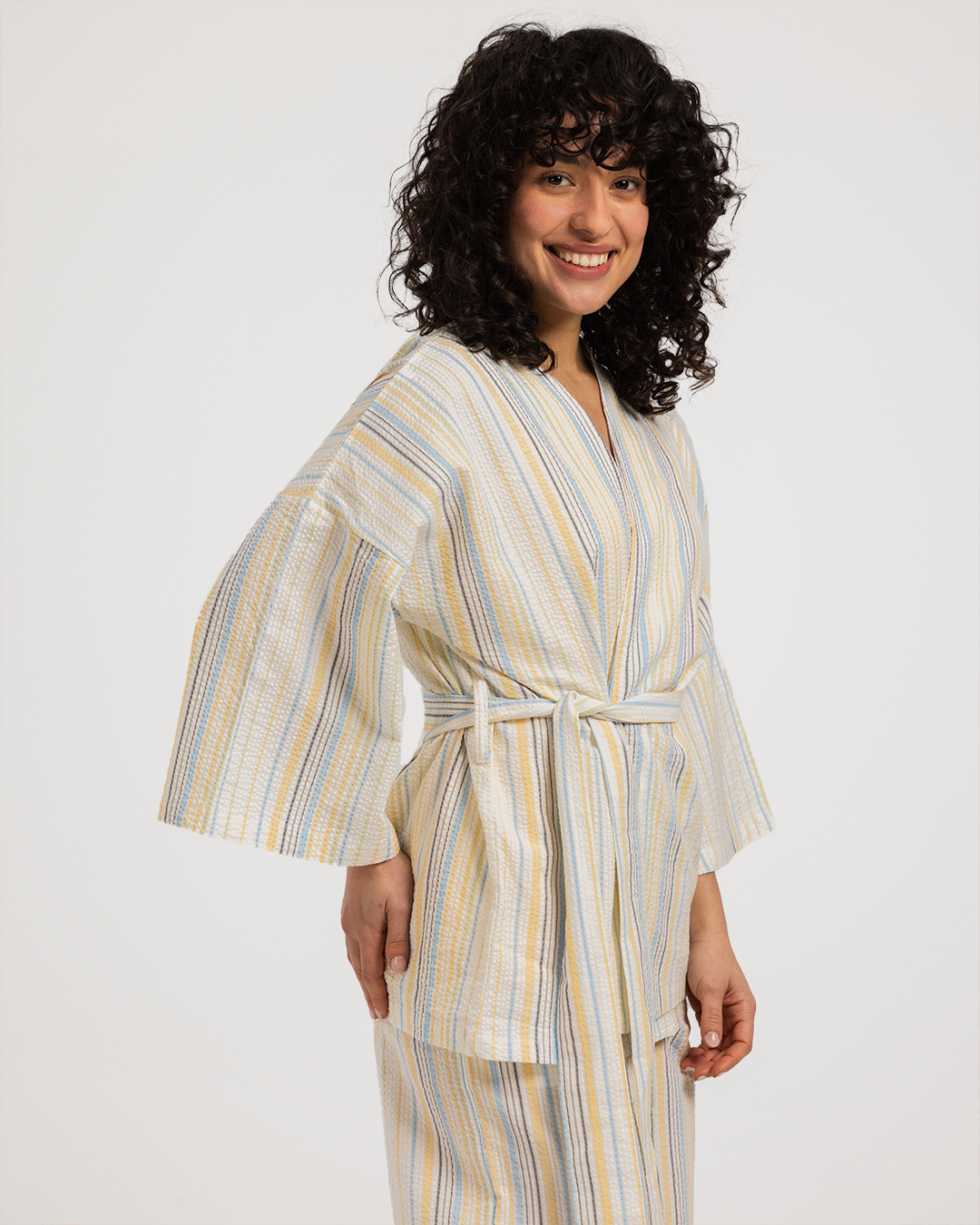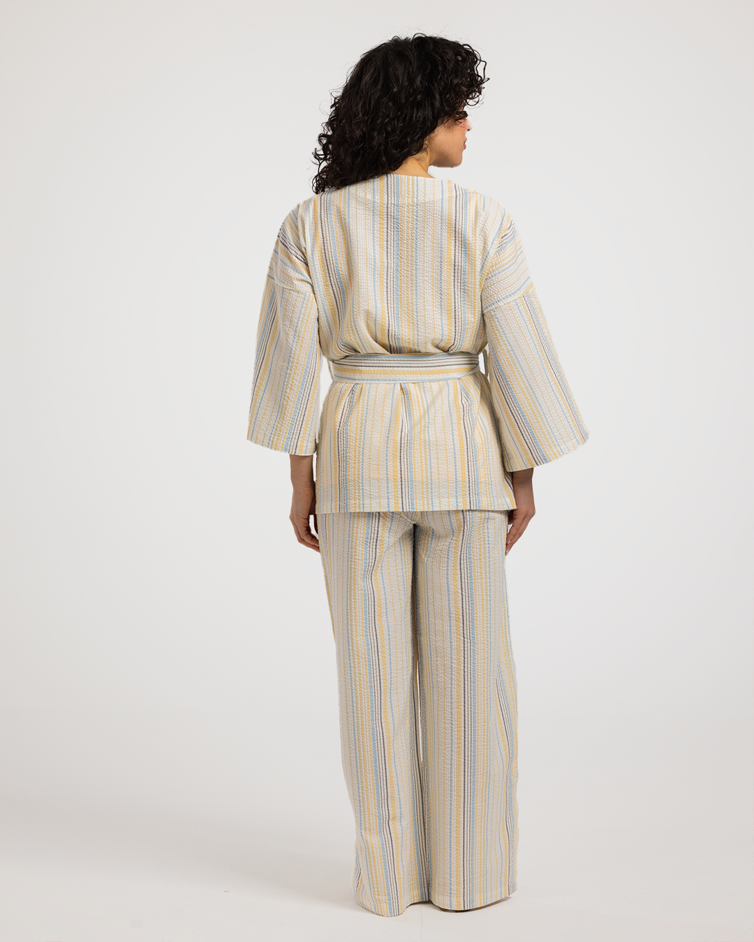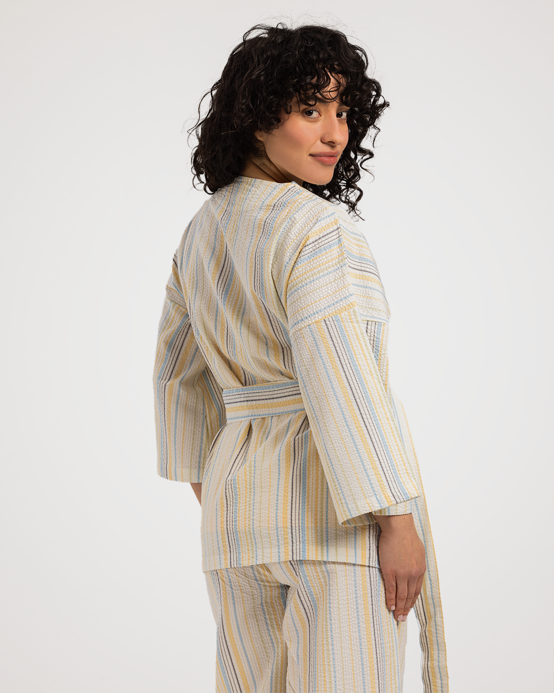 بيجاما حريمي 3 قطع خطوط باللوان الربيع