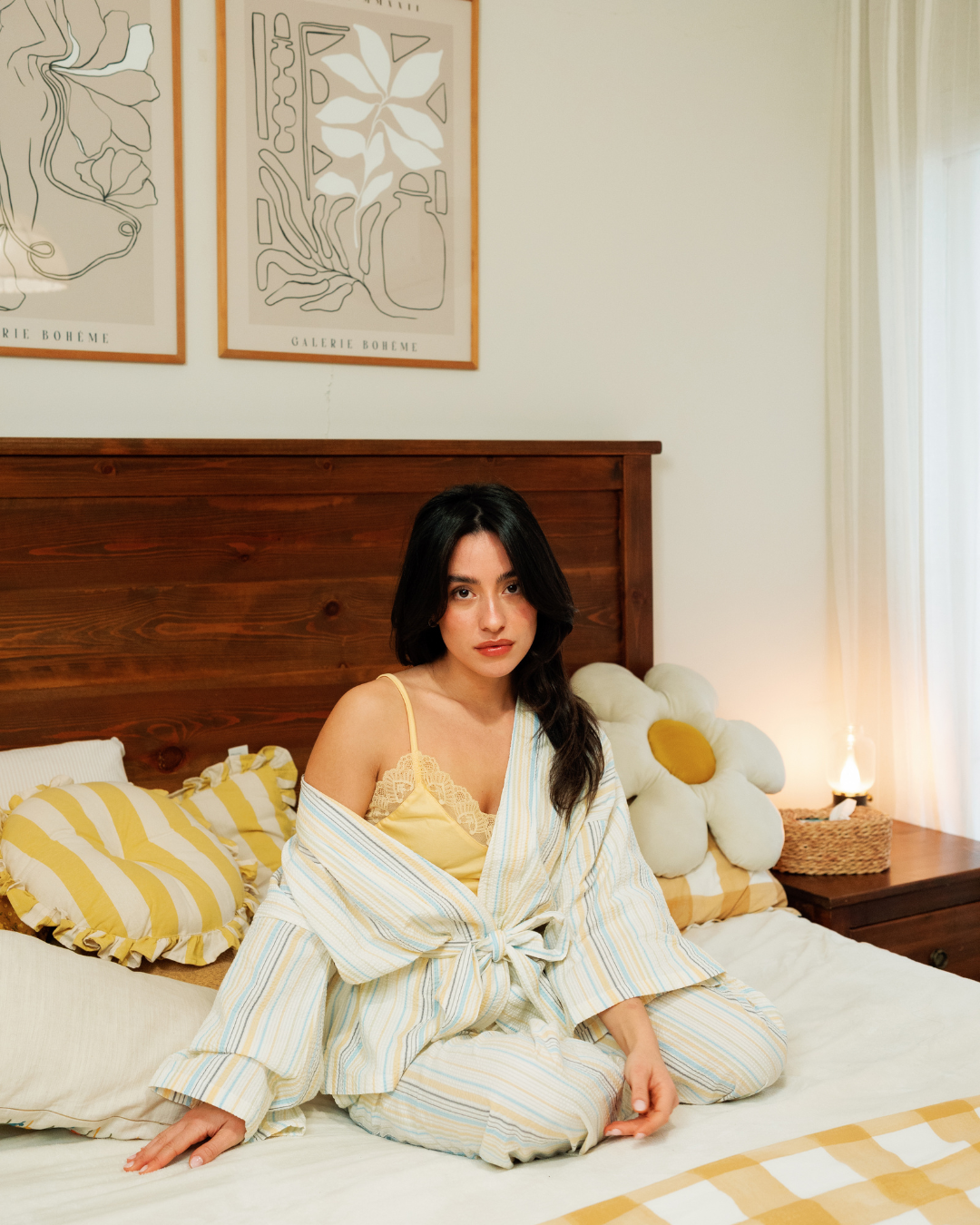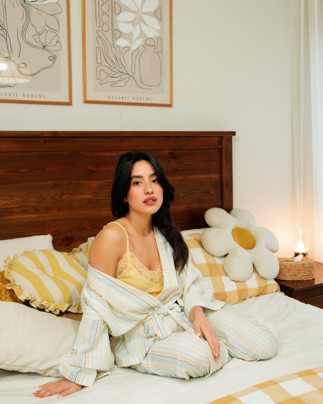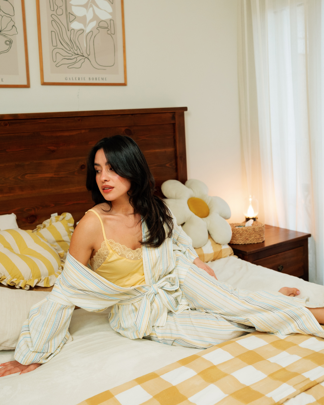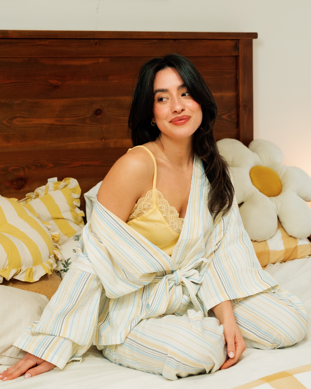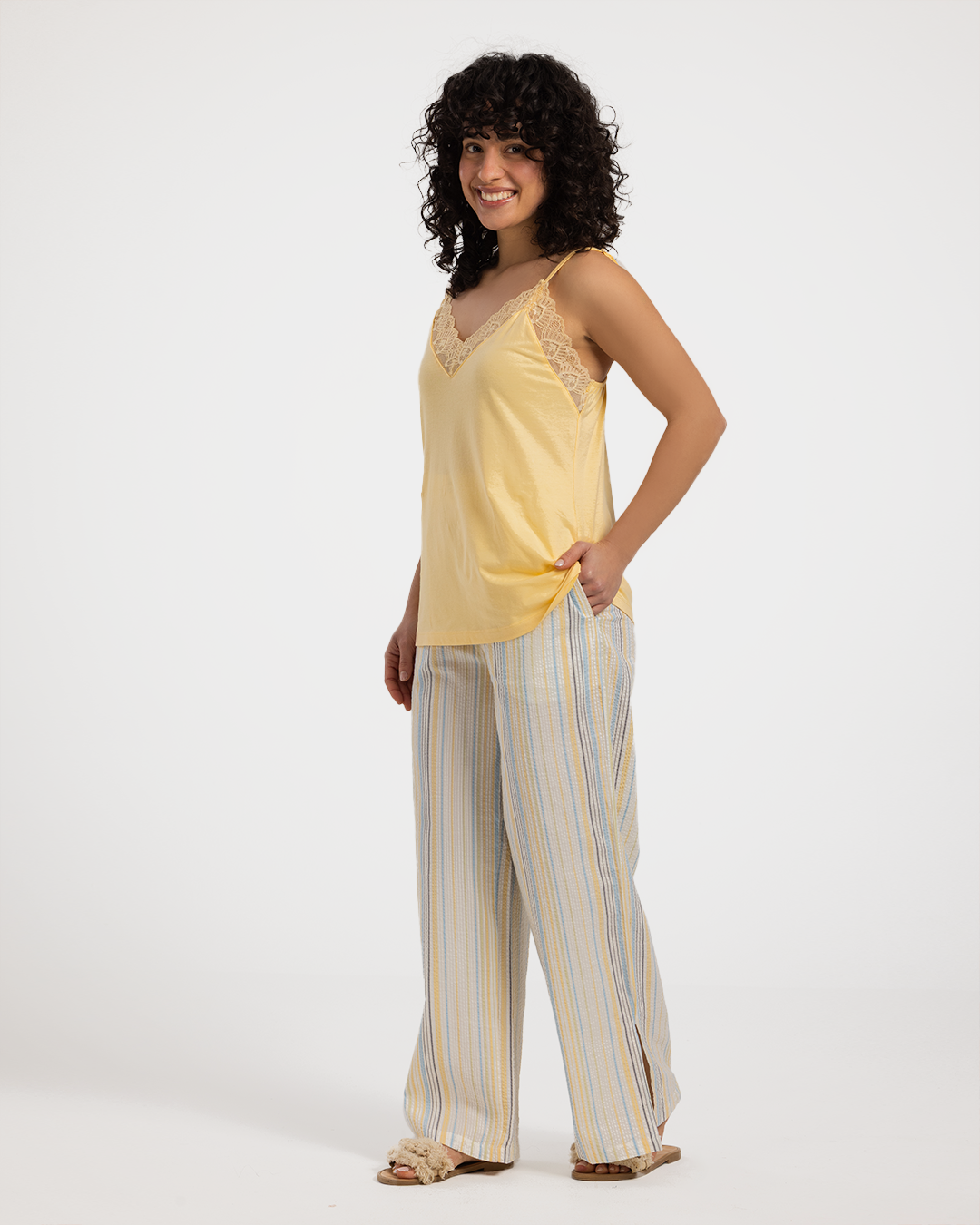بيجاما حريمي 3 قطع خطوط باللوان الربيع