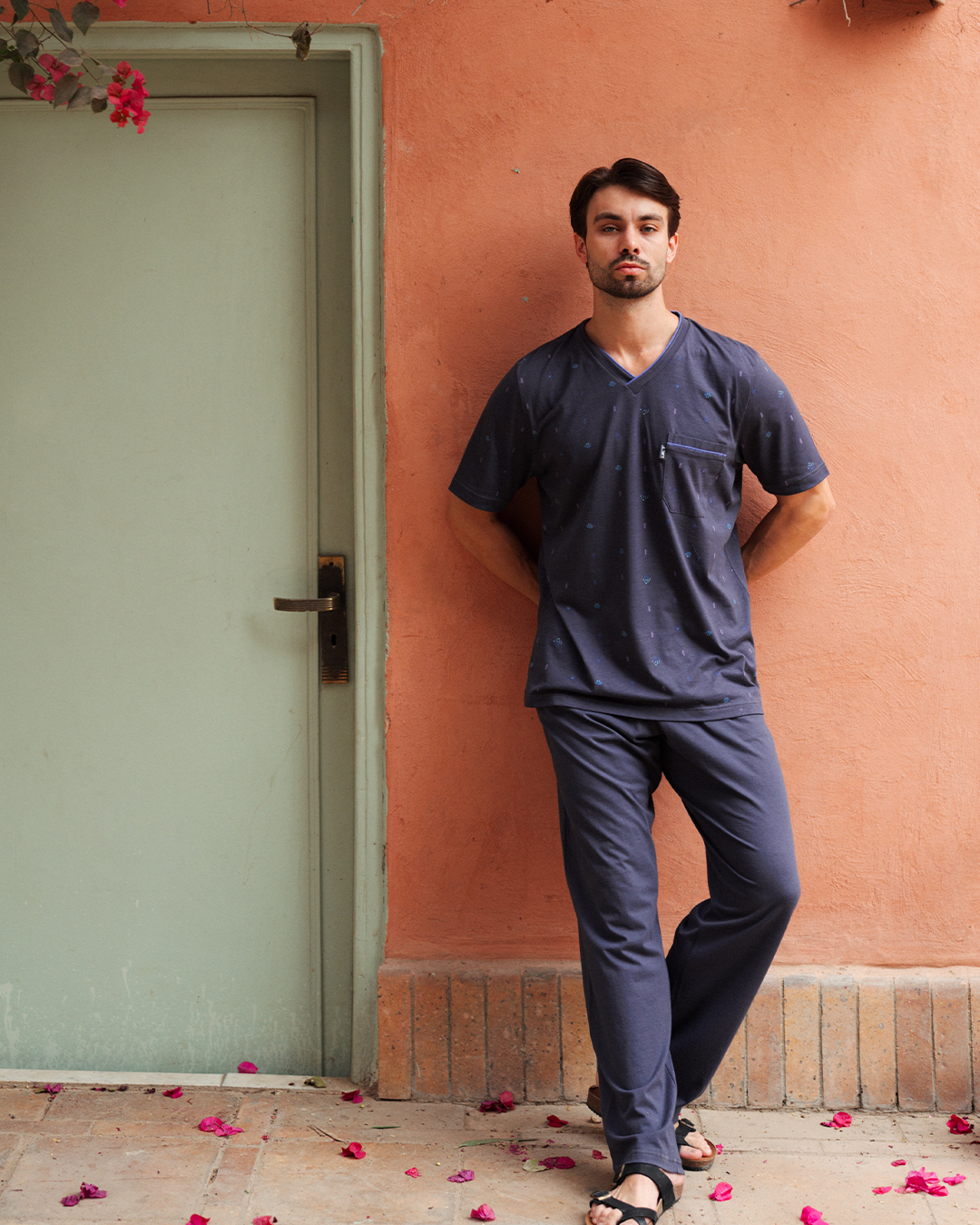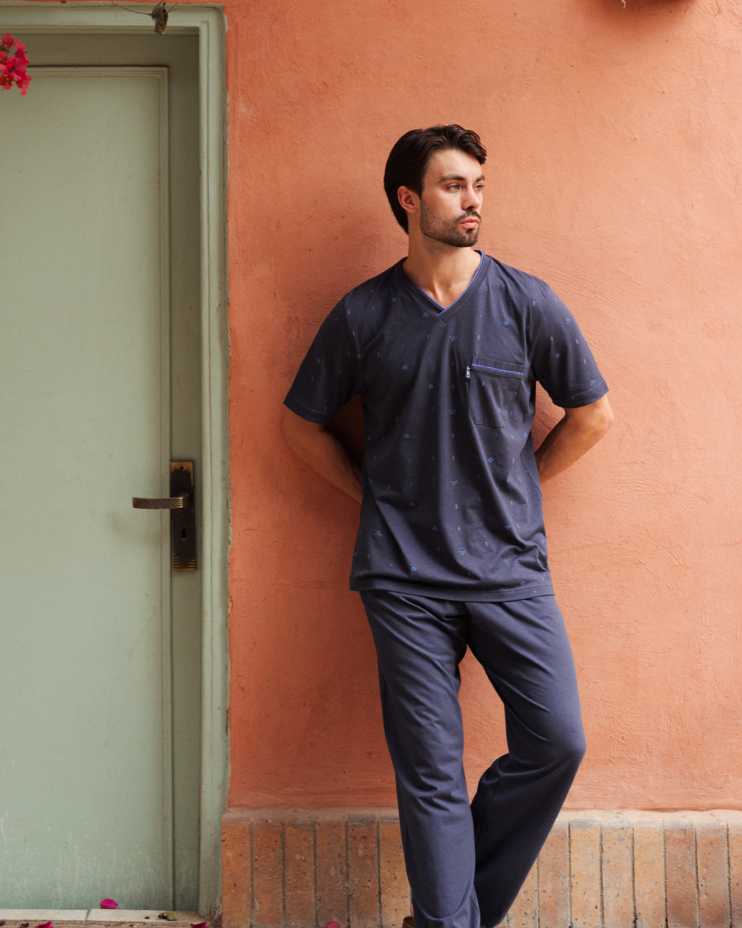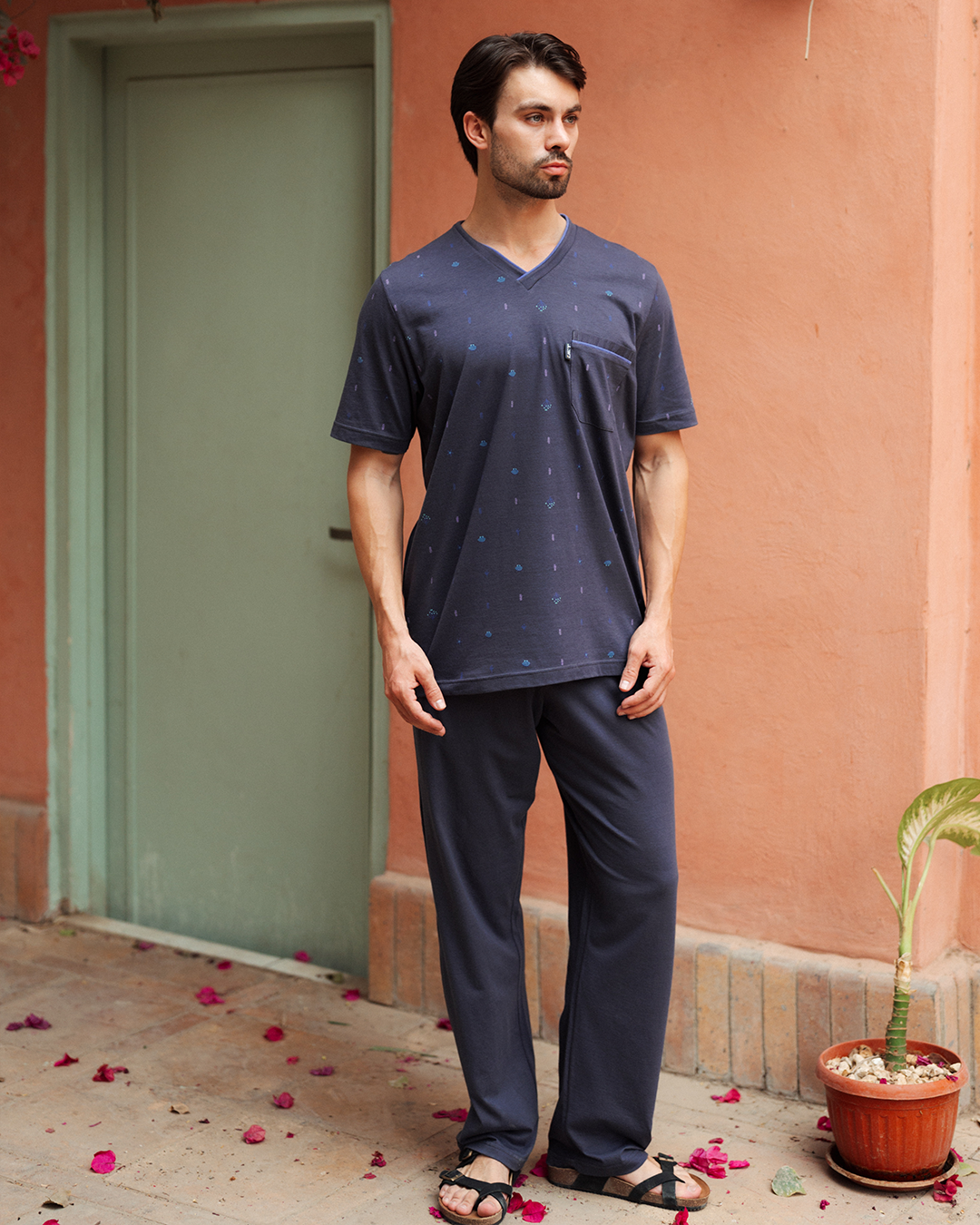 بيجاما رجالى توب مطبوع نصف كم و بنطلون ساده