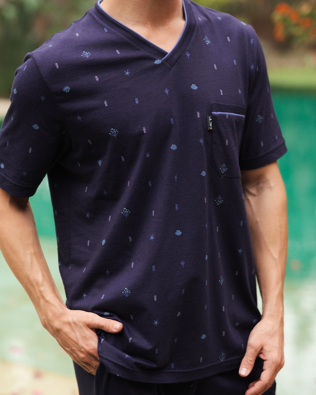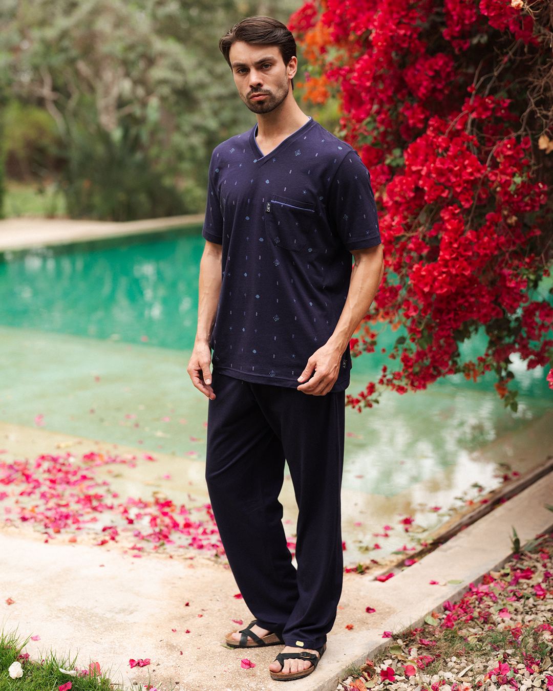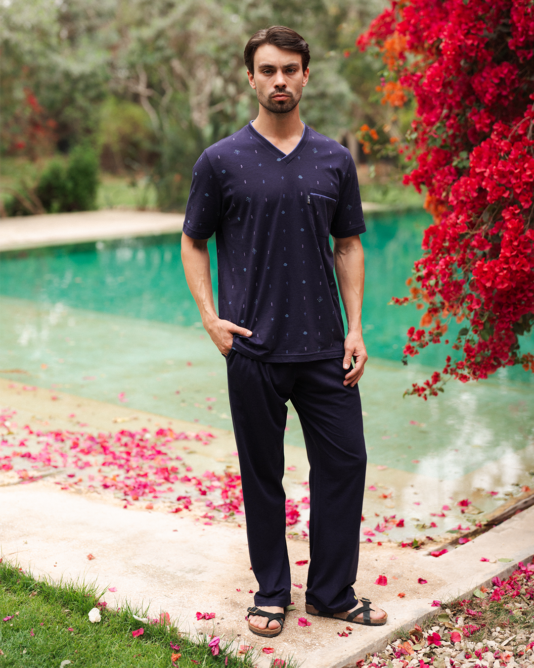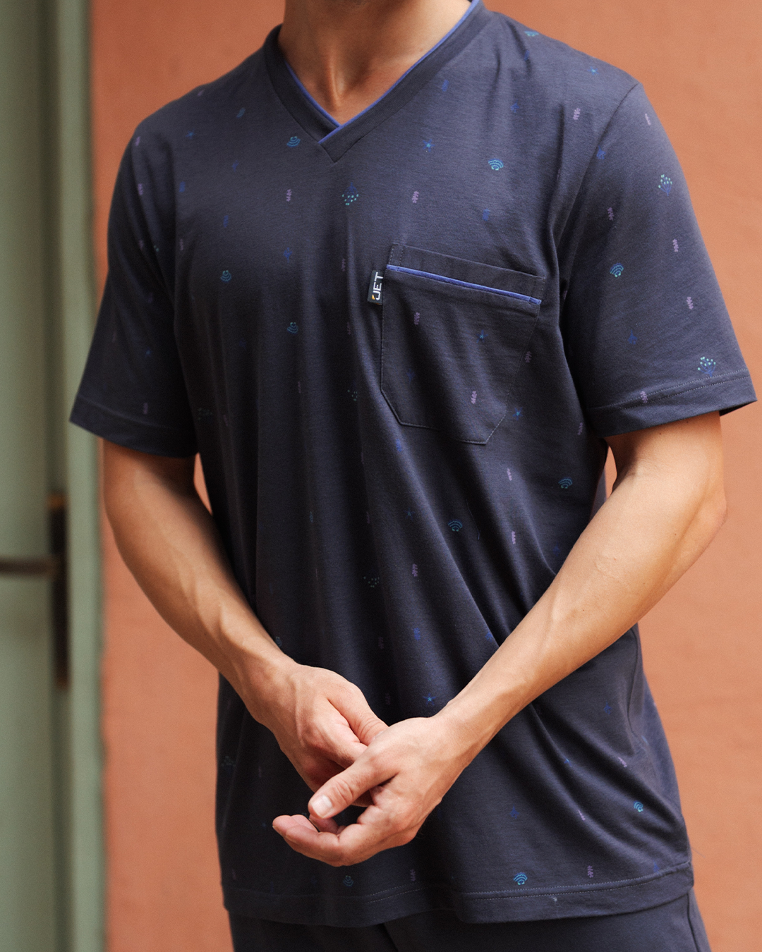 بيجاما رجالى توب مطبوع نصف كم و بنطلون ساده