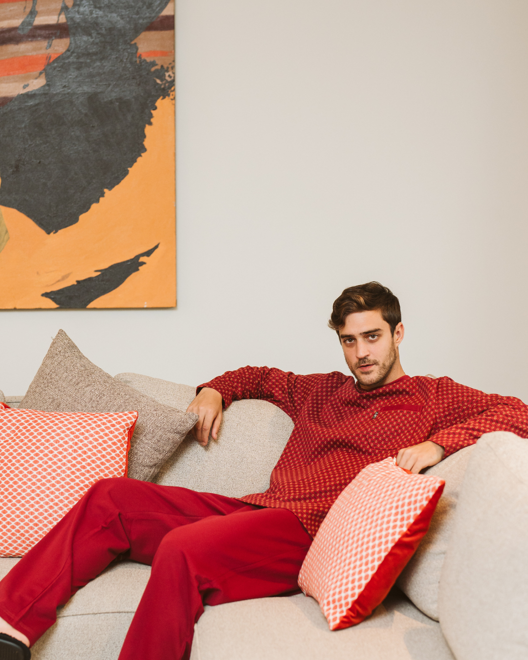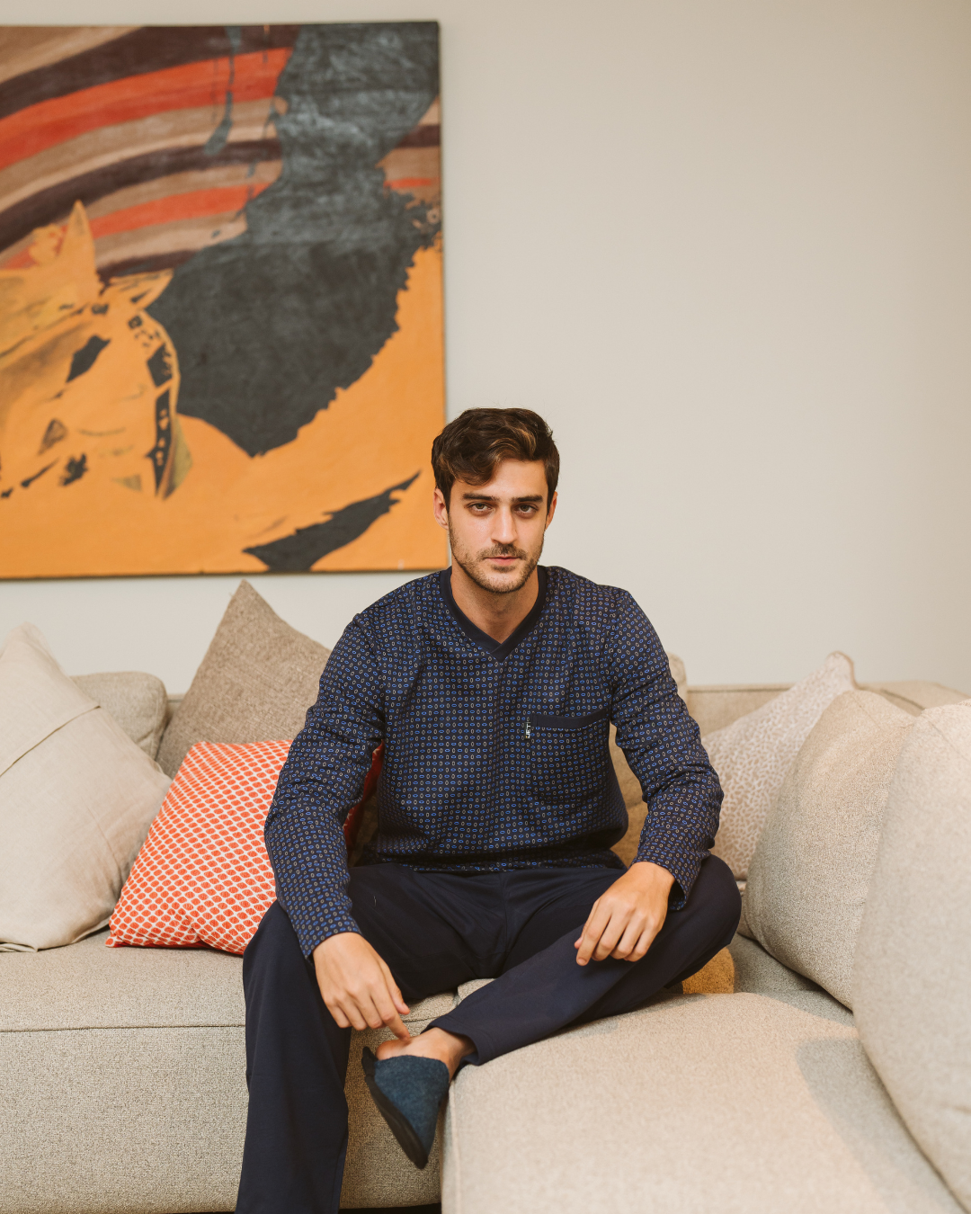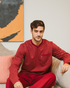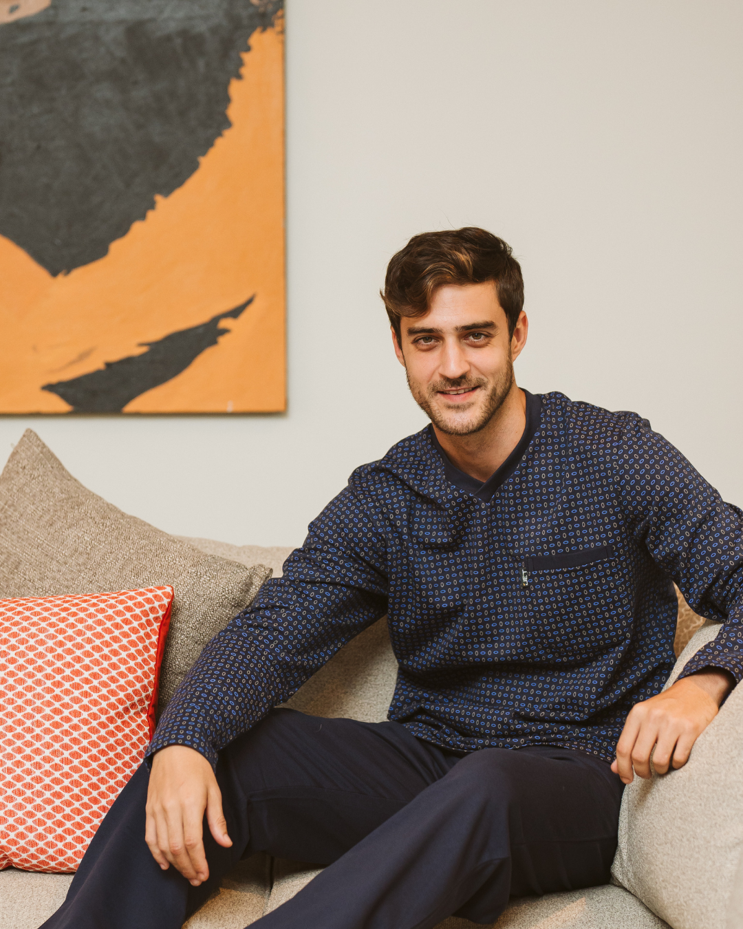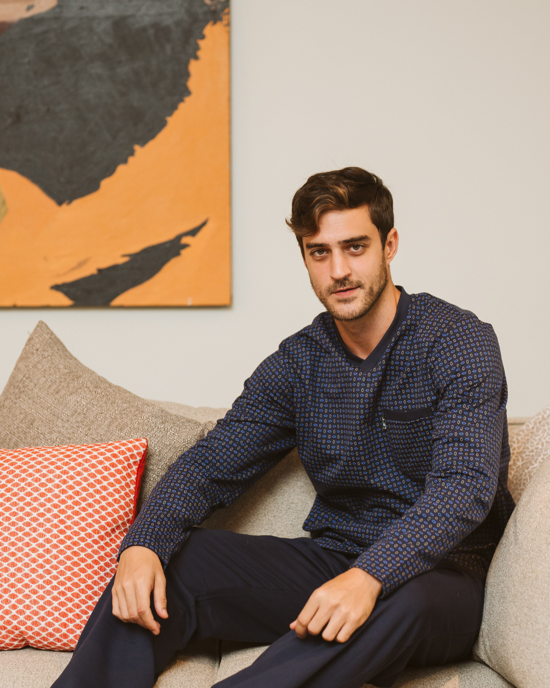 بيجاما رجالى مصبوغ مطبوع  * سادة ، جاكيت مصبوغ مطبوع كم طويل مع رقبة