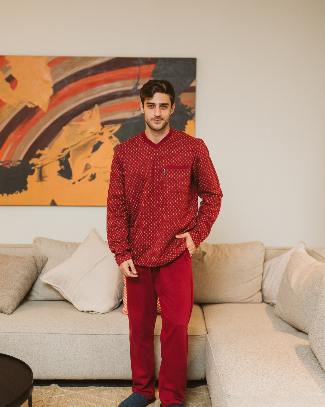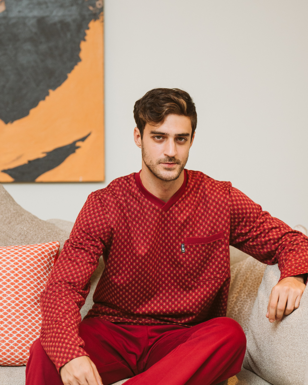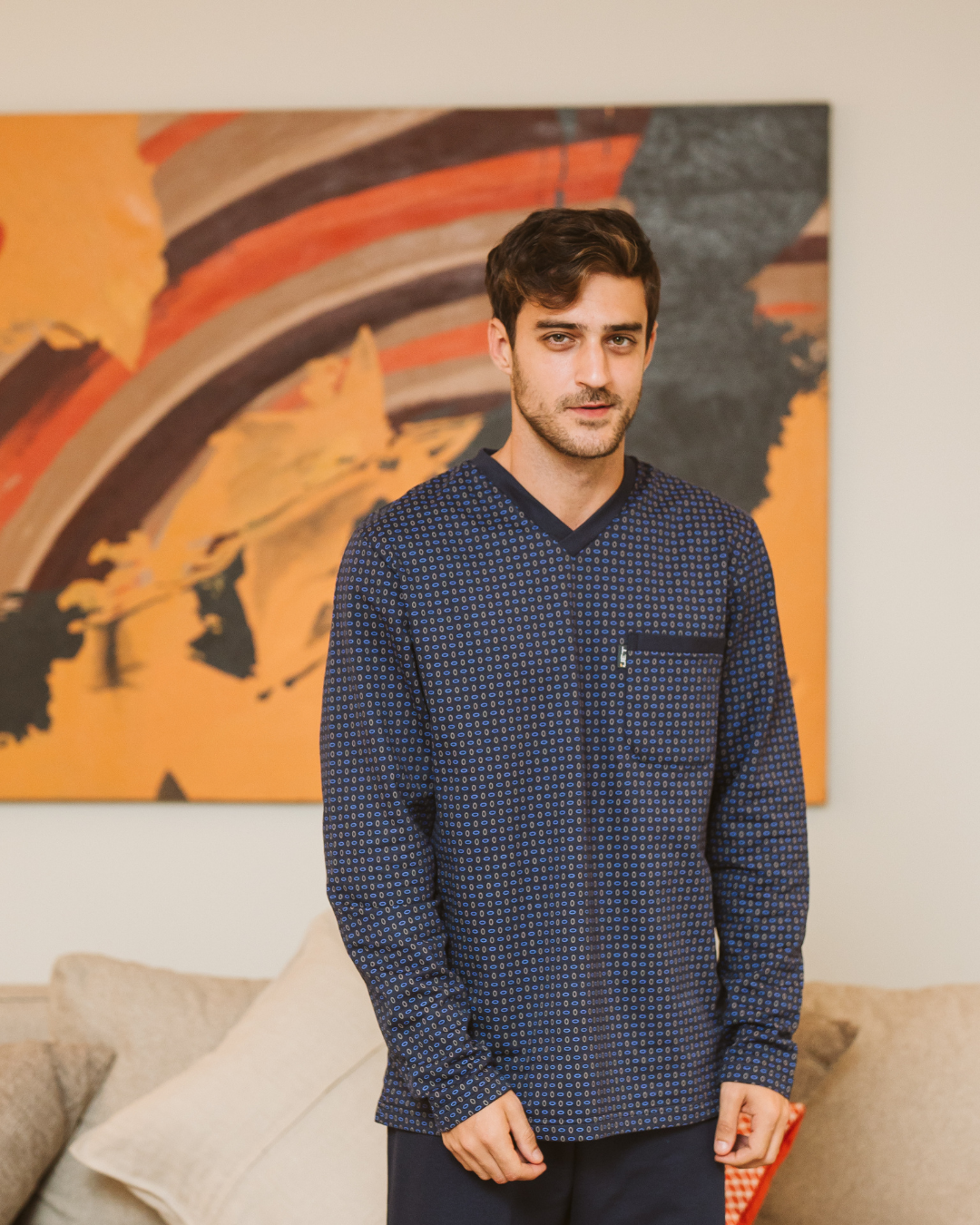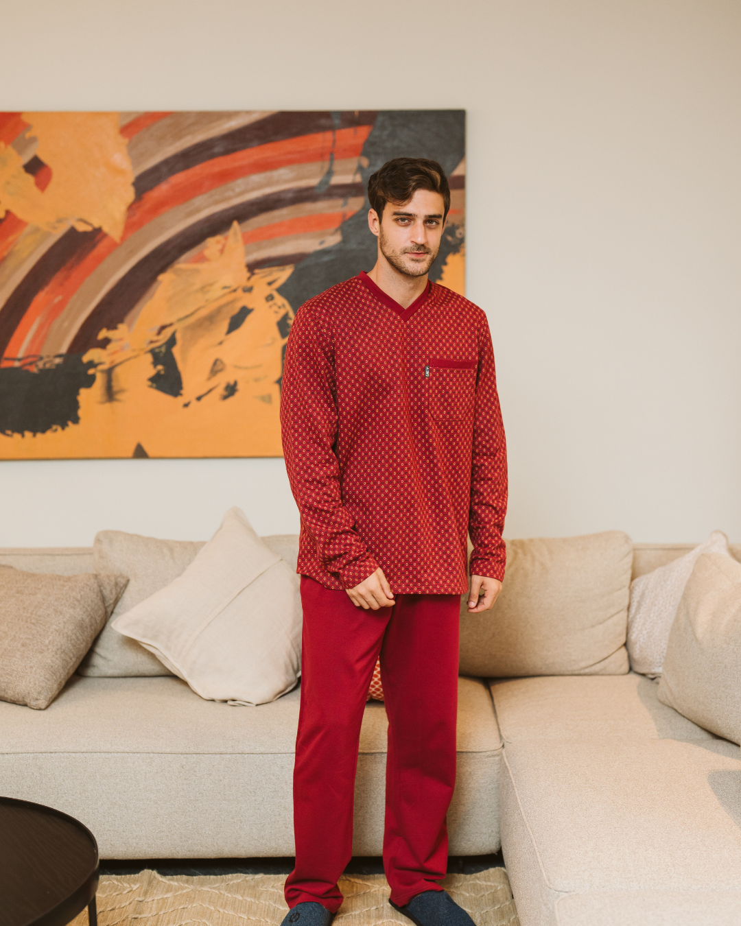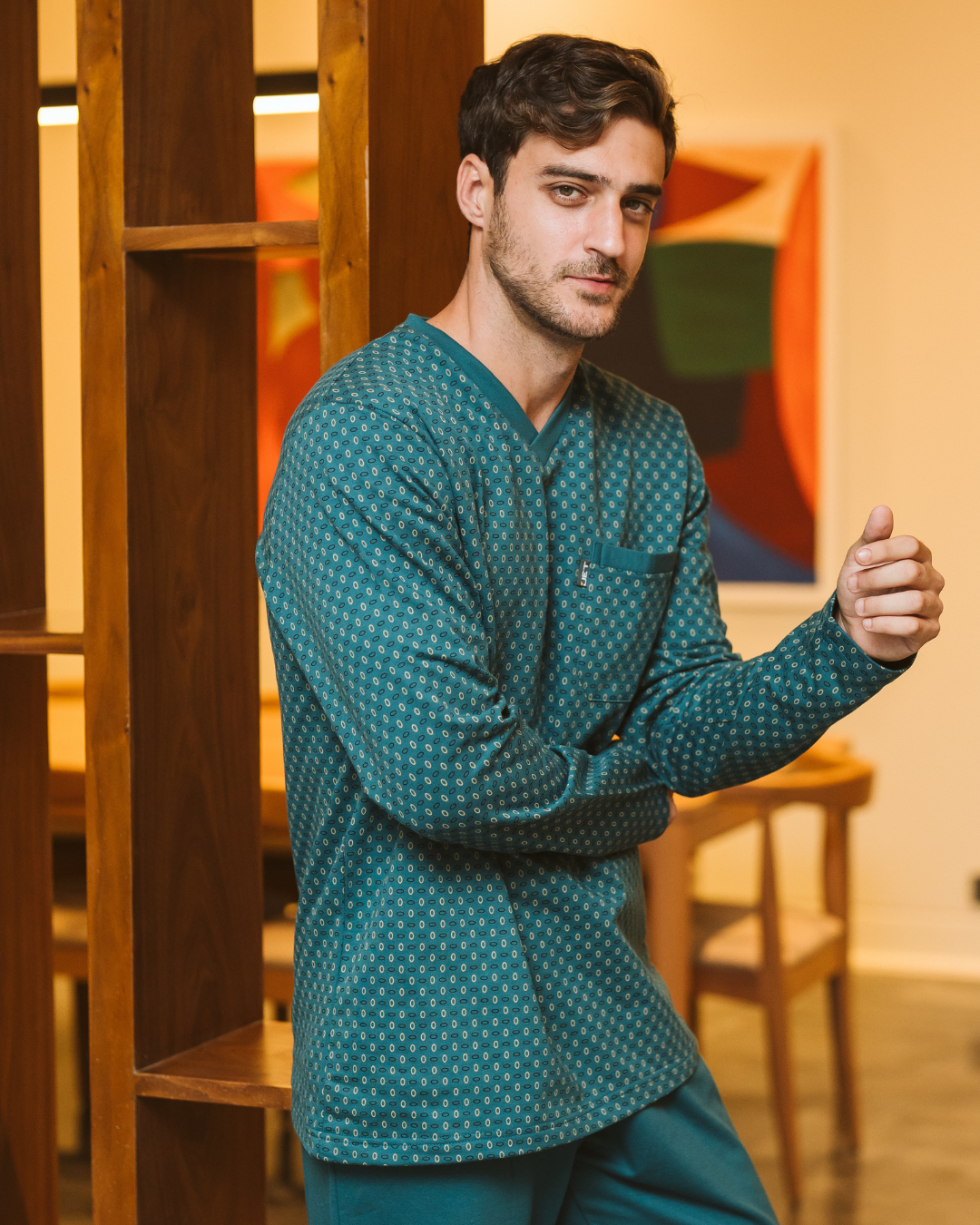 بيجاما رجالى مصبوغ مطبوع * سادة ، جاكيت مصبوغ مطبوع كم طويل مع رقبة