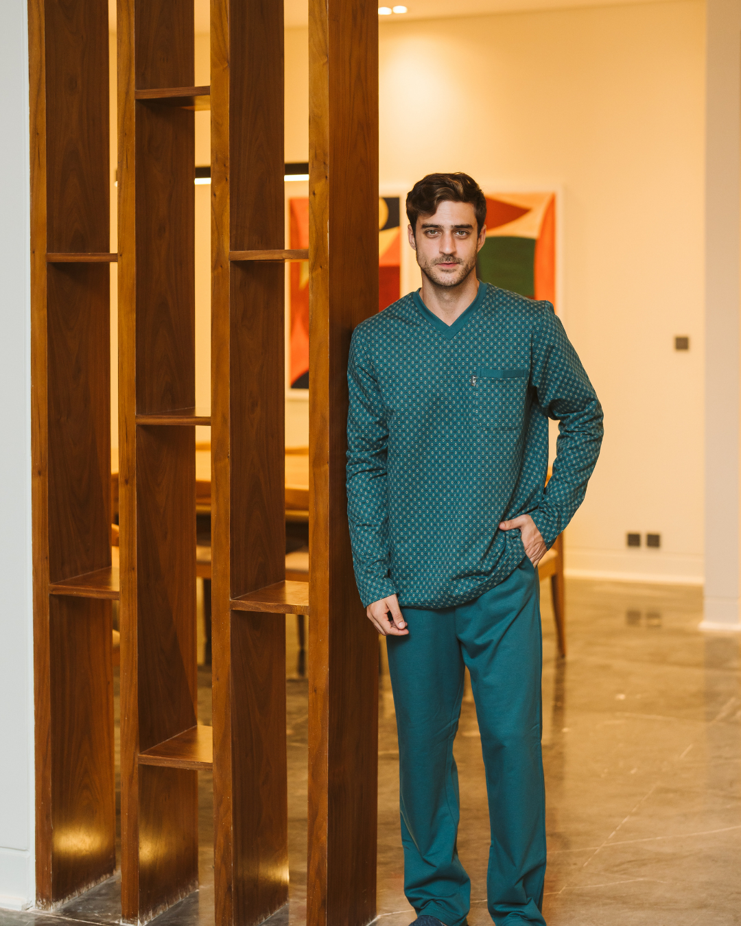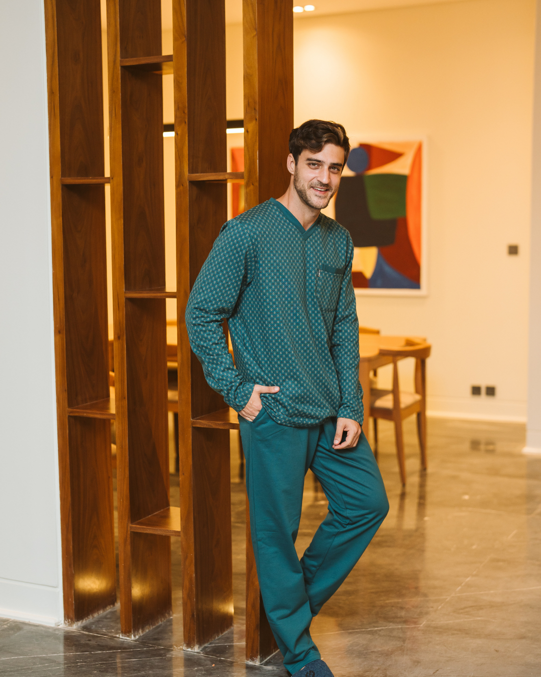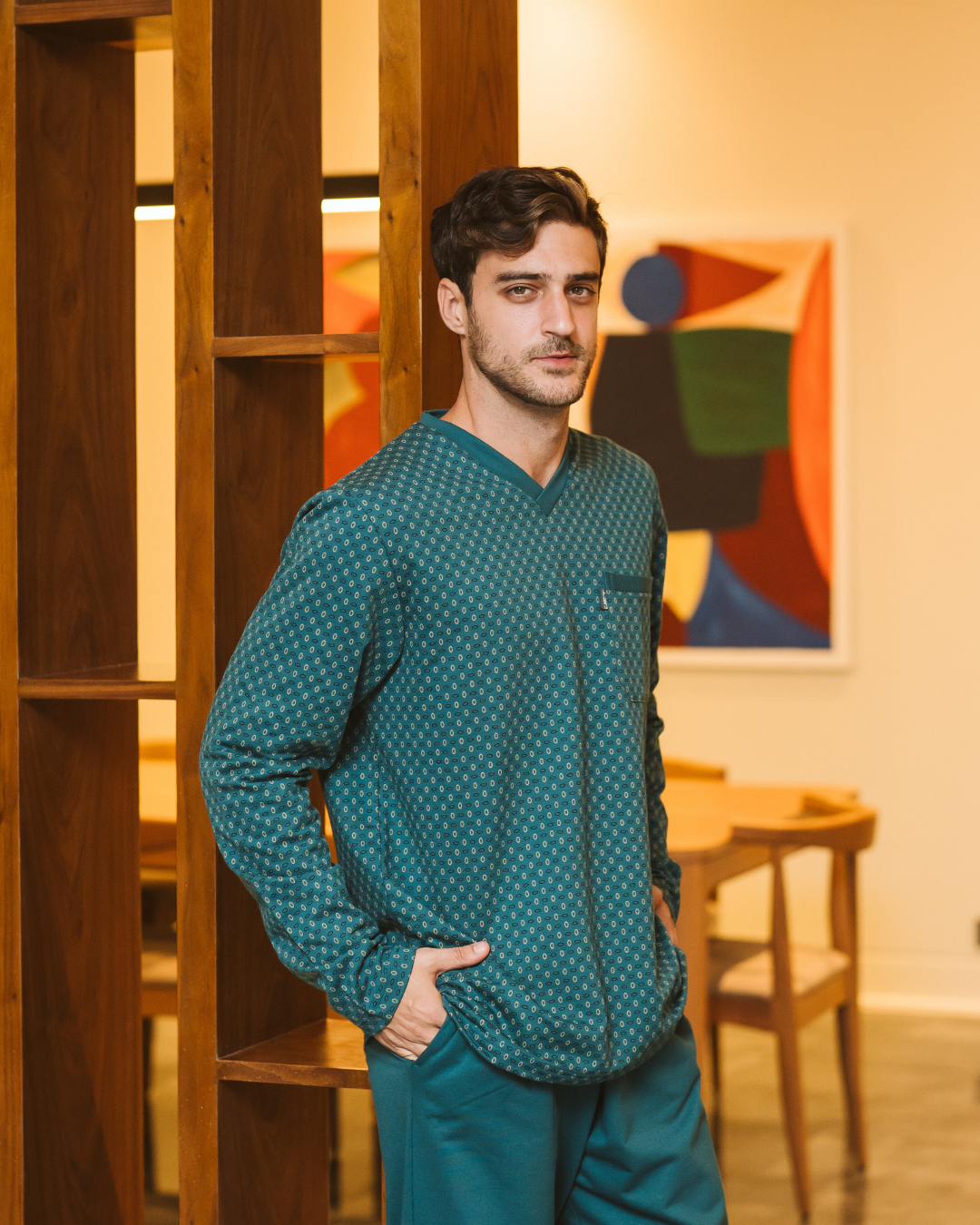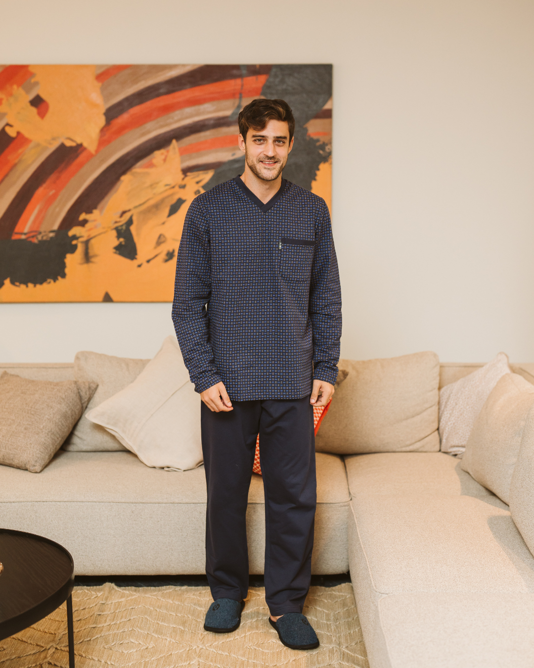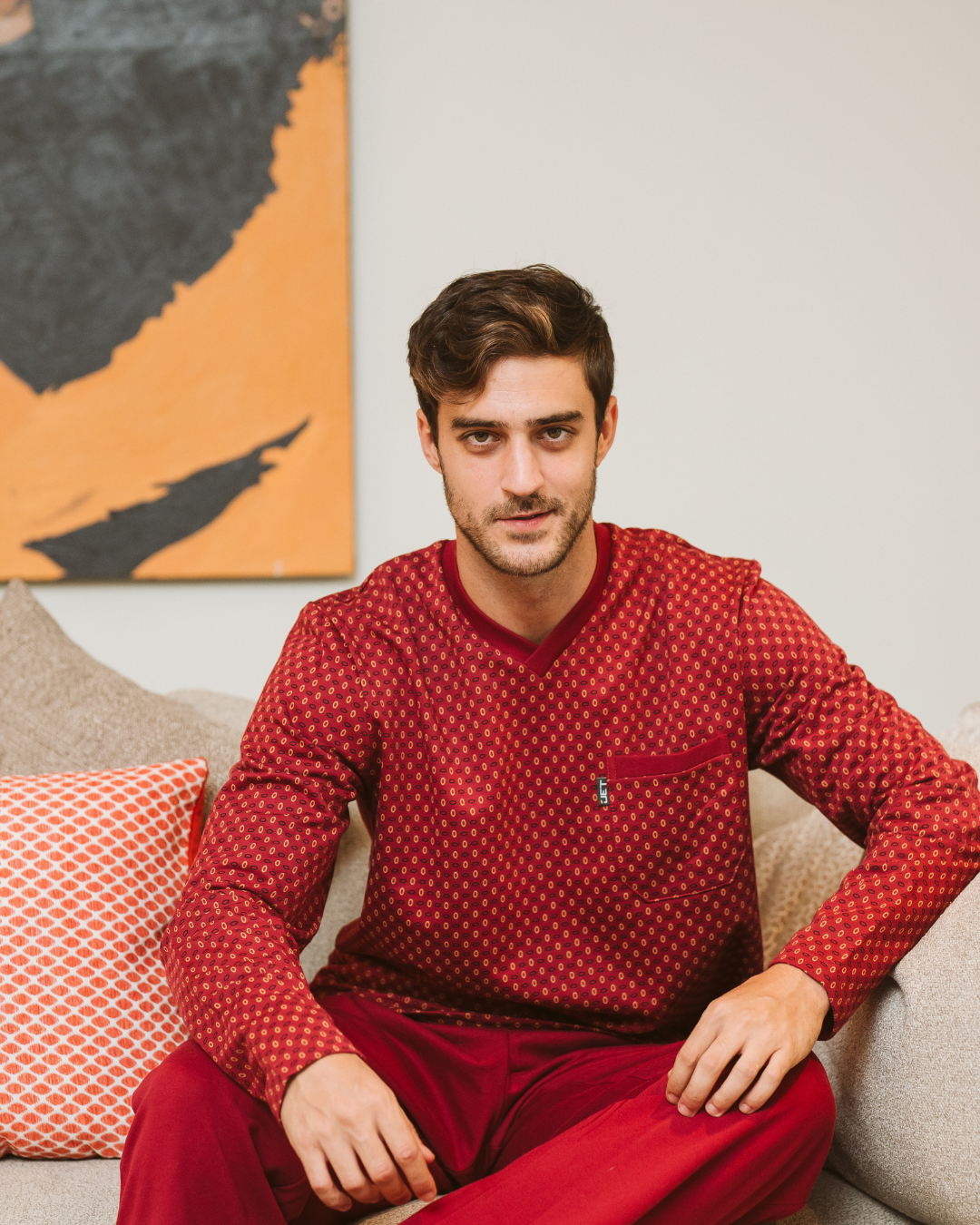 بيجاما رجالى مصبوغ مطبوع * سادة ، جاكيت مصبوغ مطبوع كم طويل مع رقبة