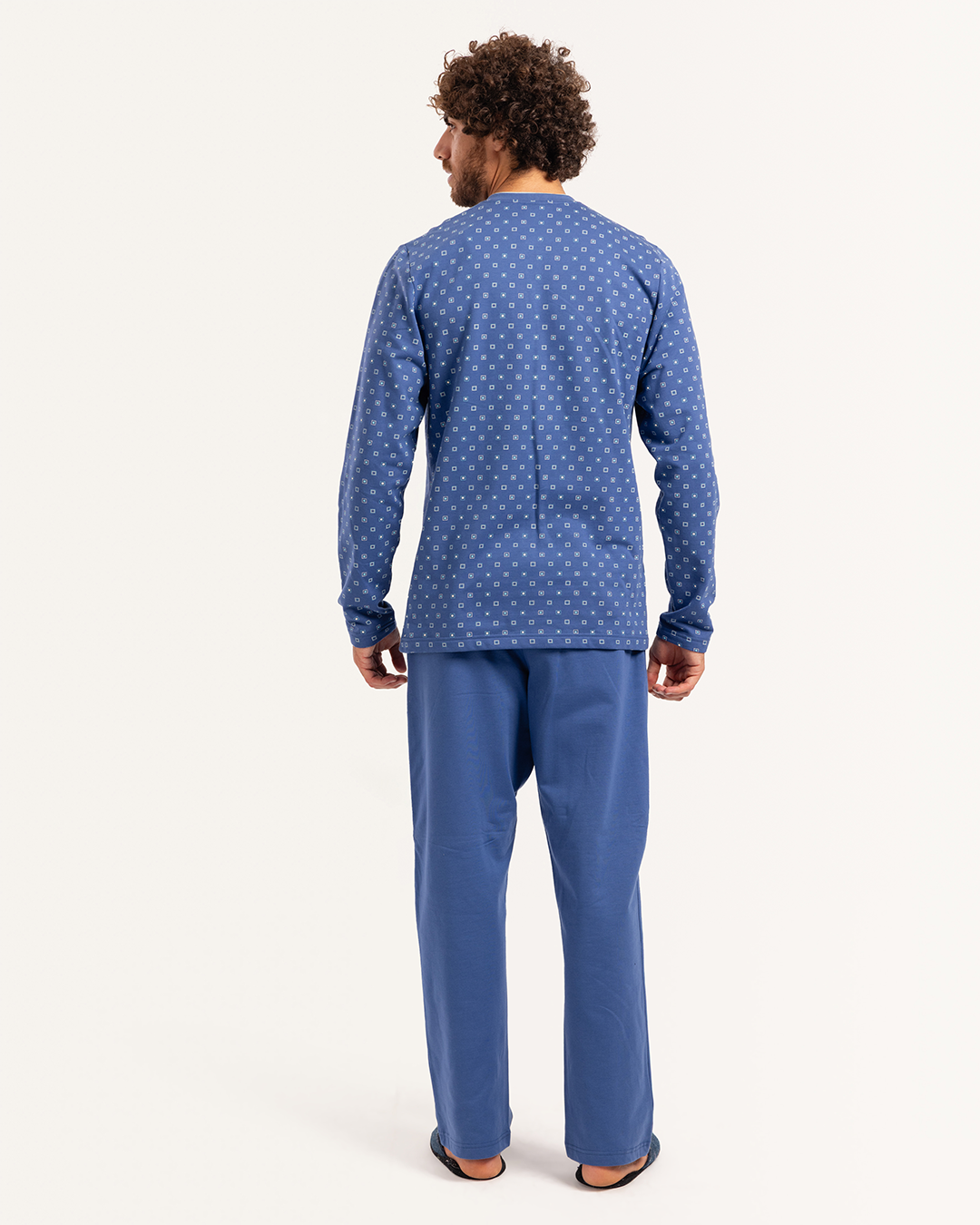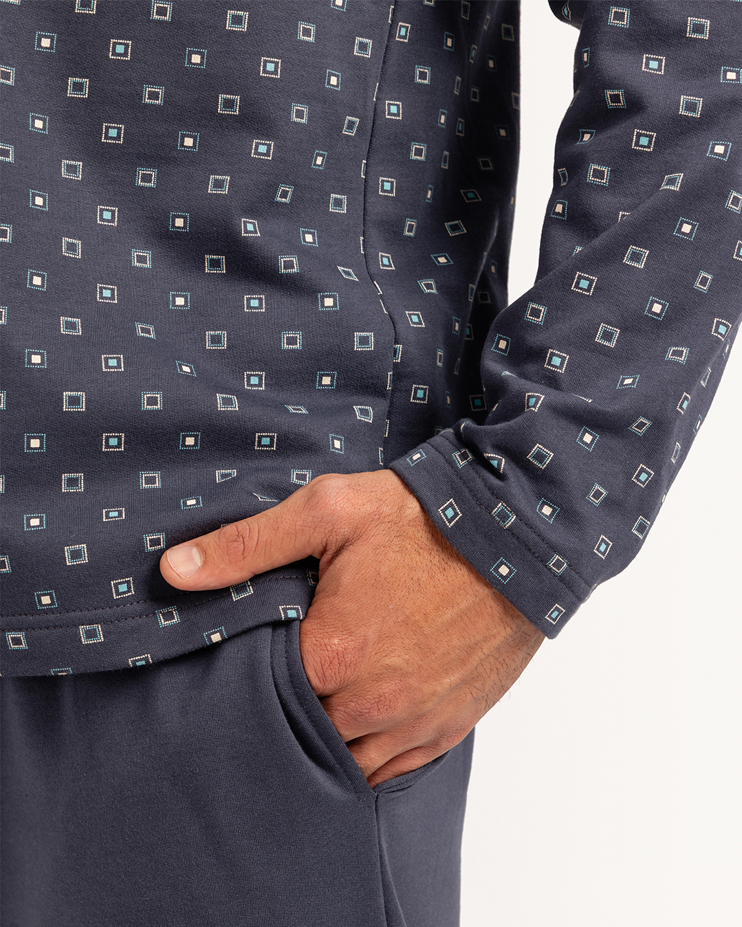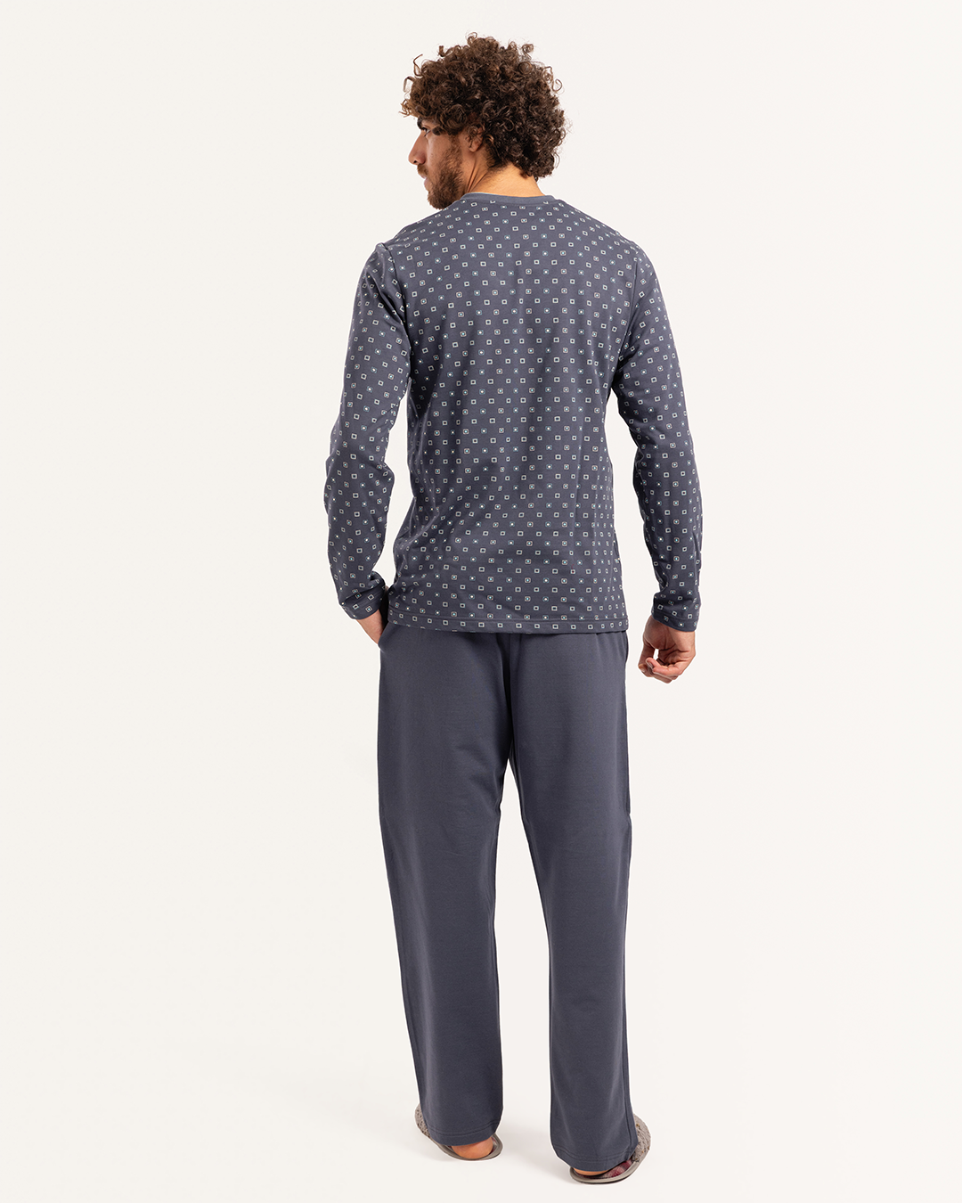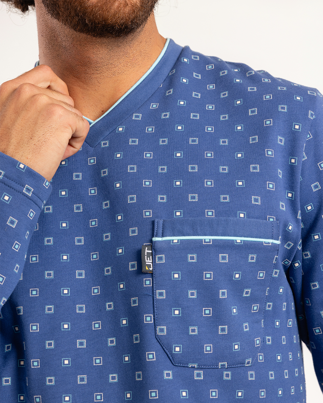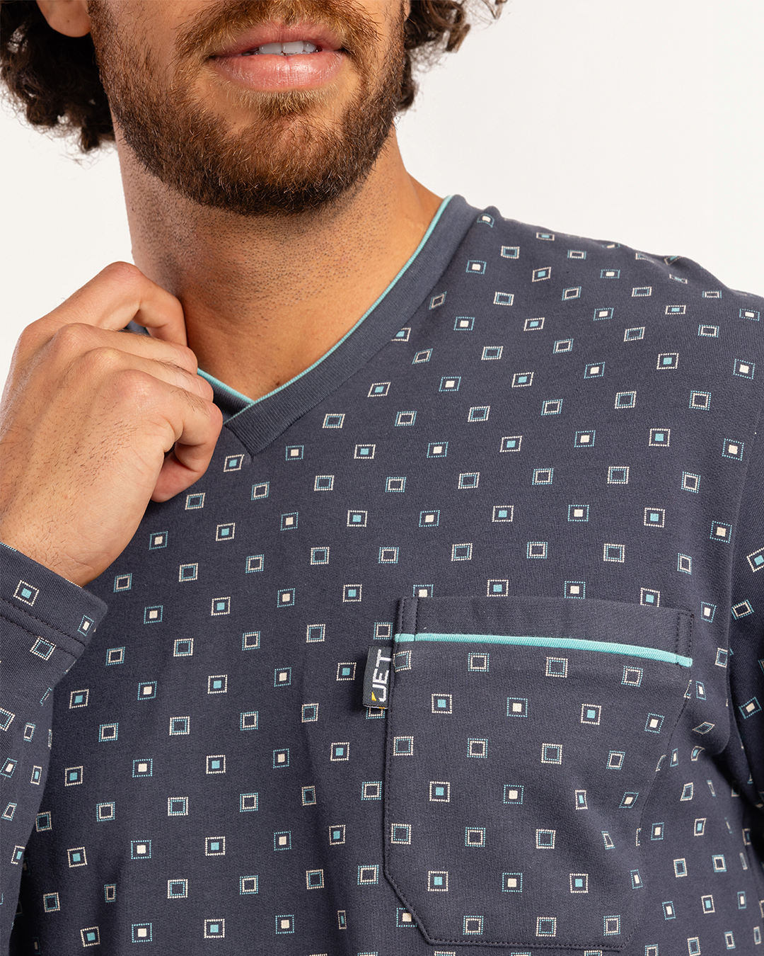 بيجاما رجالى ميلتون  توب مطبوع  رقبه V جيب على الصدر مع بنطلون سادة