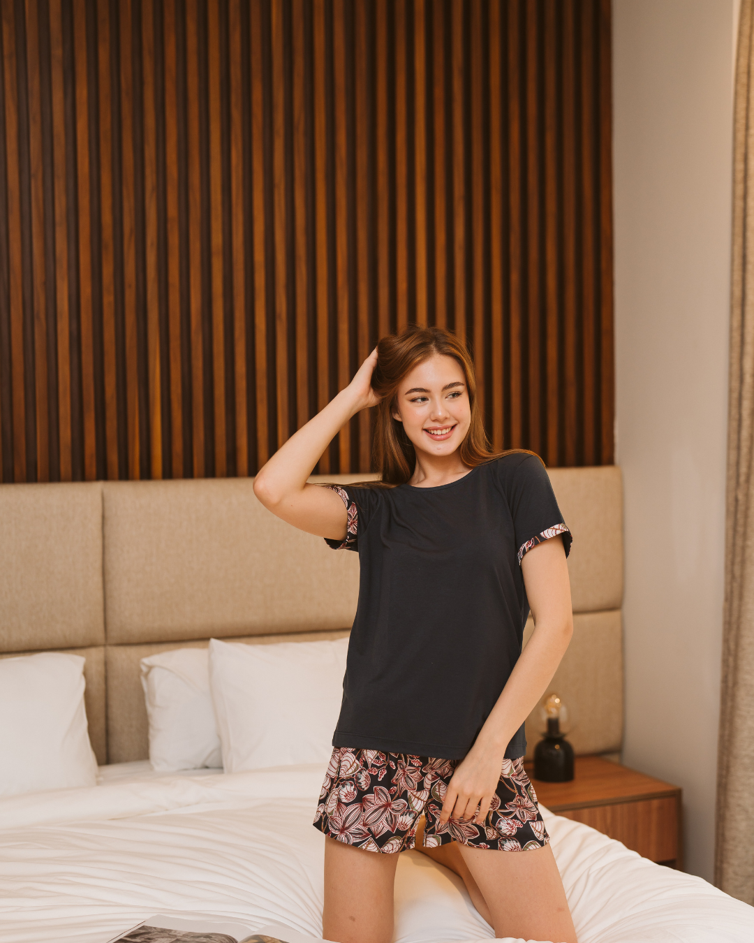 بيجامة شورت ستان مطبوع
