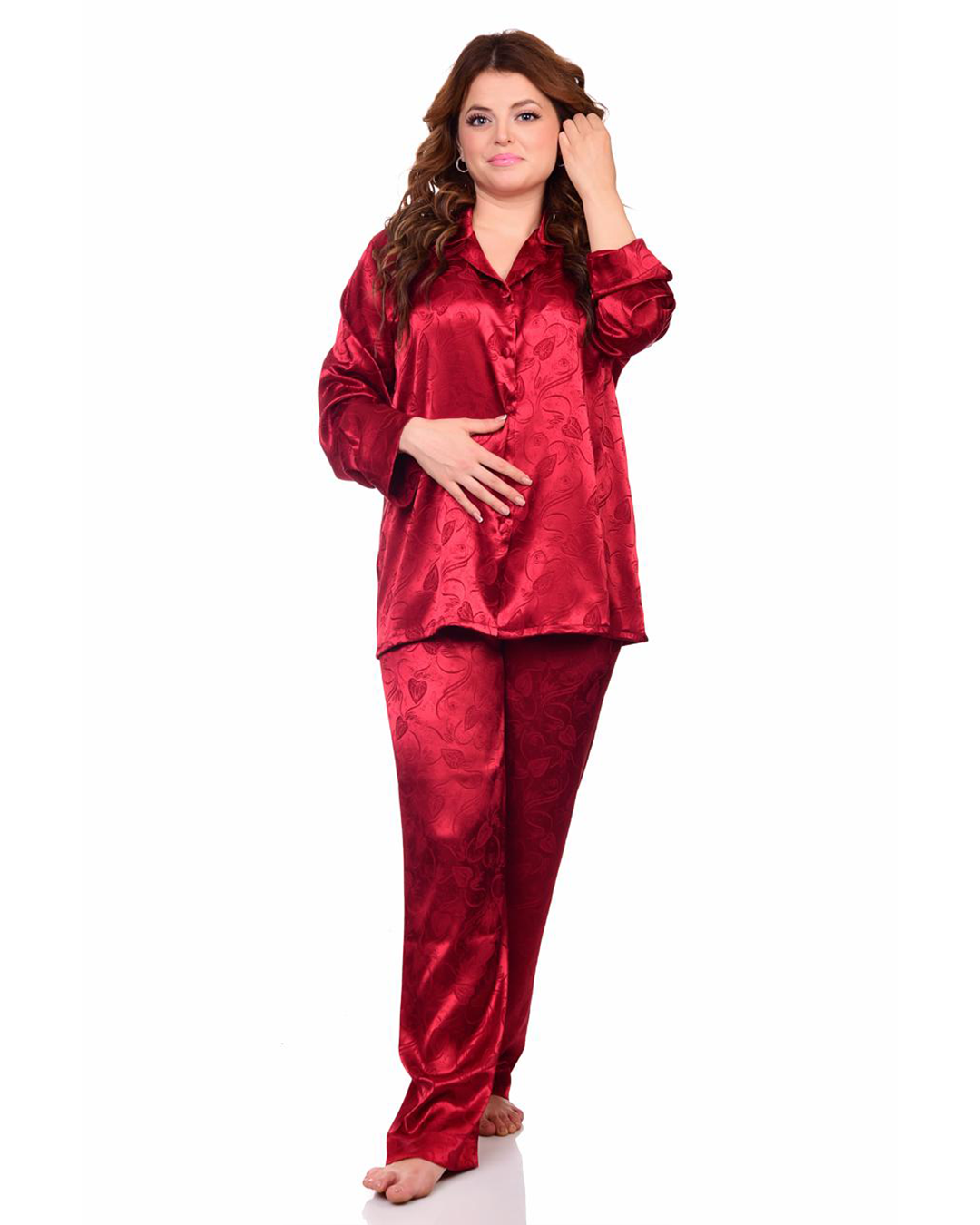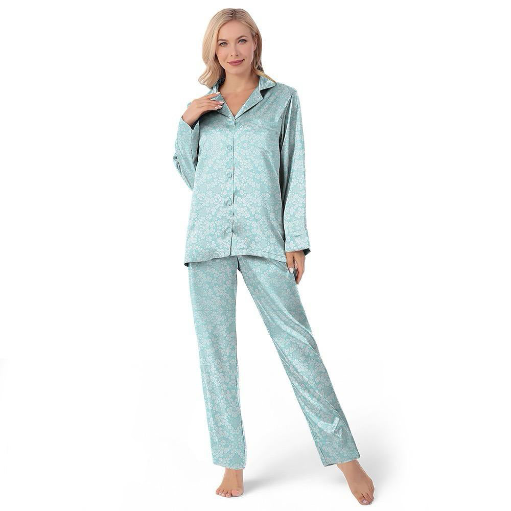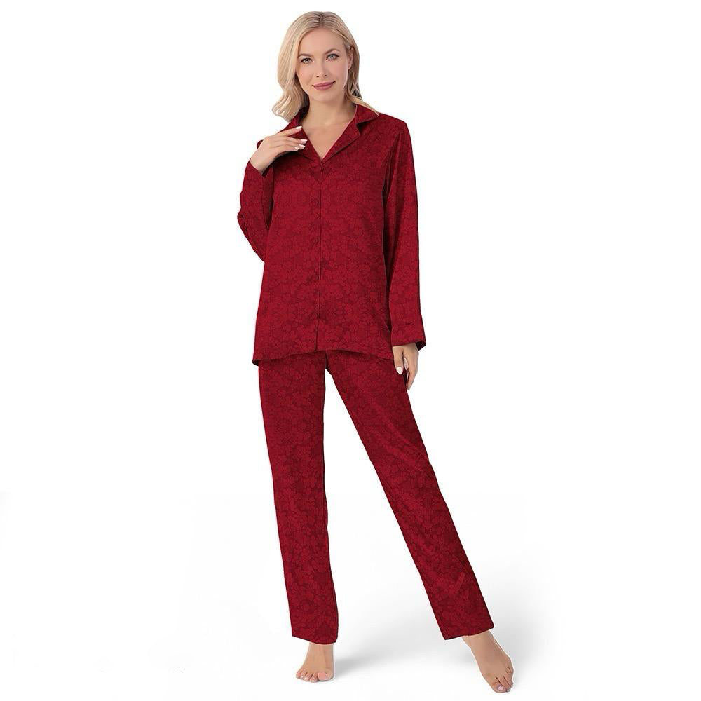 بيجامه حريمي ستان كلاسيك مشجرة بزراير