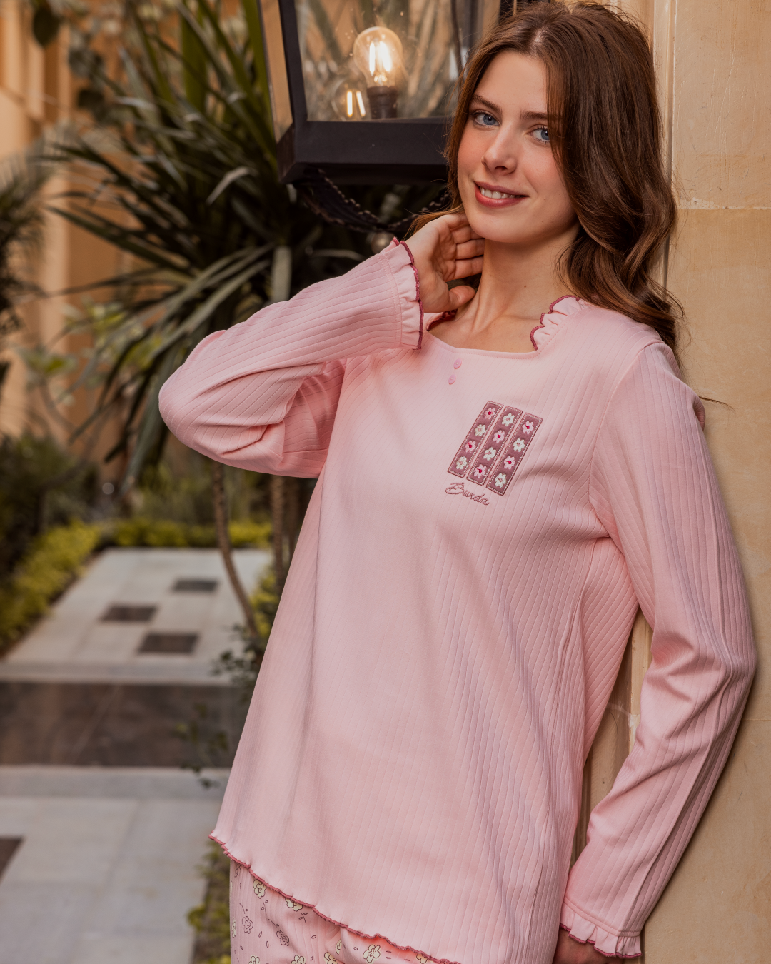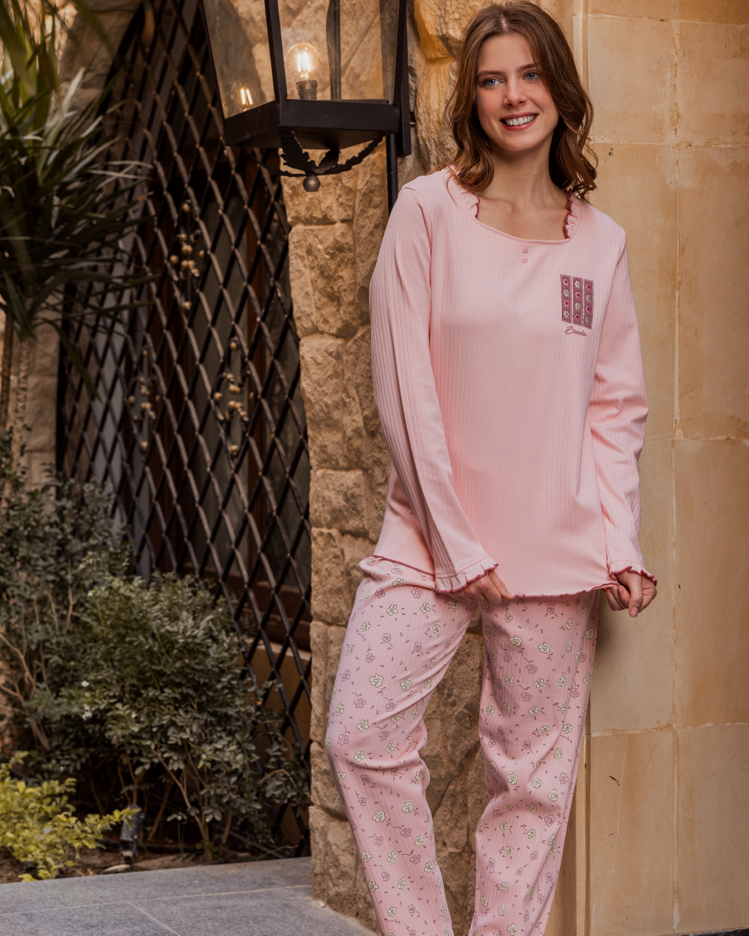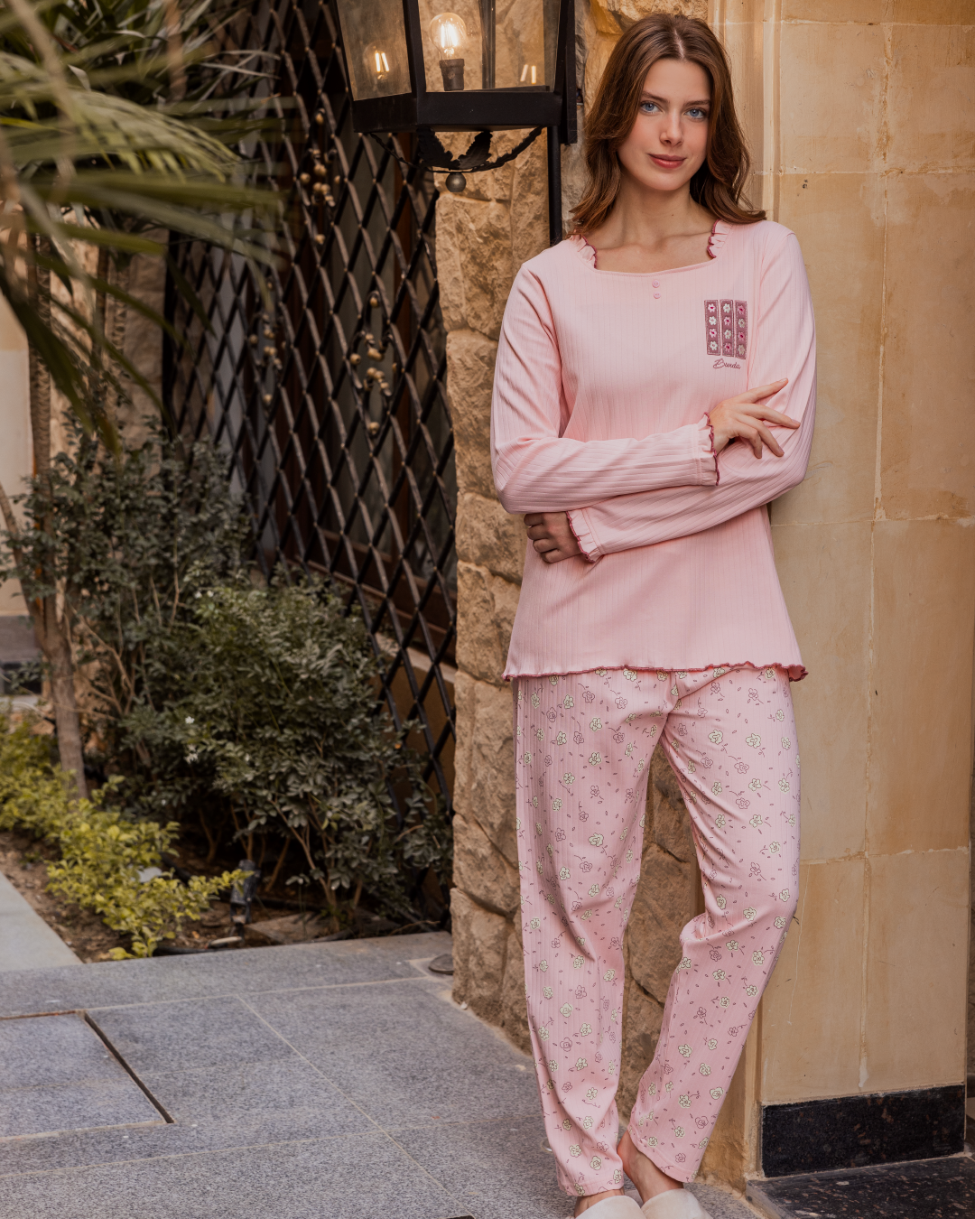 بيجامه حريمي كم طويل بنطلون طويل مضلع