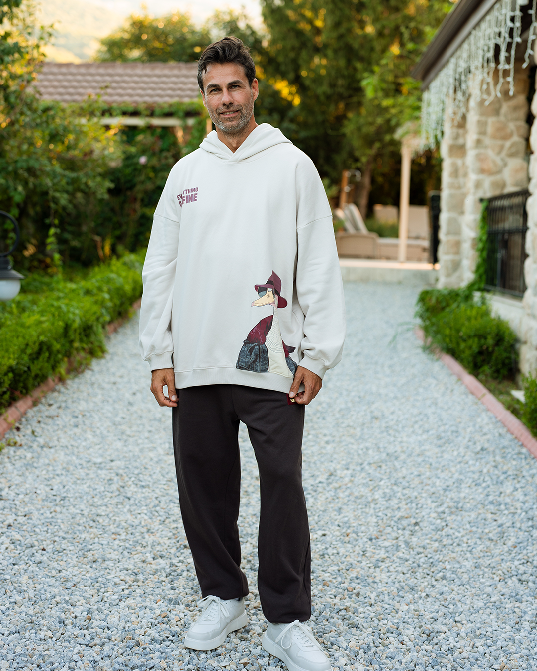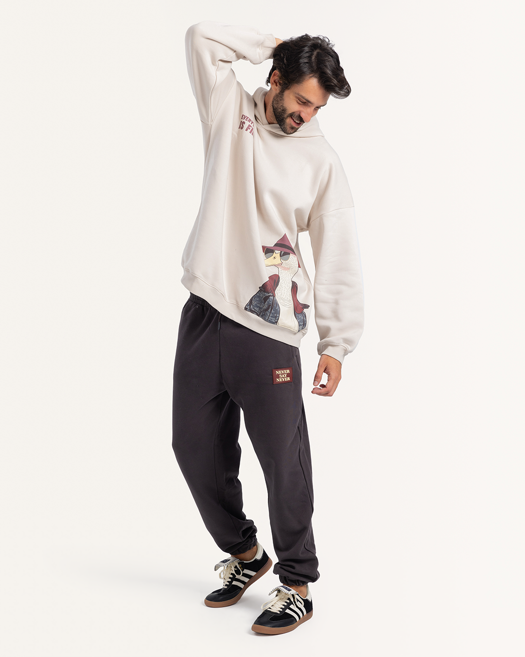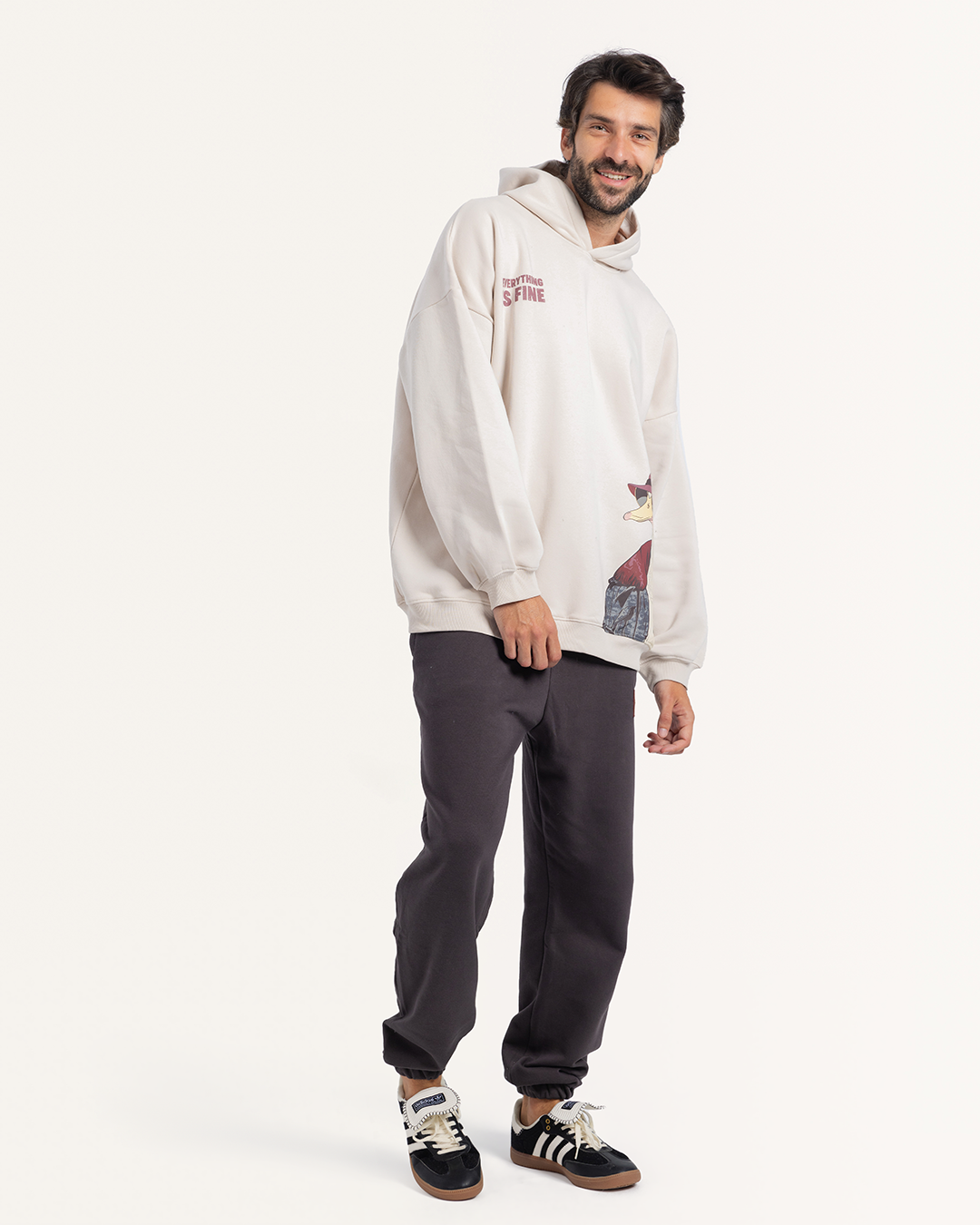 طقم سويت شيرت بكابيشون و طباعه على الصدر