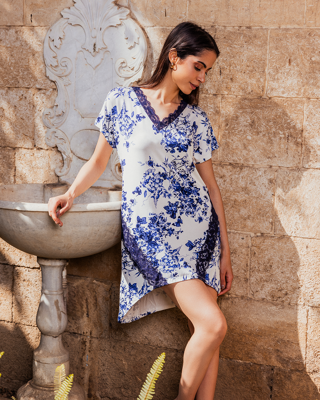 قميص حريمي  وردة زهري سبعة وقصة دانتيل لطش من تحت