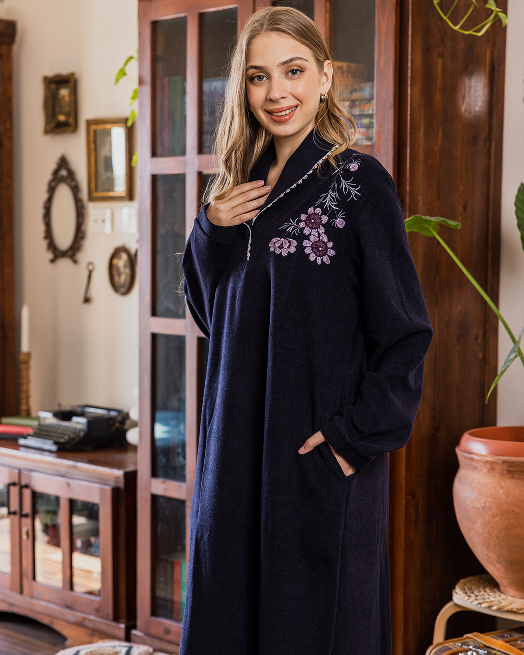 قميص نوم حريمي كاشمير كولشال بجبير مطرز عباد الشمس علي اكتف