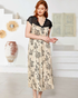 نايت شيرت حريمي طويل مشجر نص كم بصدر دانتيل