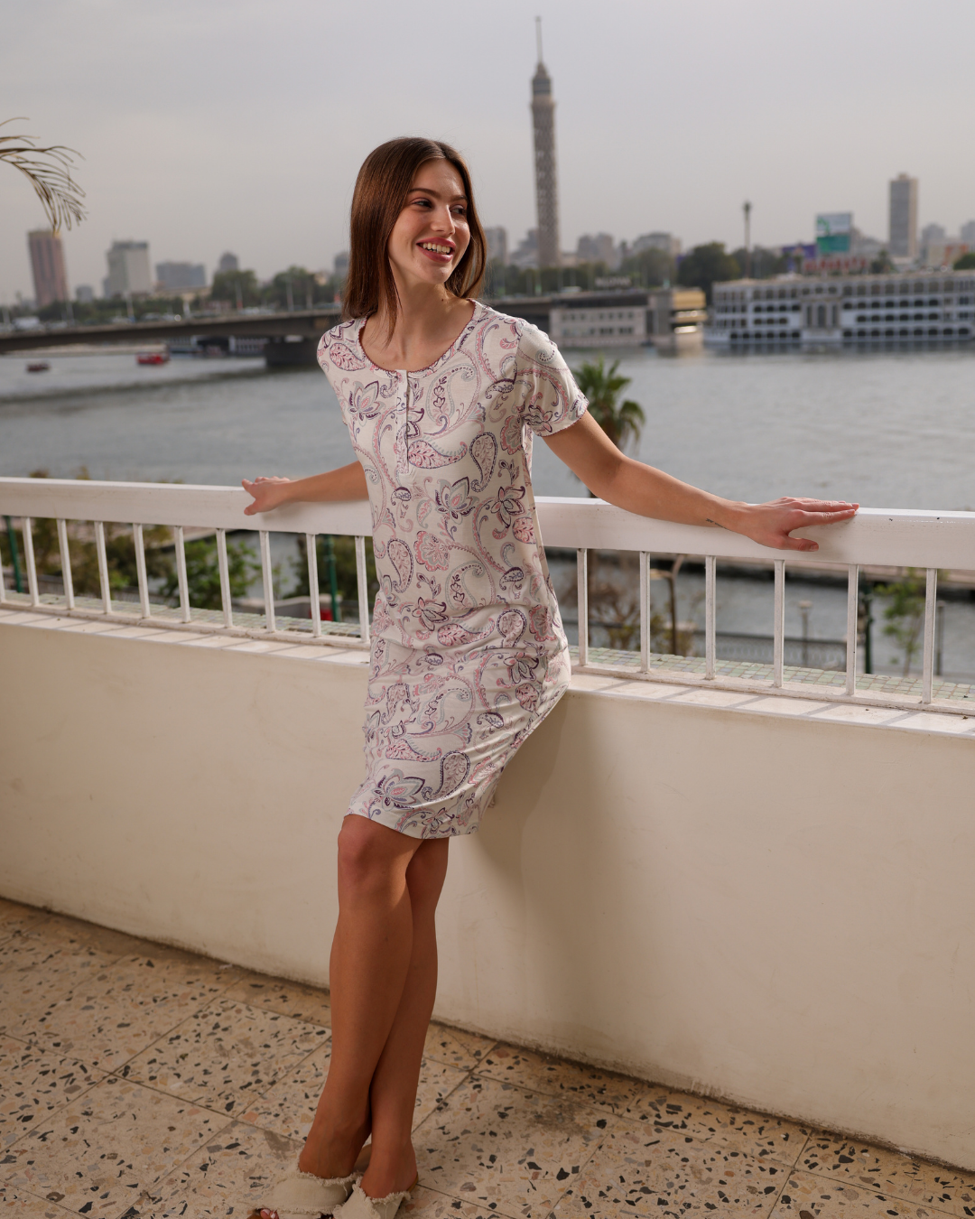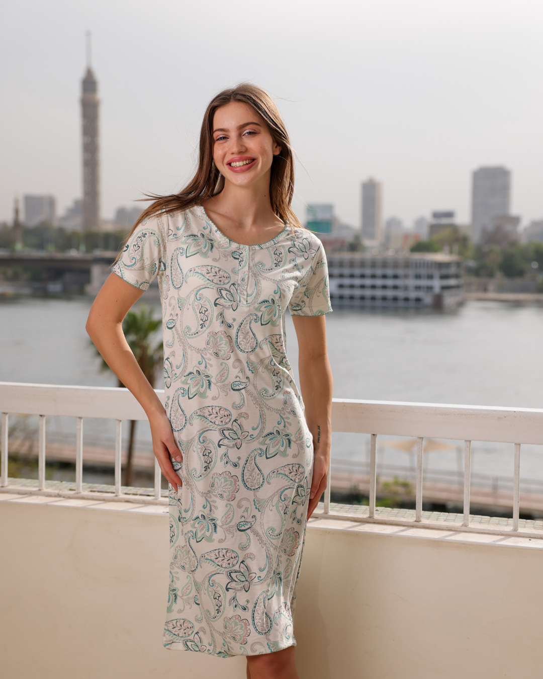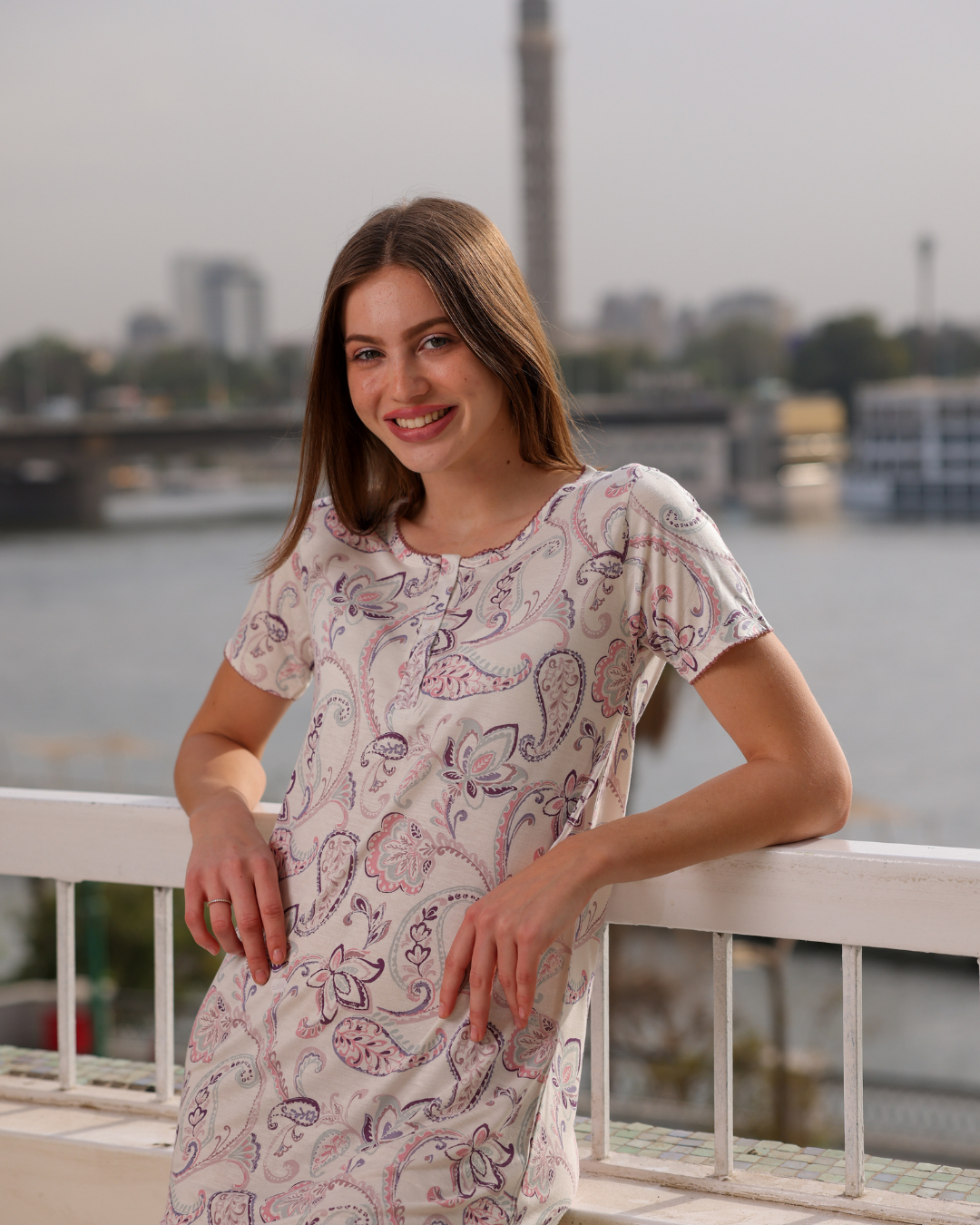 نايت شيرت حريمي نص كم قصير راوند مطبوع