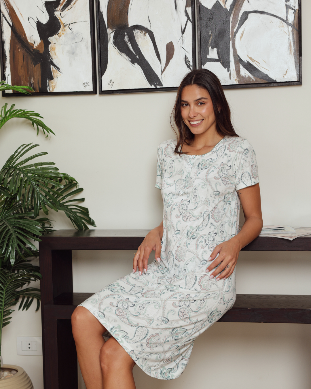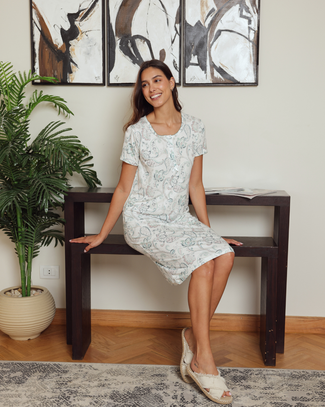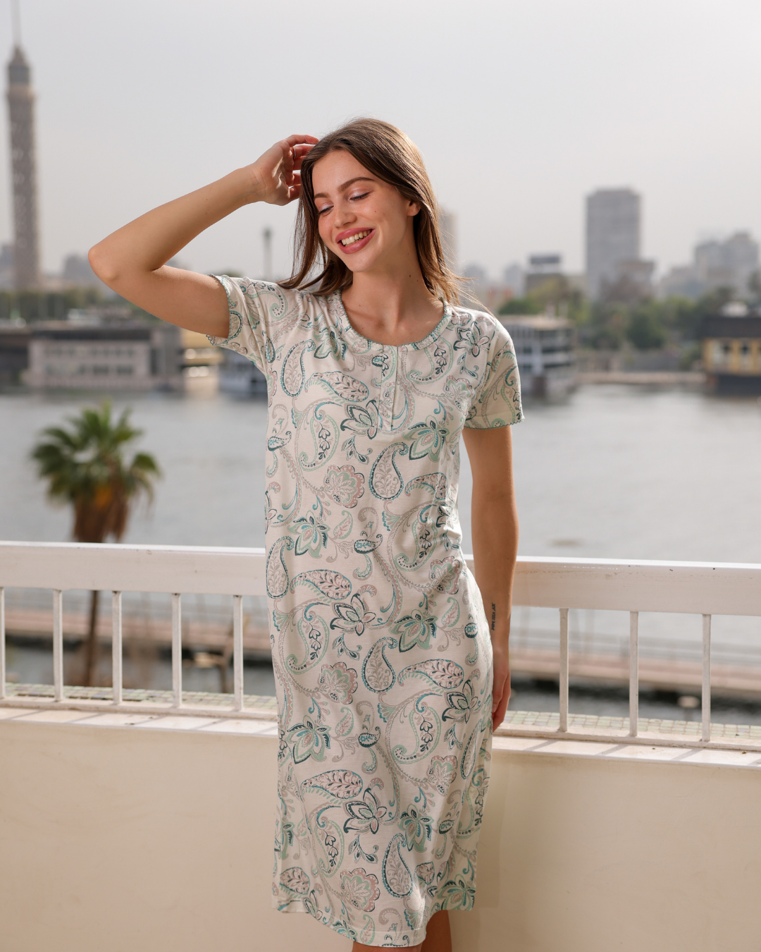 نايت شيرت حريمي نص كم قصير راوند مطبوع