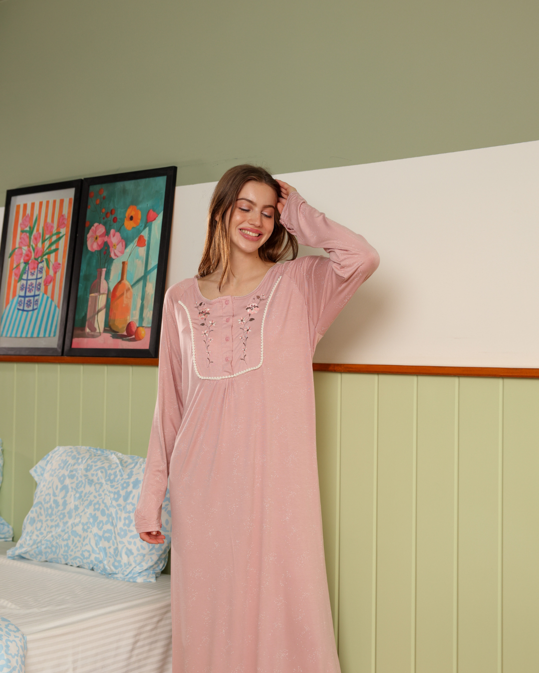 نايت شيرت طويلة  كم طويل طباعة منقط