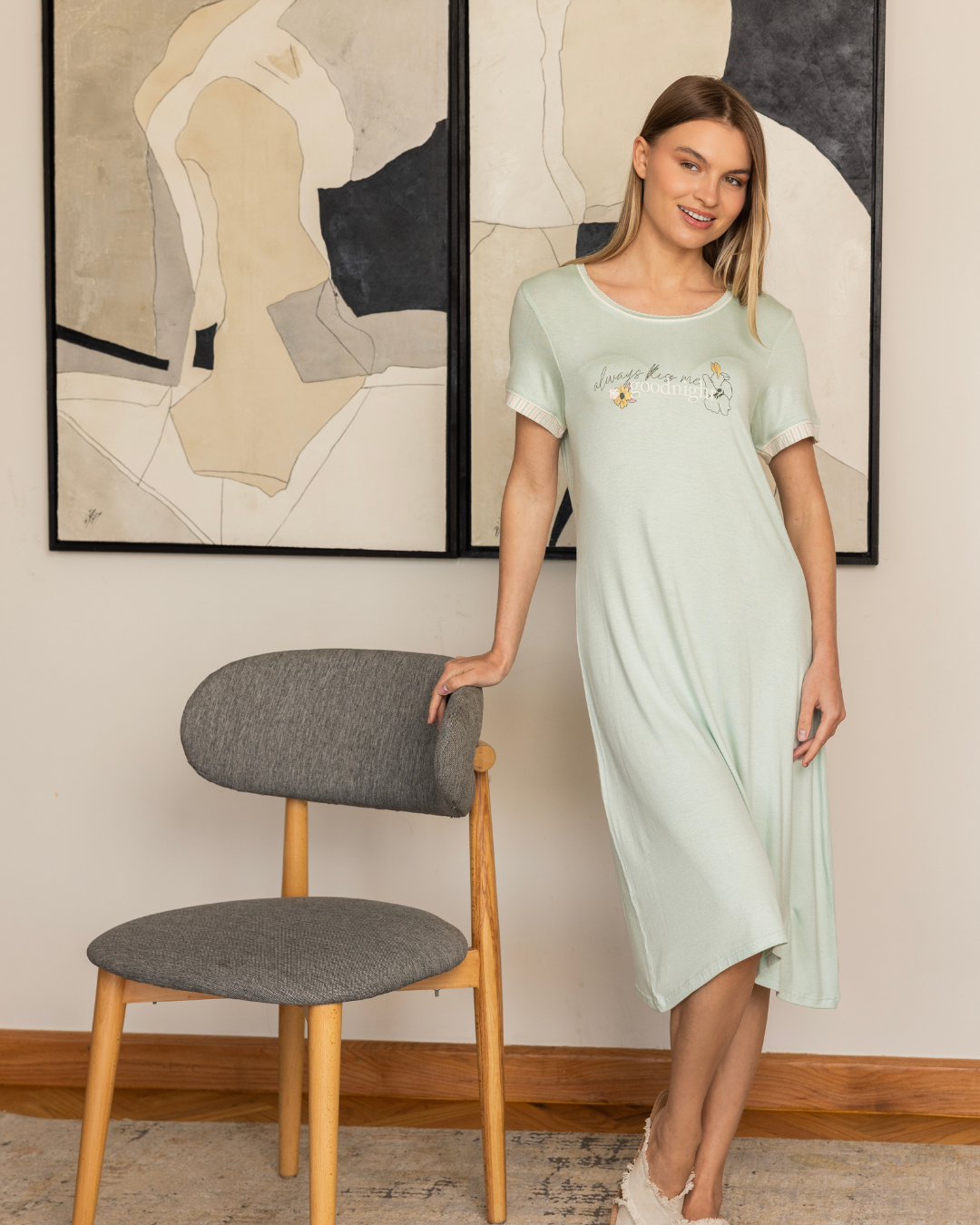 نايت شيرت قصيرة نصف كم طباعة وردة كبيرة