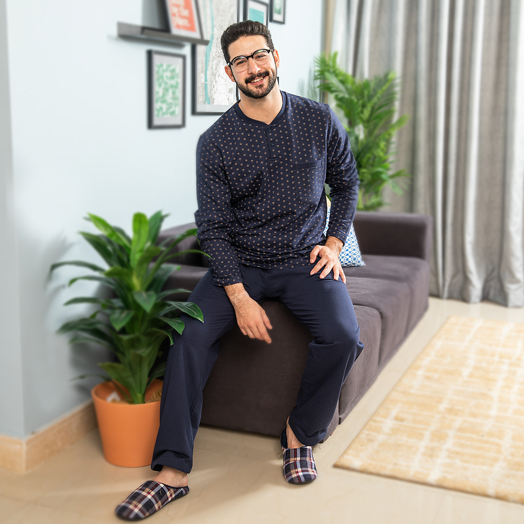 بيجاما رجالي مطبوع تاج بزراير