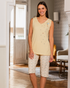 بيجامه حريمي بيرمودا مشجره تيشرت كت كتف عريض تطريز ورد