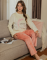 بيجامه حريمي تطريز اوف وايت بنطلون كشمير سادة