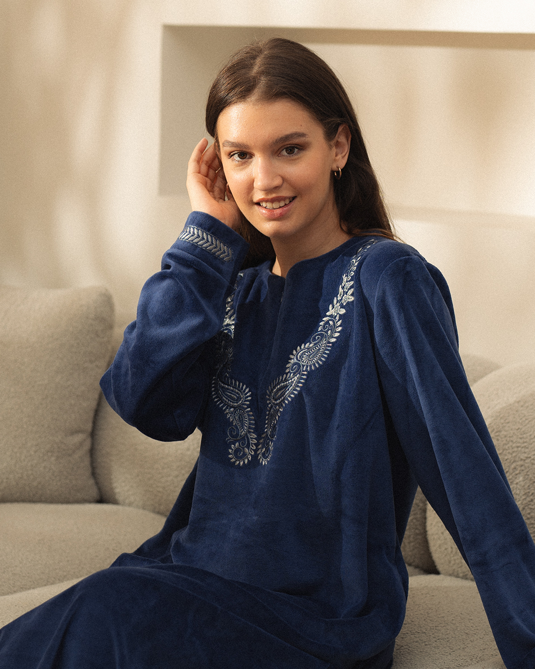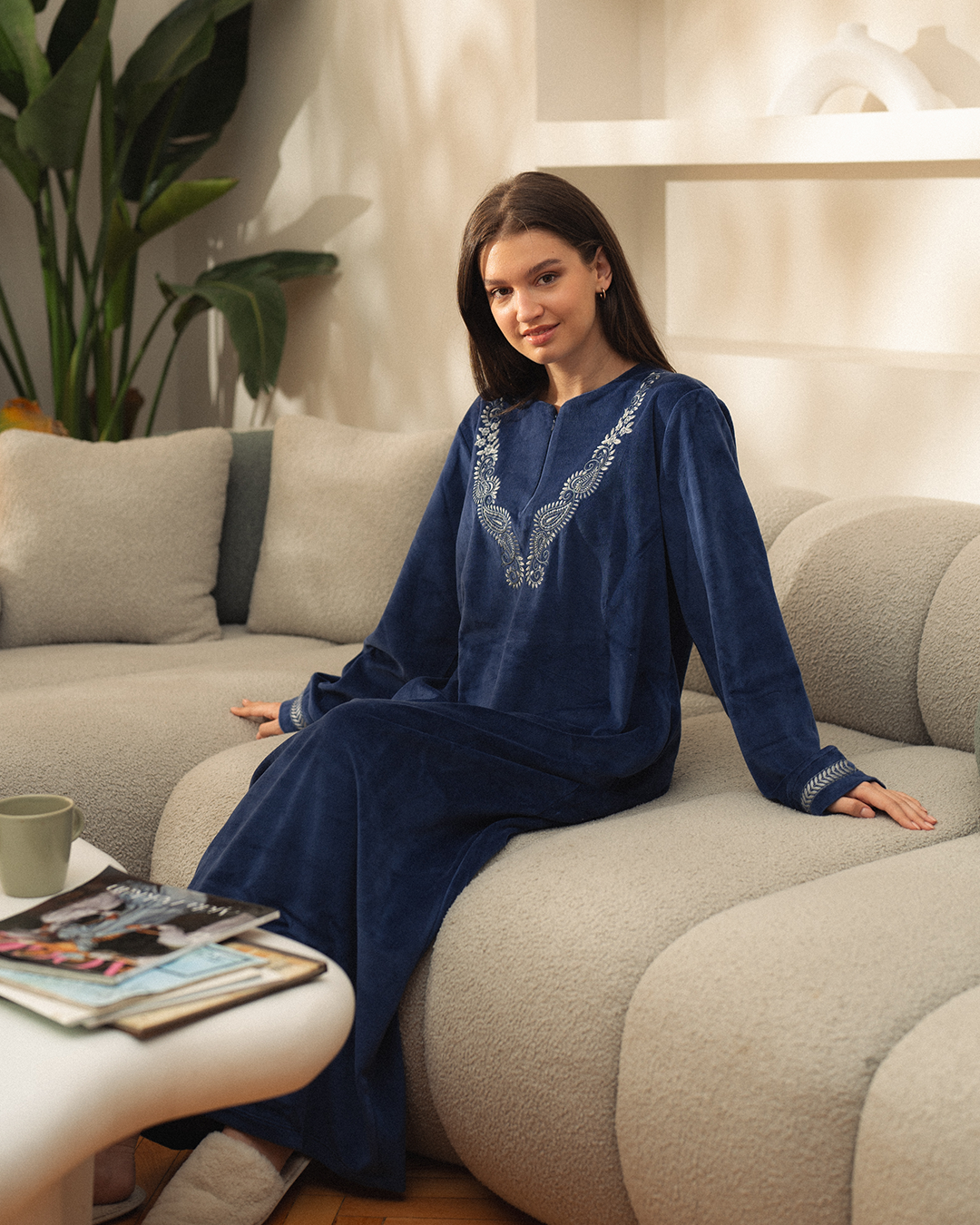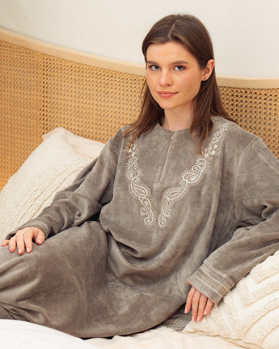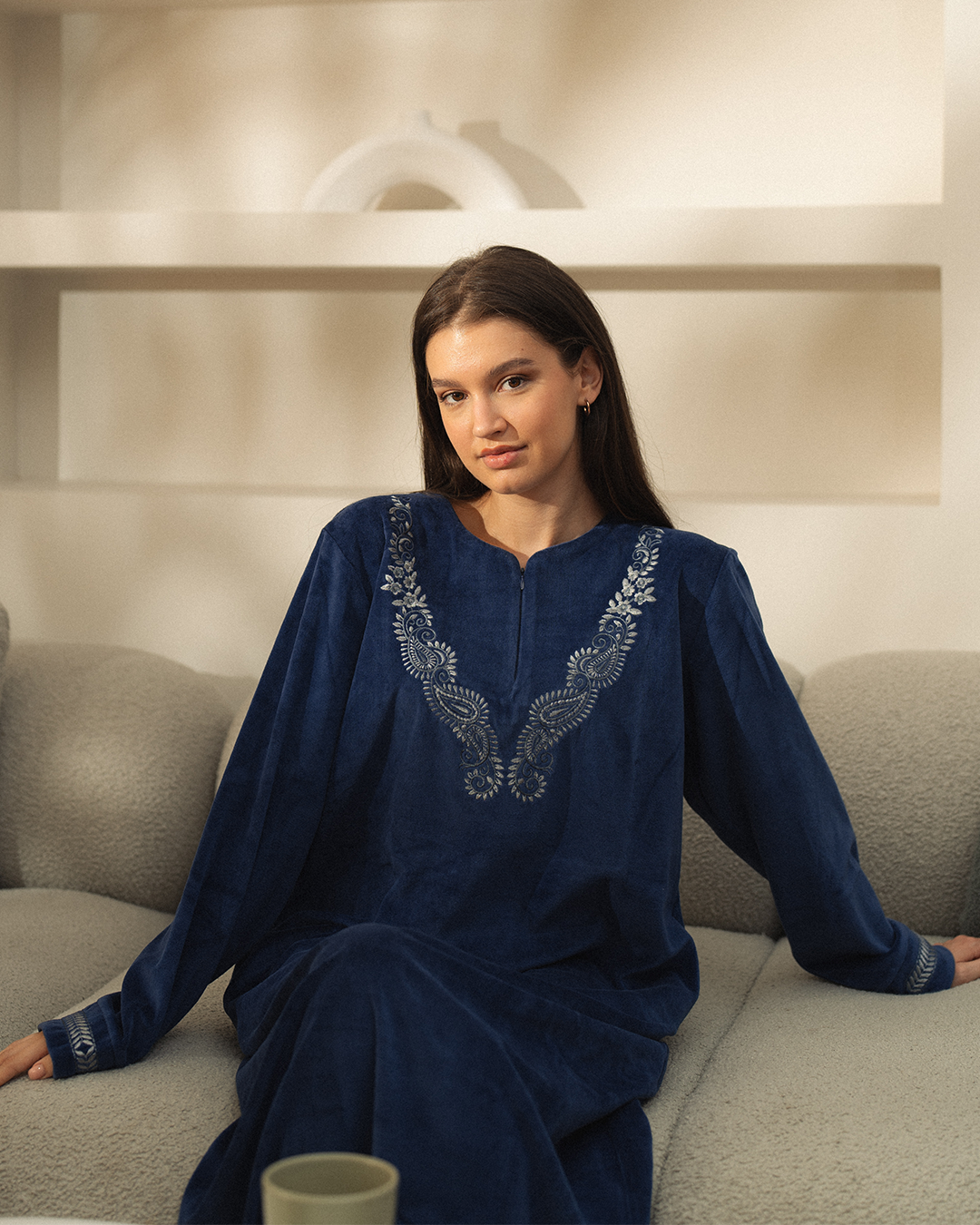 جلابية حريمي سوستة طويلة تطريز علي الصدر الكشميرة قطيفة