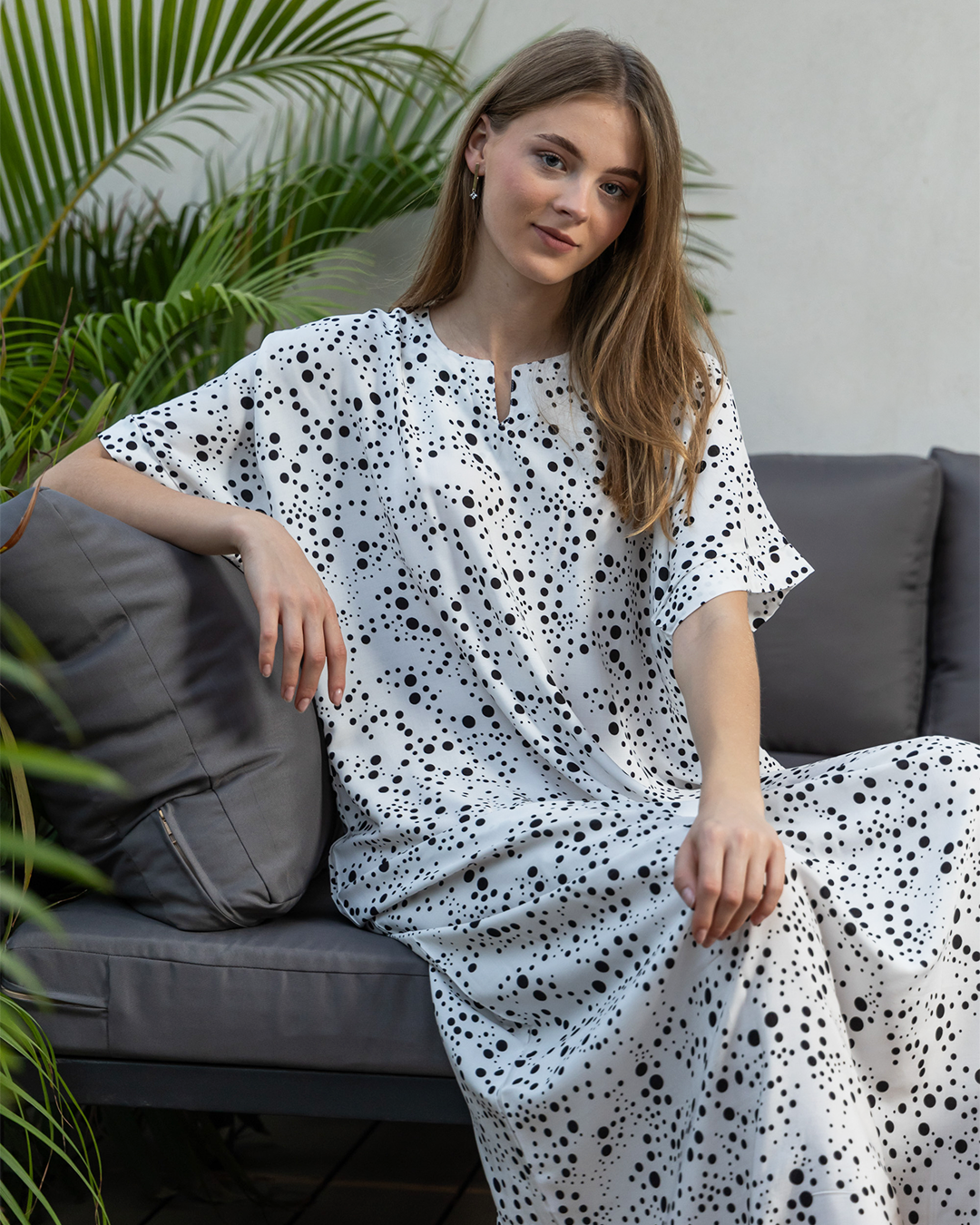 128 قميص فسكوز نص كم منقط