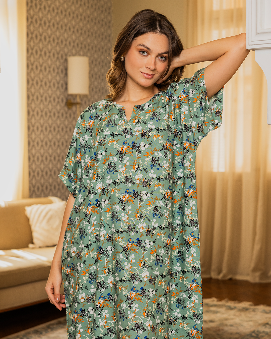 134 قميص فسكوز نص كم مشجر