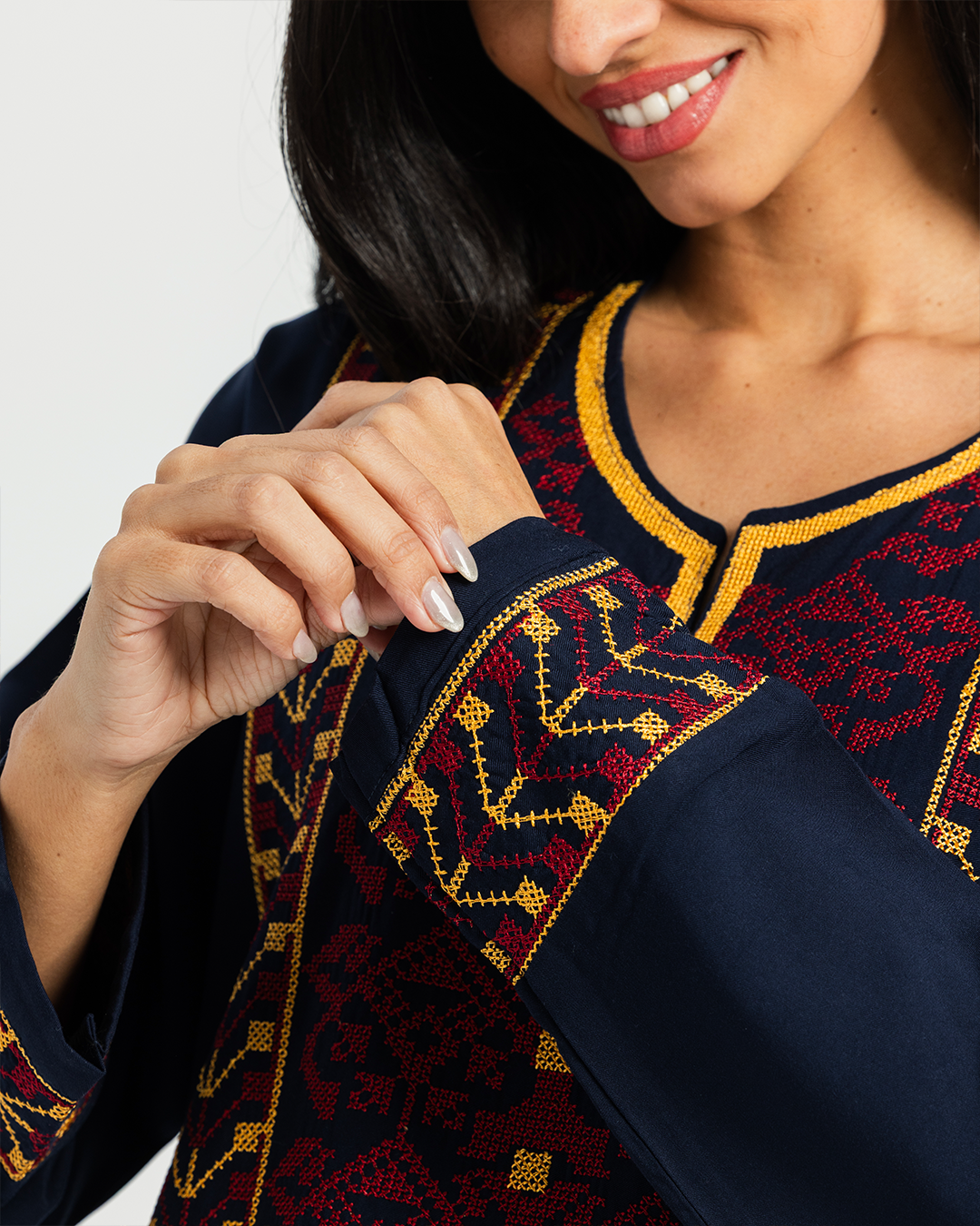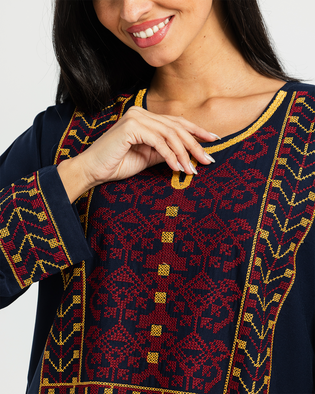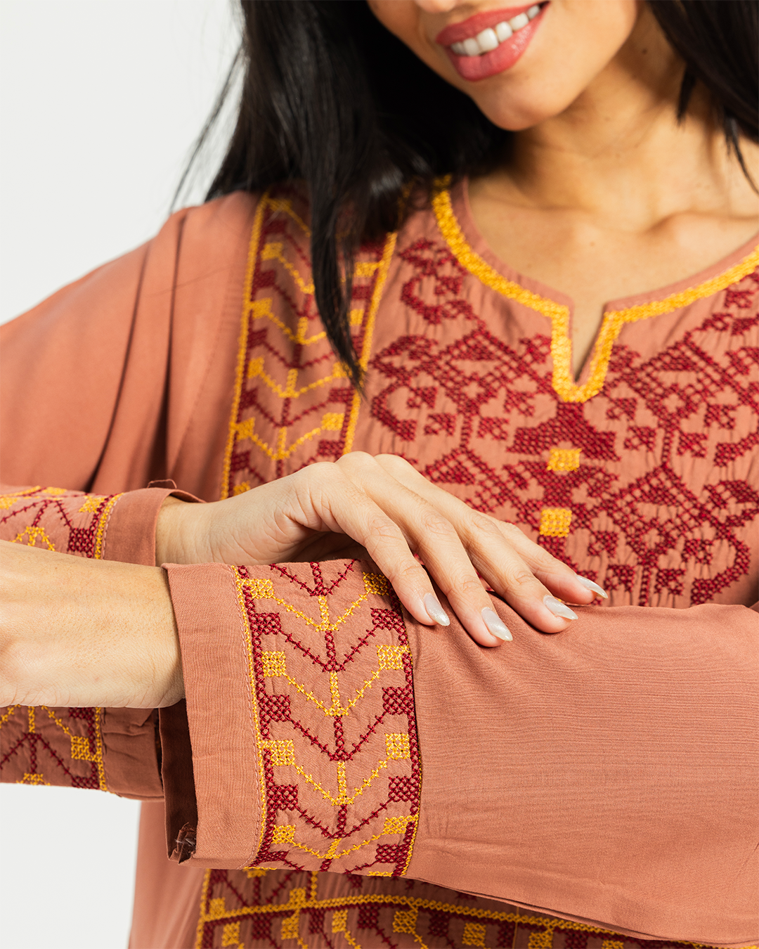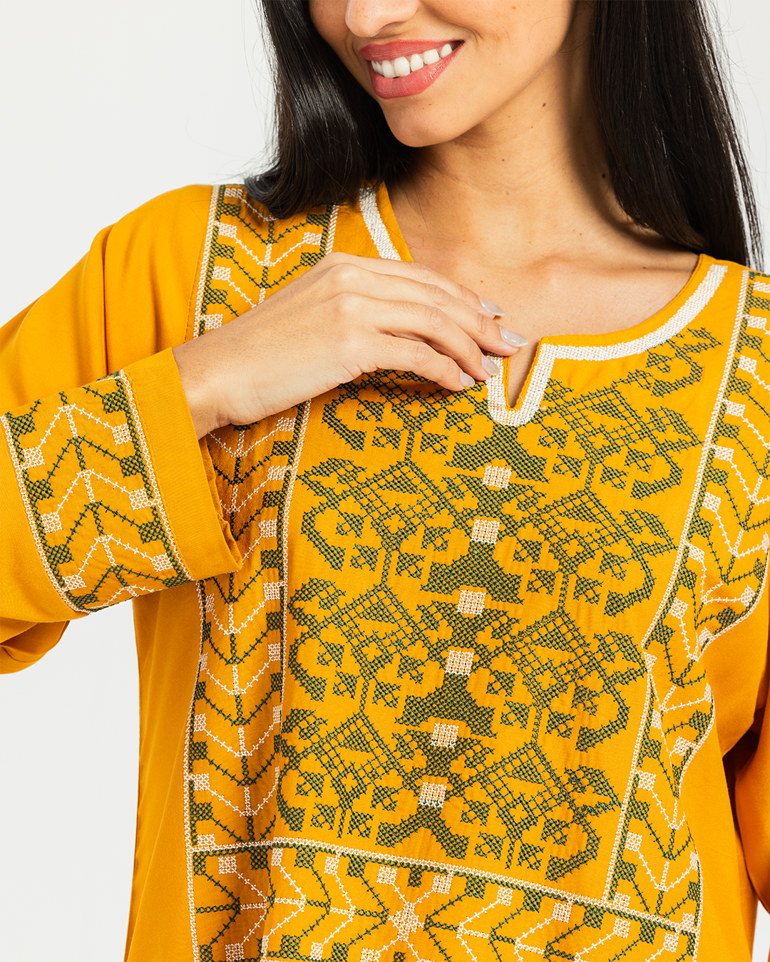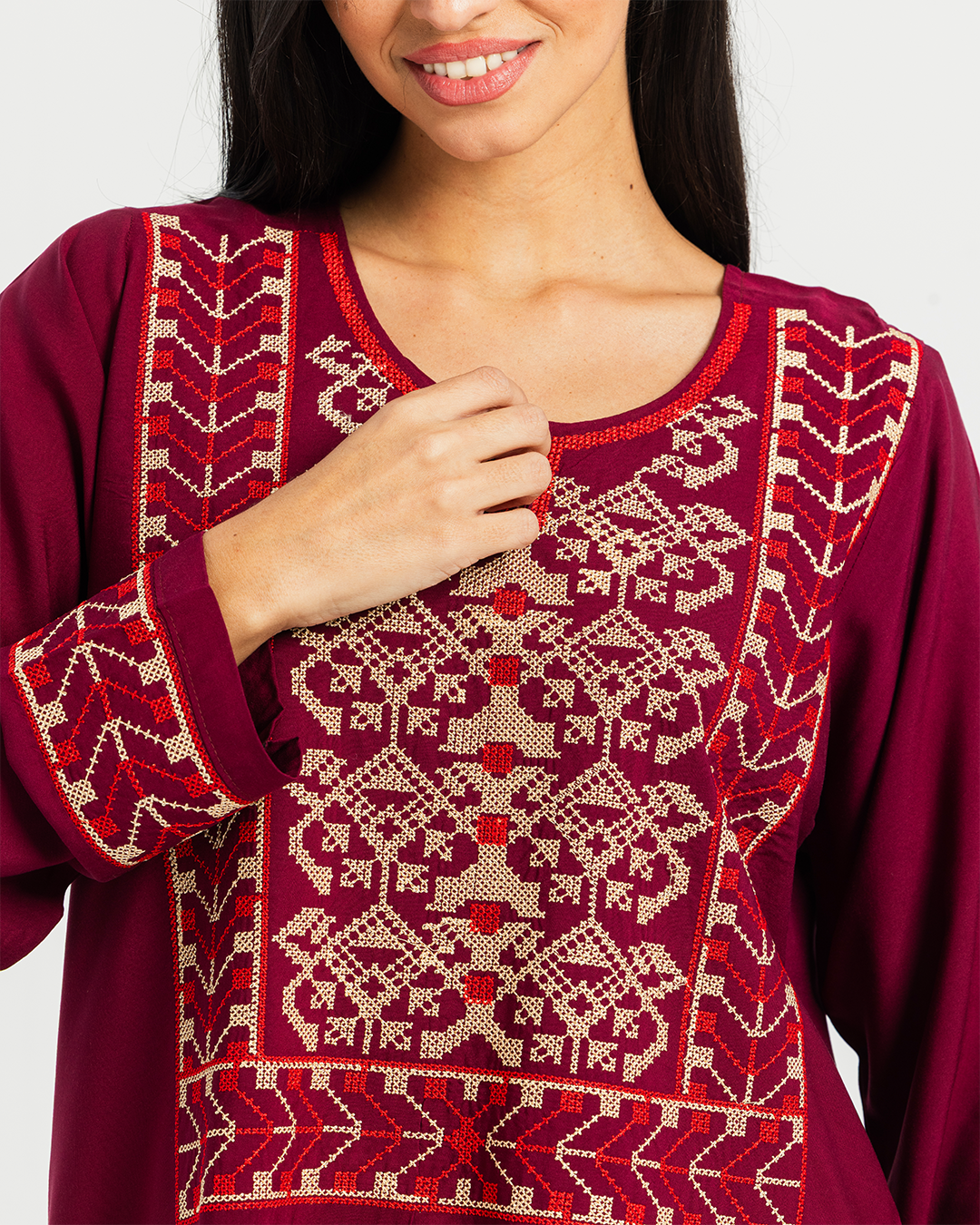 2 قميص فسكوز سادة مطرز بكم