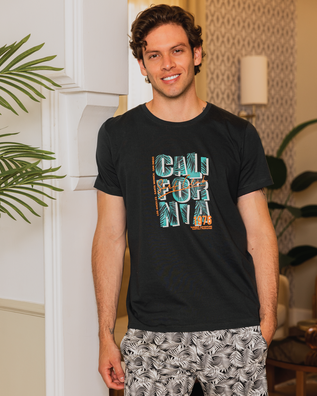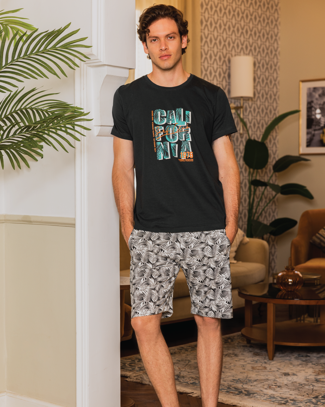 California بيجاما رجالي نص كم وشورت مطبوع قطن
