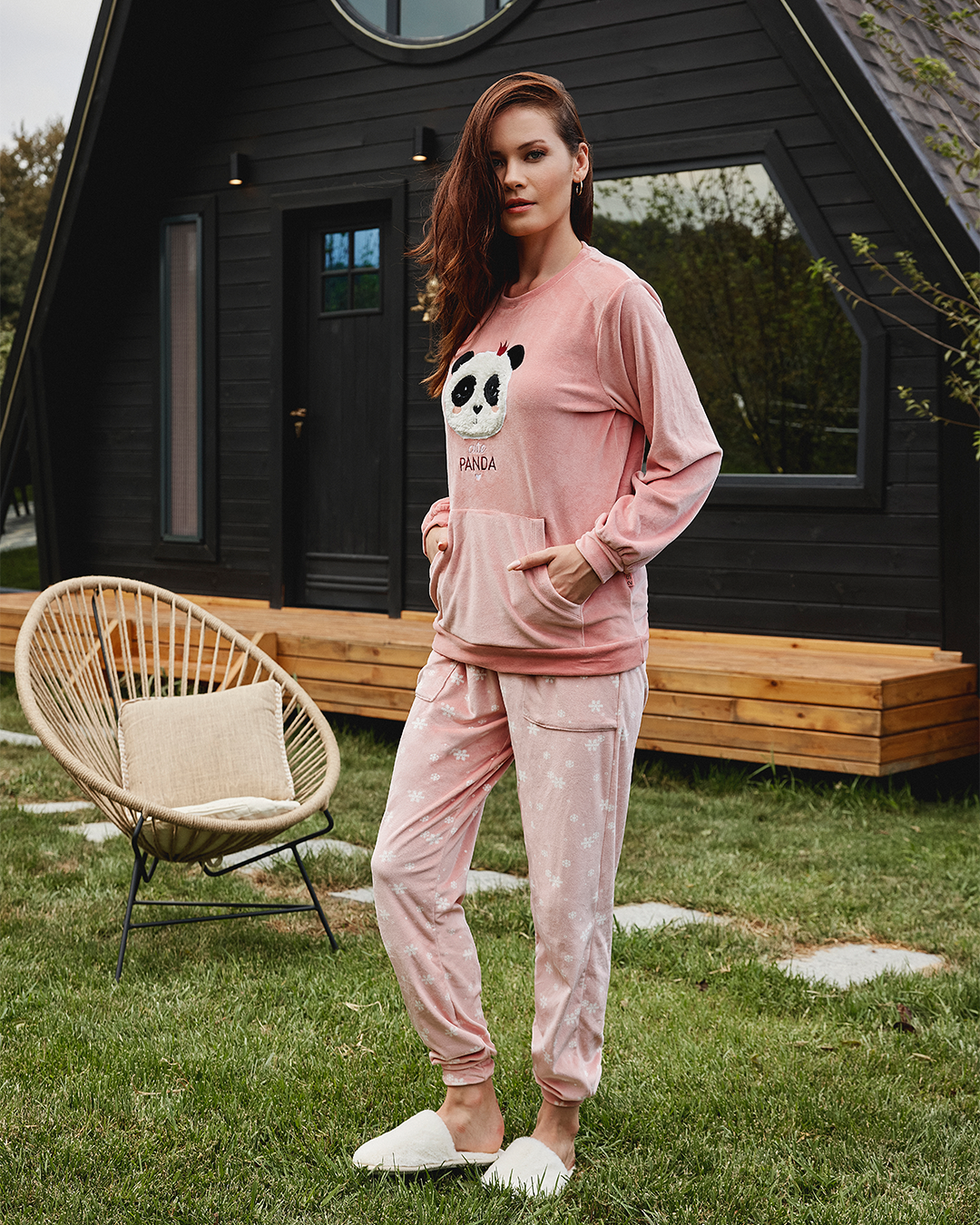 Cute Panda بيجاما حريمي قطيفة بوليستر