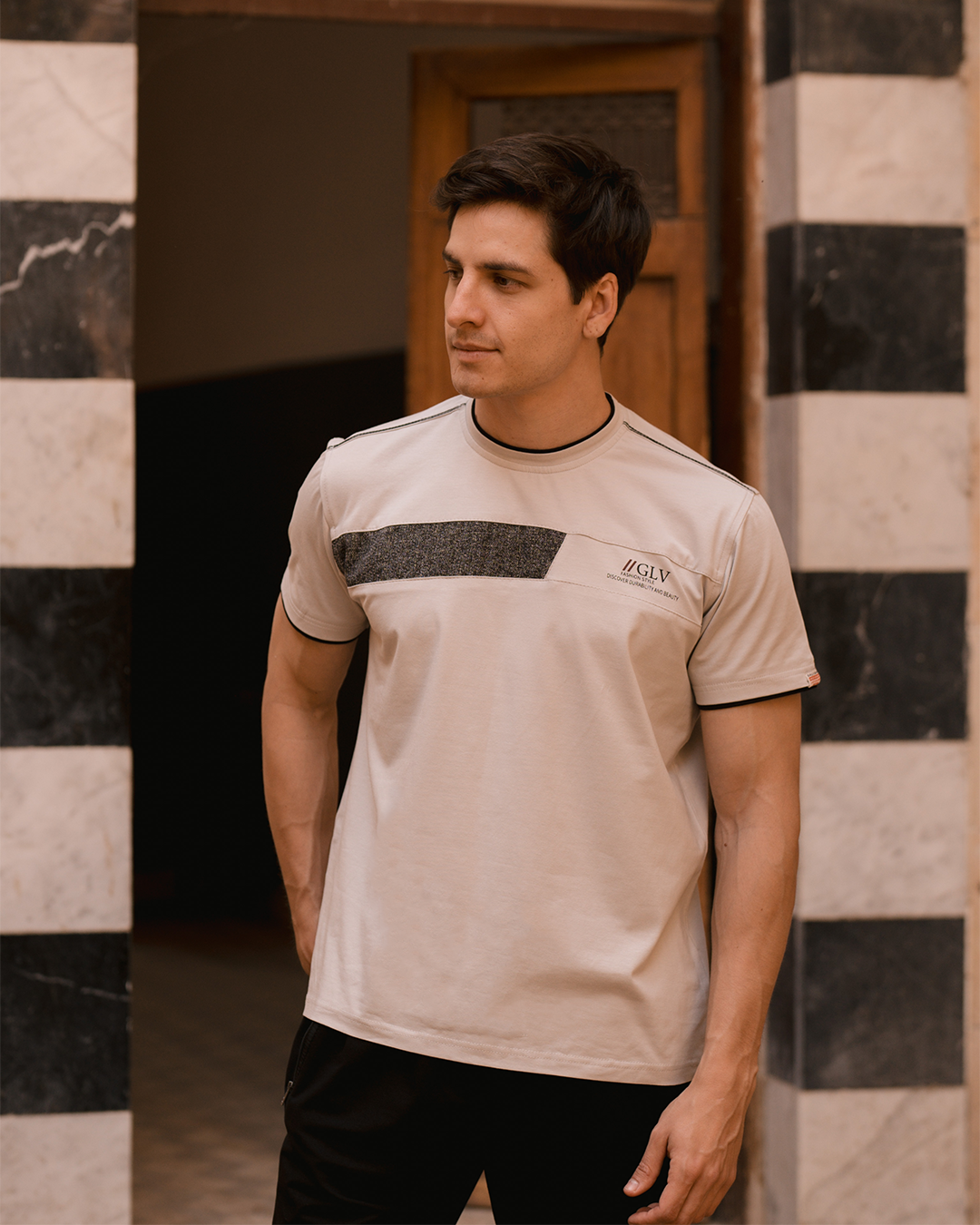 GLV Fashion style بيجامه رجالي حوض شروال طابعة علي الصدر