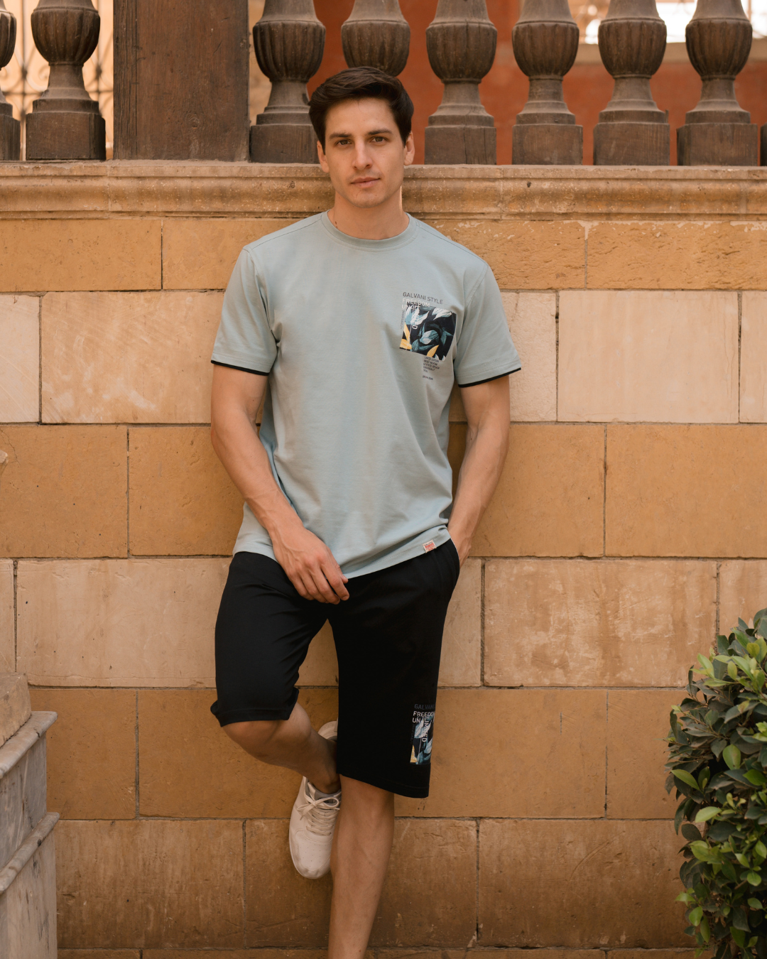 GLV FREEDOM  بيجامه رجالي حوض شورت طابعة علي الصدر