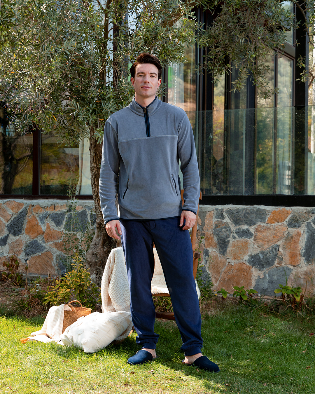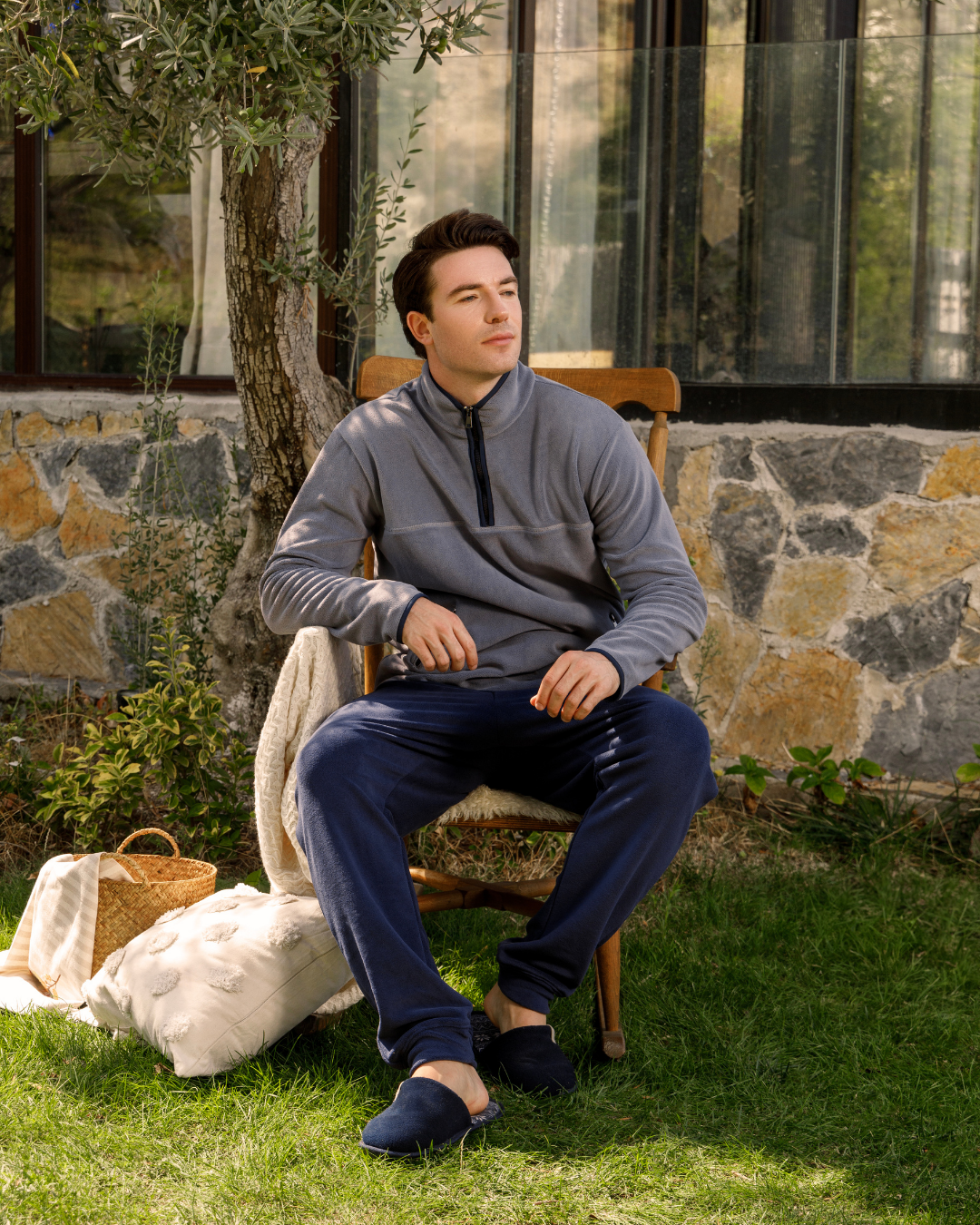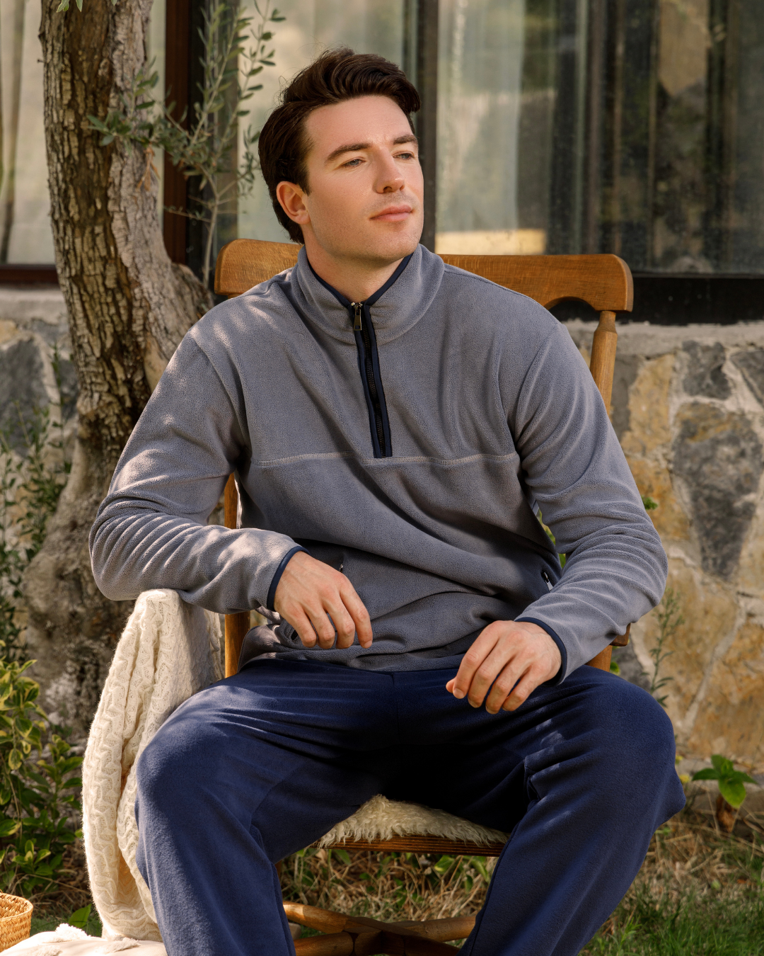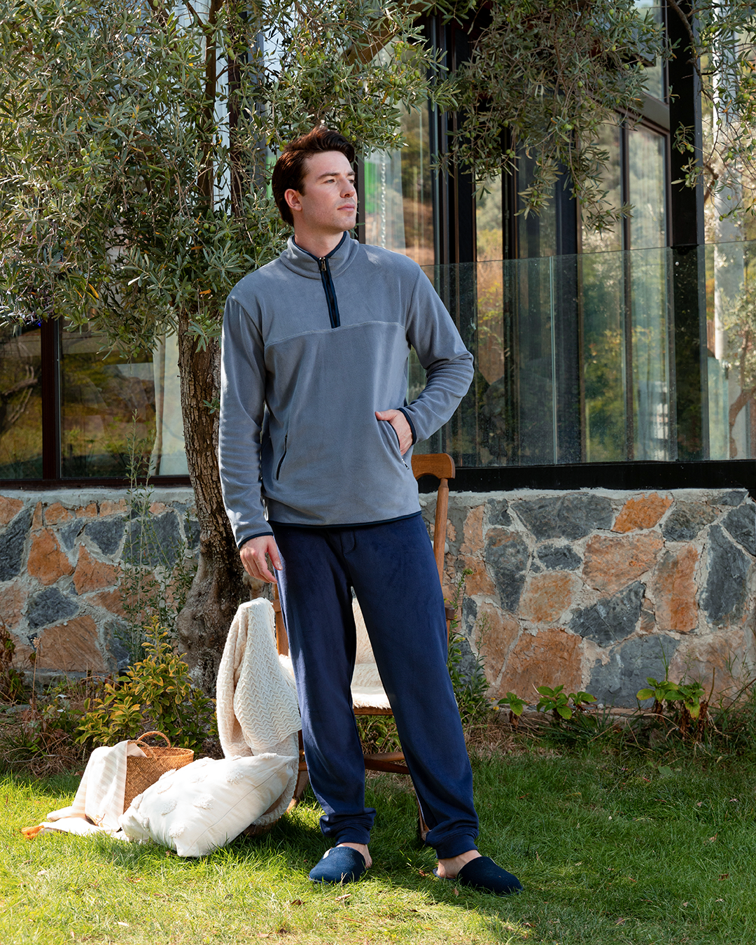 half neck zipper بيجاما رجالي كم طويل بنص سوستة