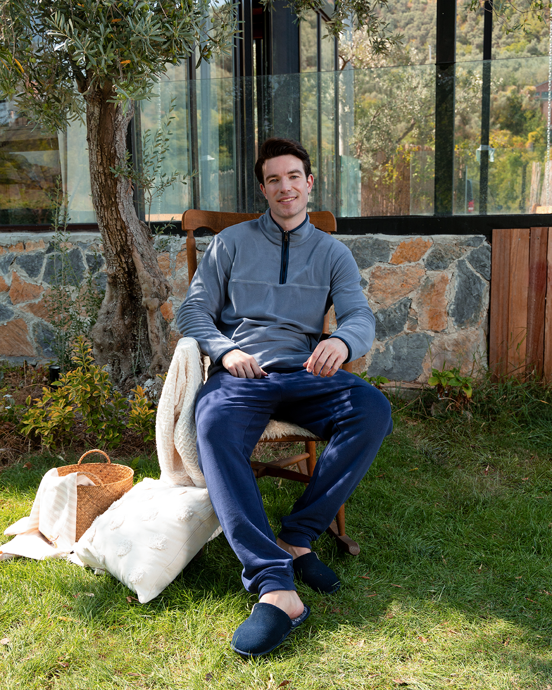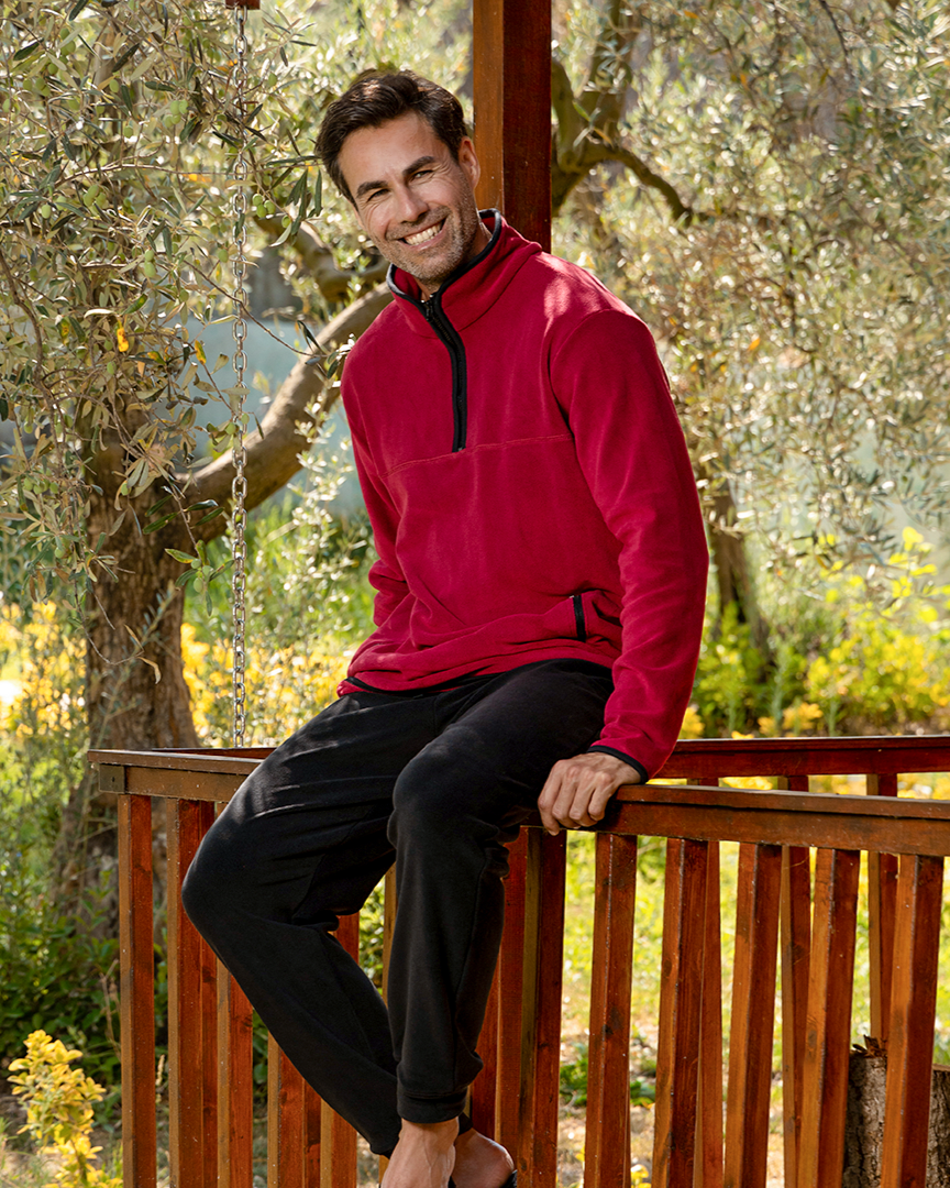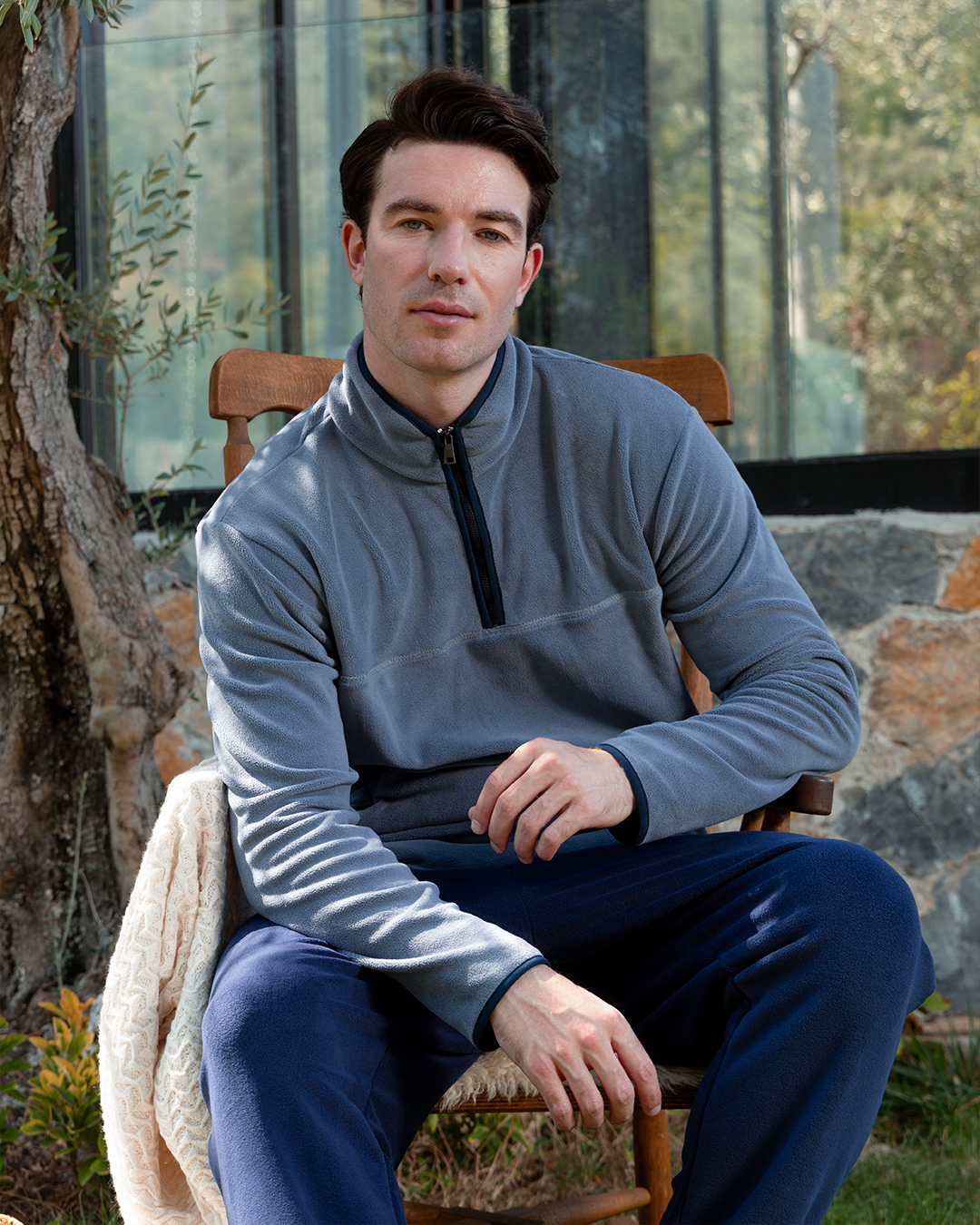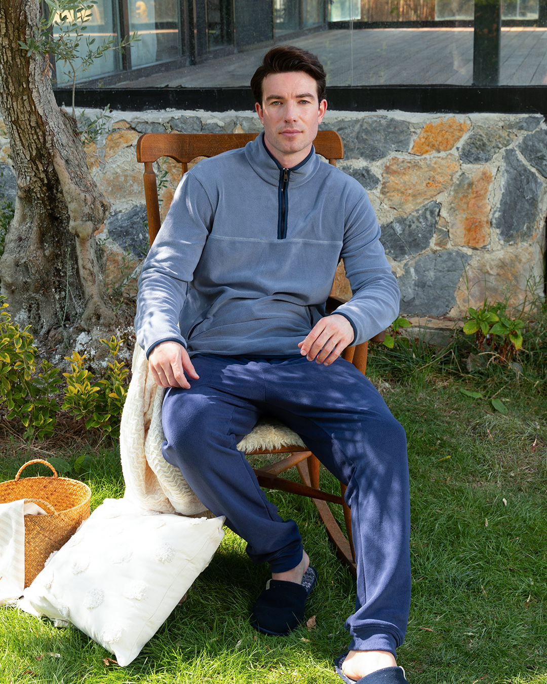 half neck zipper بيجاما رجالي كم طويل بنص سوستة