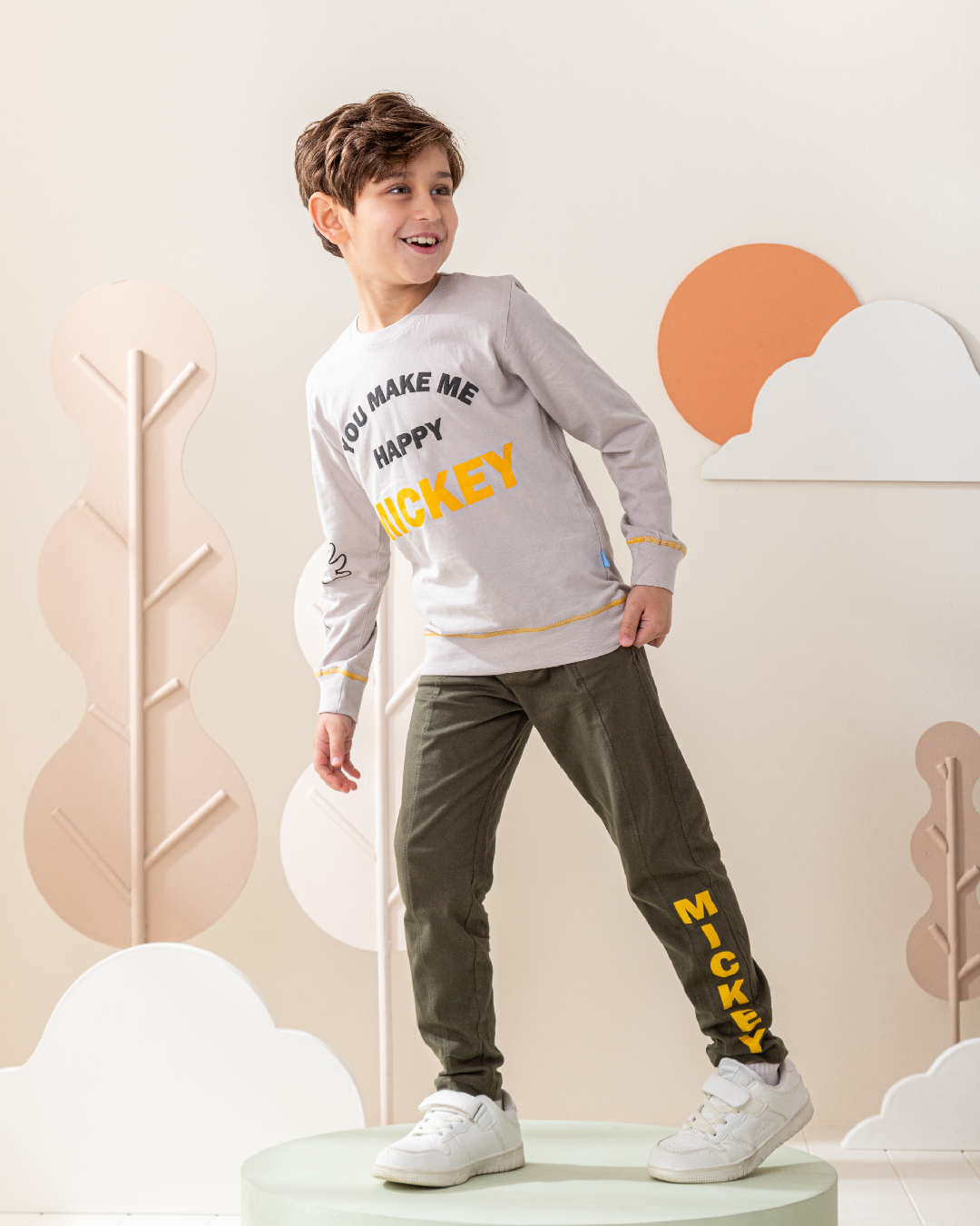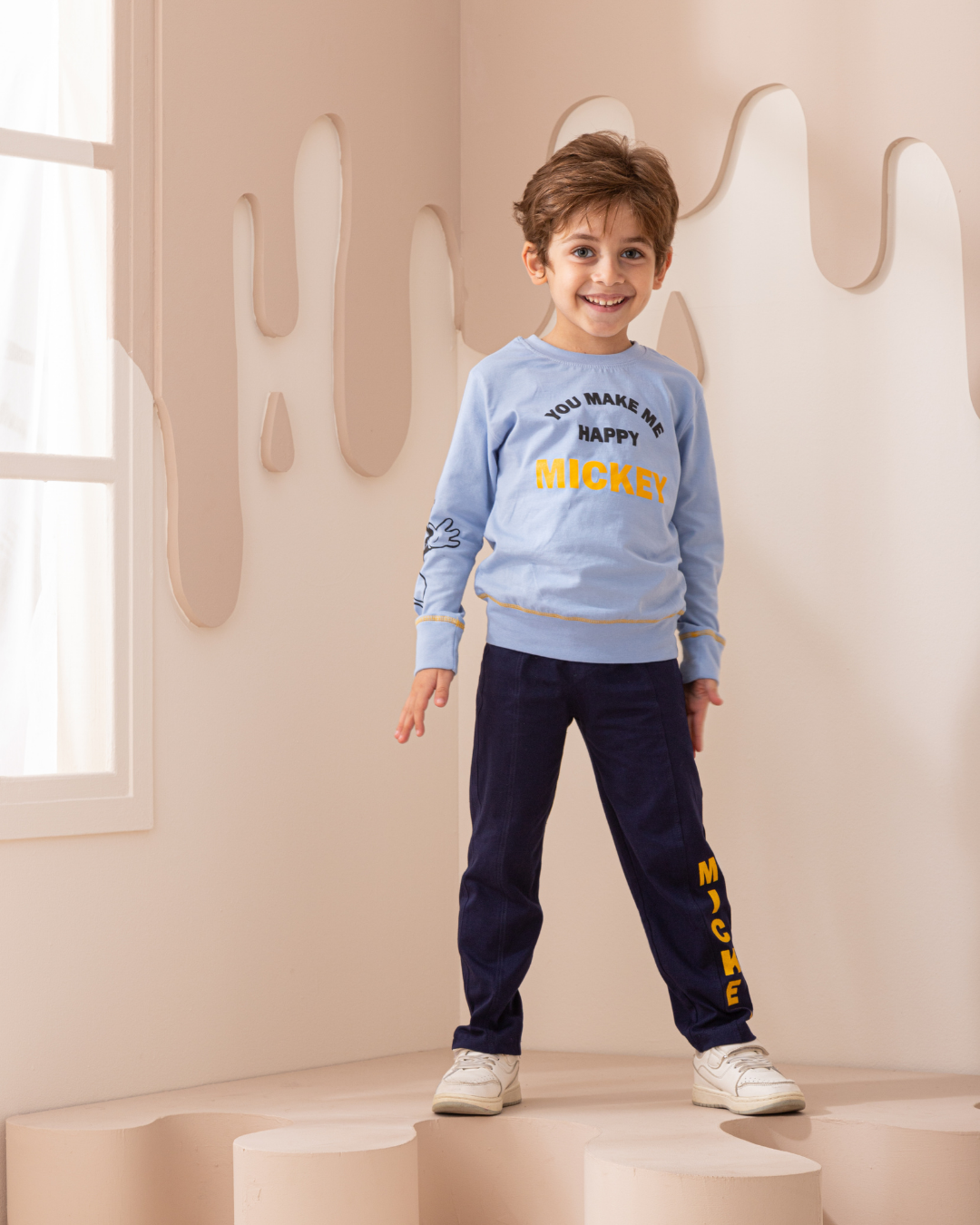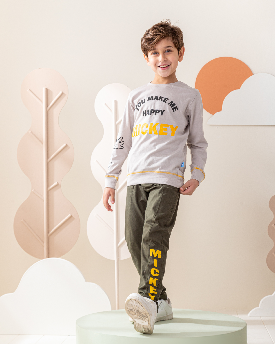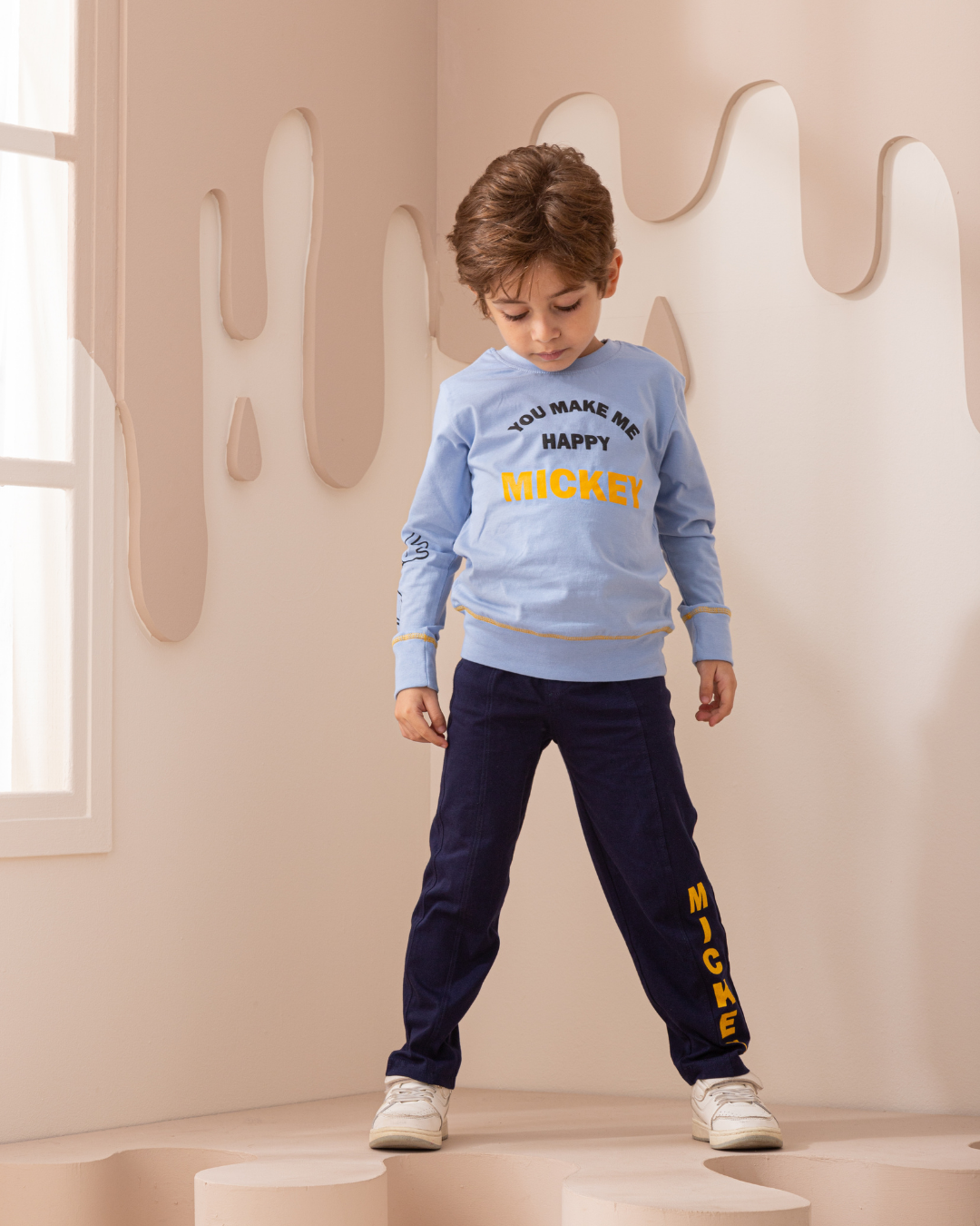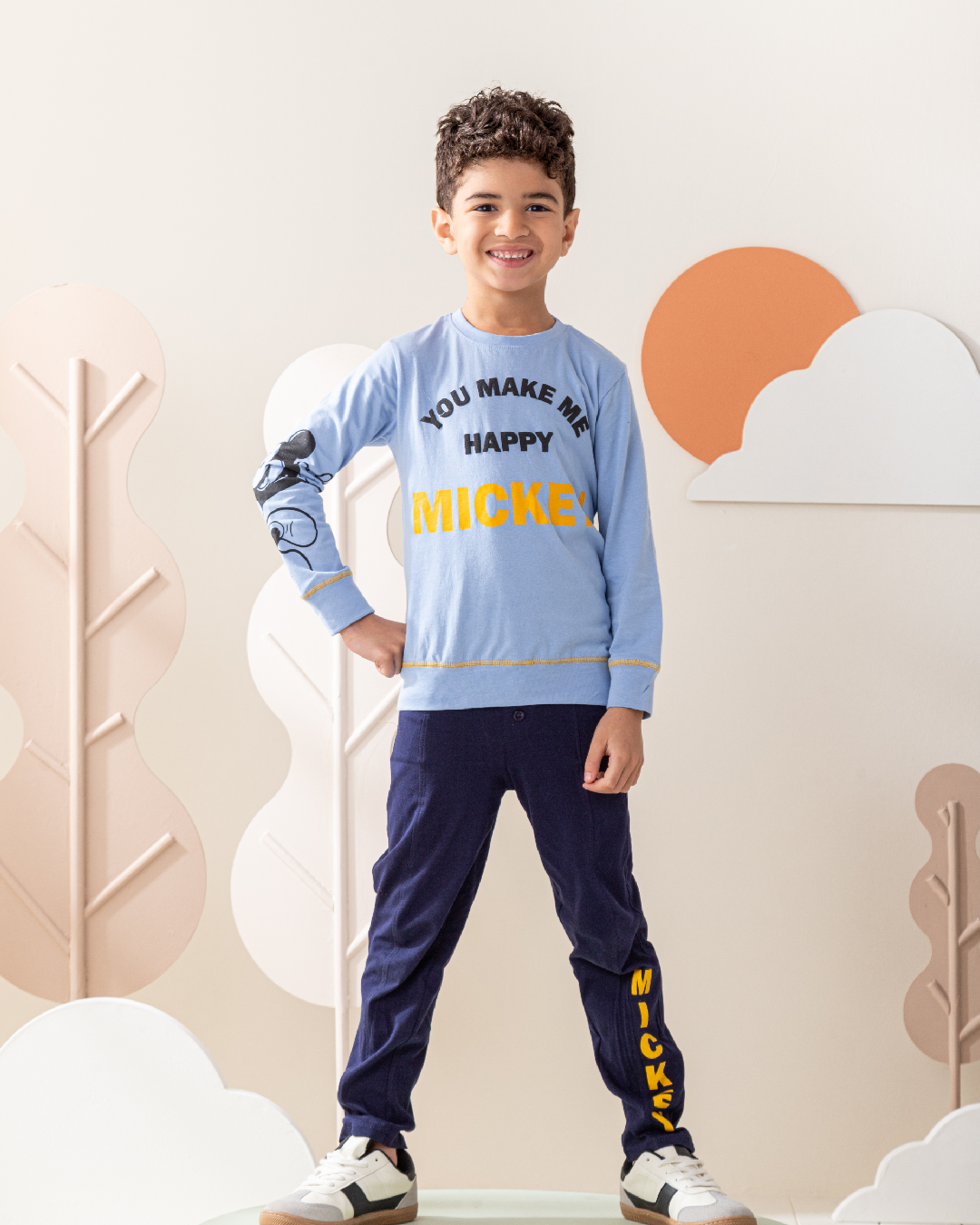Happy Mickey بيجاما اولادي بكم و بنطلون بجيب