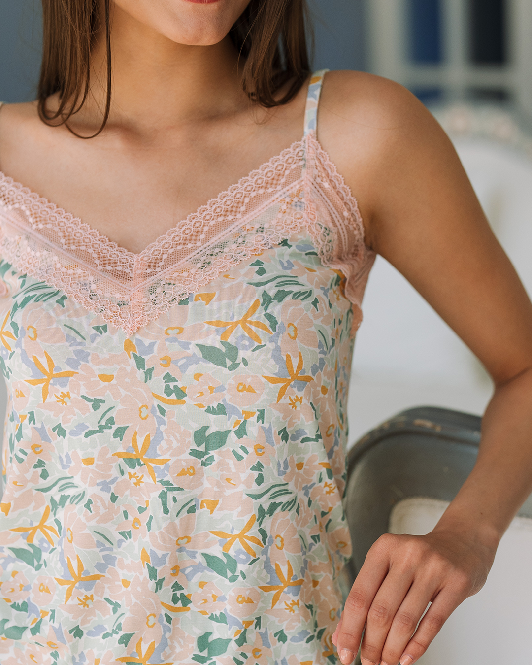 بيجاما شورت فيسكوز ليكرا توب حماله و دانتيل ورود متداخله